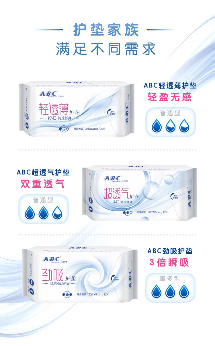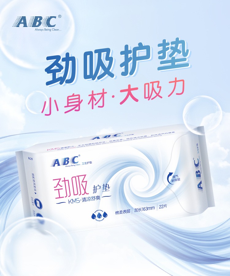 ABC cool, comfortable, light, non-sensory and breathable sanitary napkin, dry cotton soft and strong absorbent pads 163mm, 22 pieces, 5 pack set, cotton soft 163mm, 110 pieces, strong absorbent pads