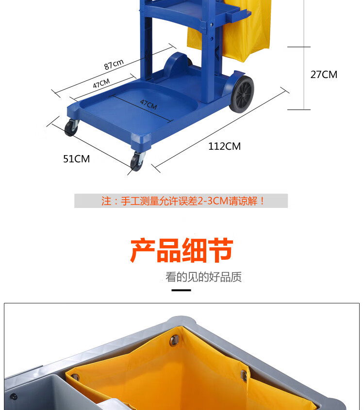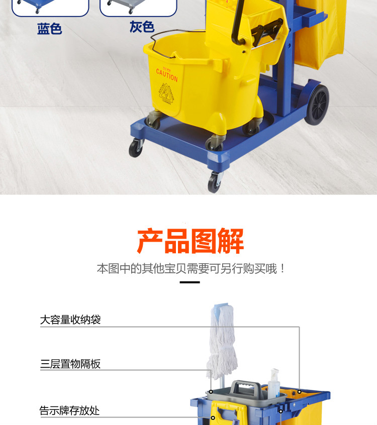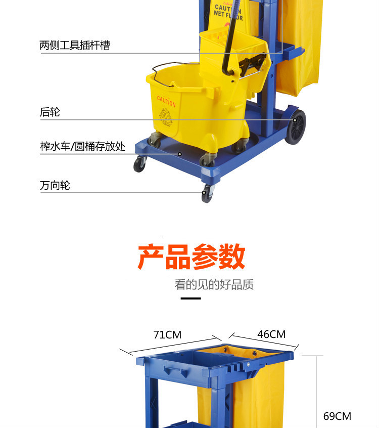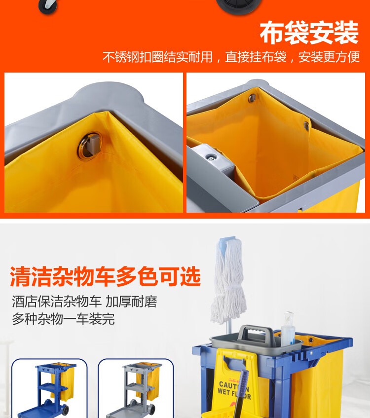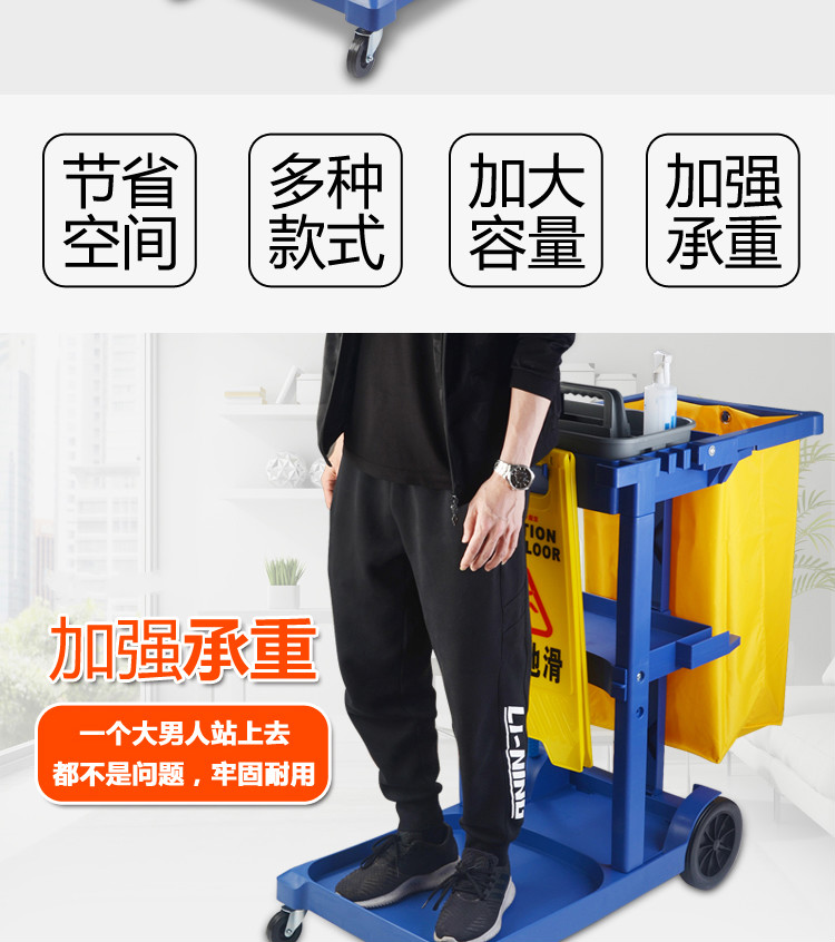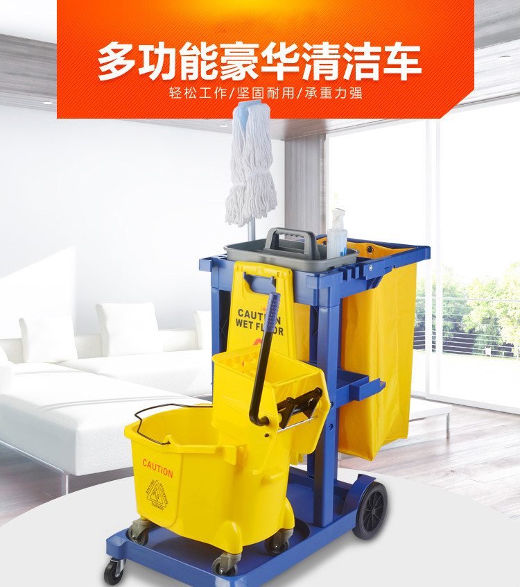 Multifunctional cleaning trolley, cleaning cart, hotel property restaurant cleaning tool cart, cleaning cart, linen service cart, guest room cleaning blue cart, enhanced thickening version