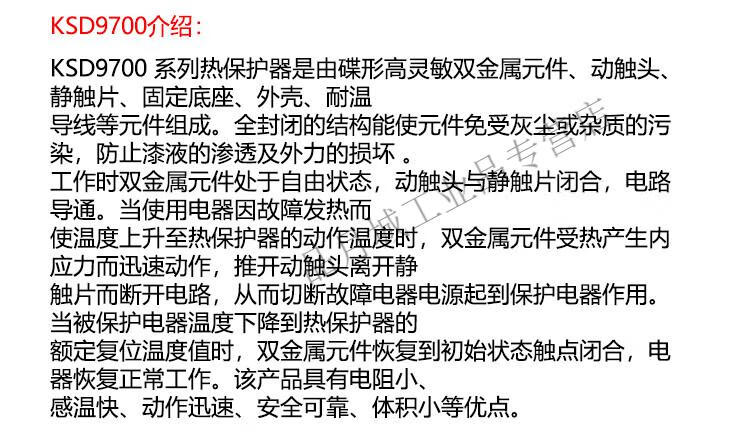 KSD9700 temperature control switch 12/220V bimetallic temperature control thermal protector normally open normally closed 45-155 40 normally open