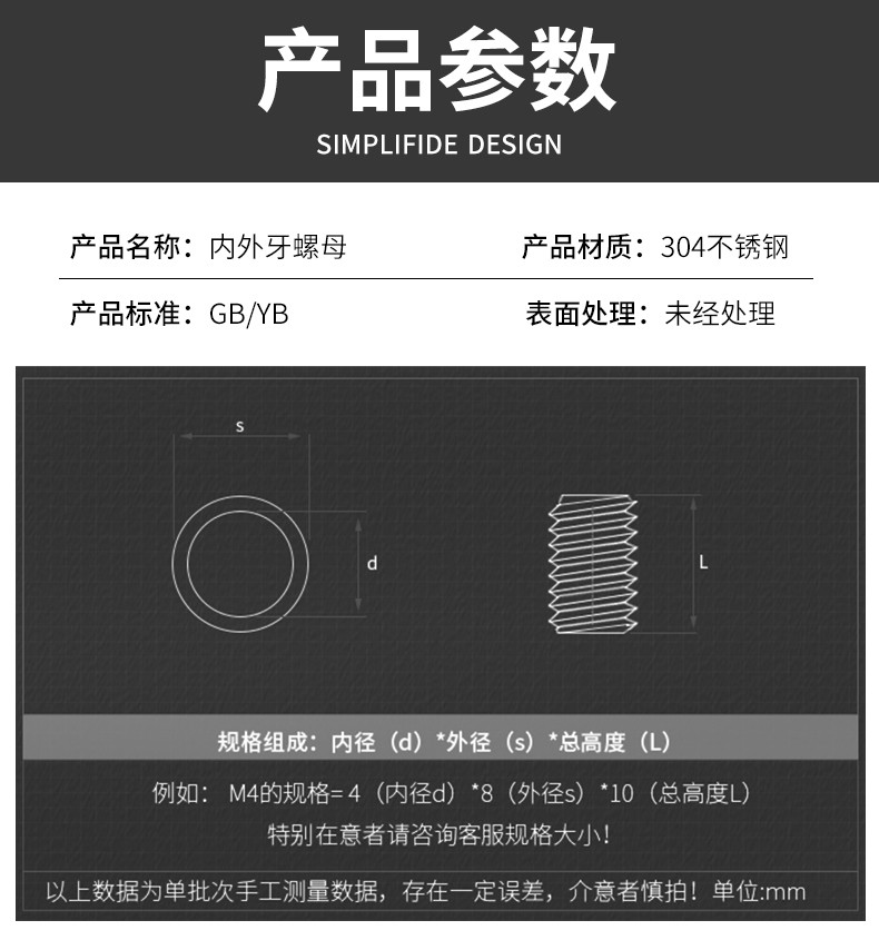 Henghu 304 stainless steel internal and external tooth nut joint conversion nut screw thread protective sleeve M2M4M5M6M10M12 braces fasteners M4*M6*10 (5 pieces)