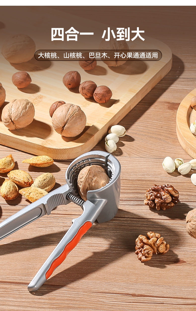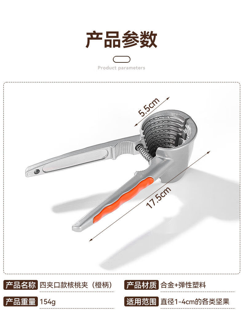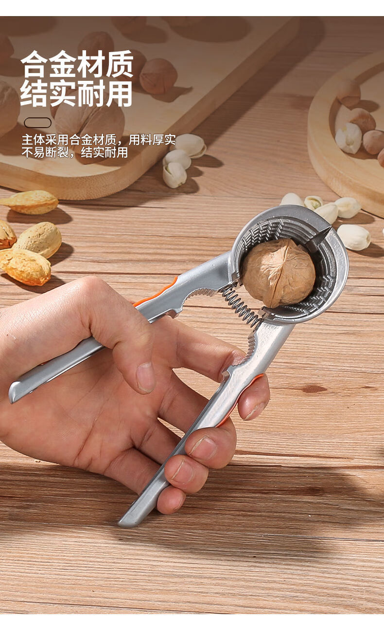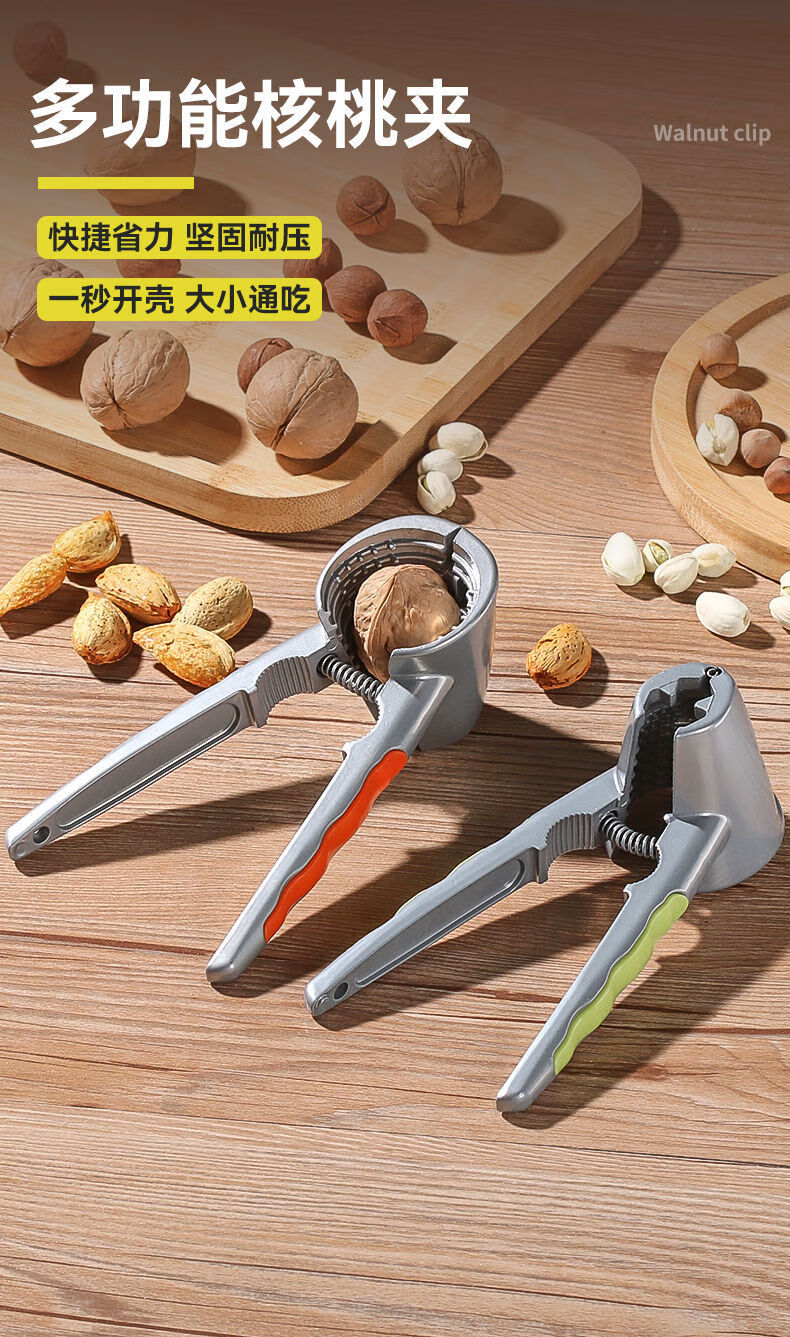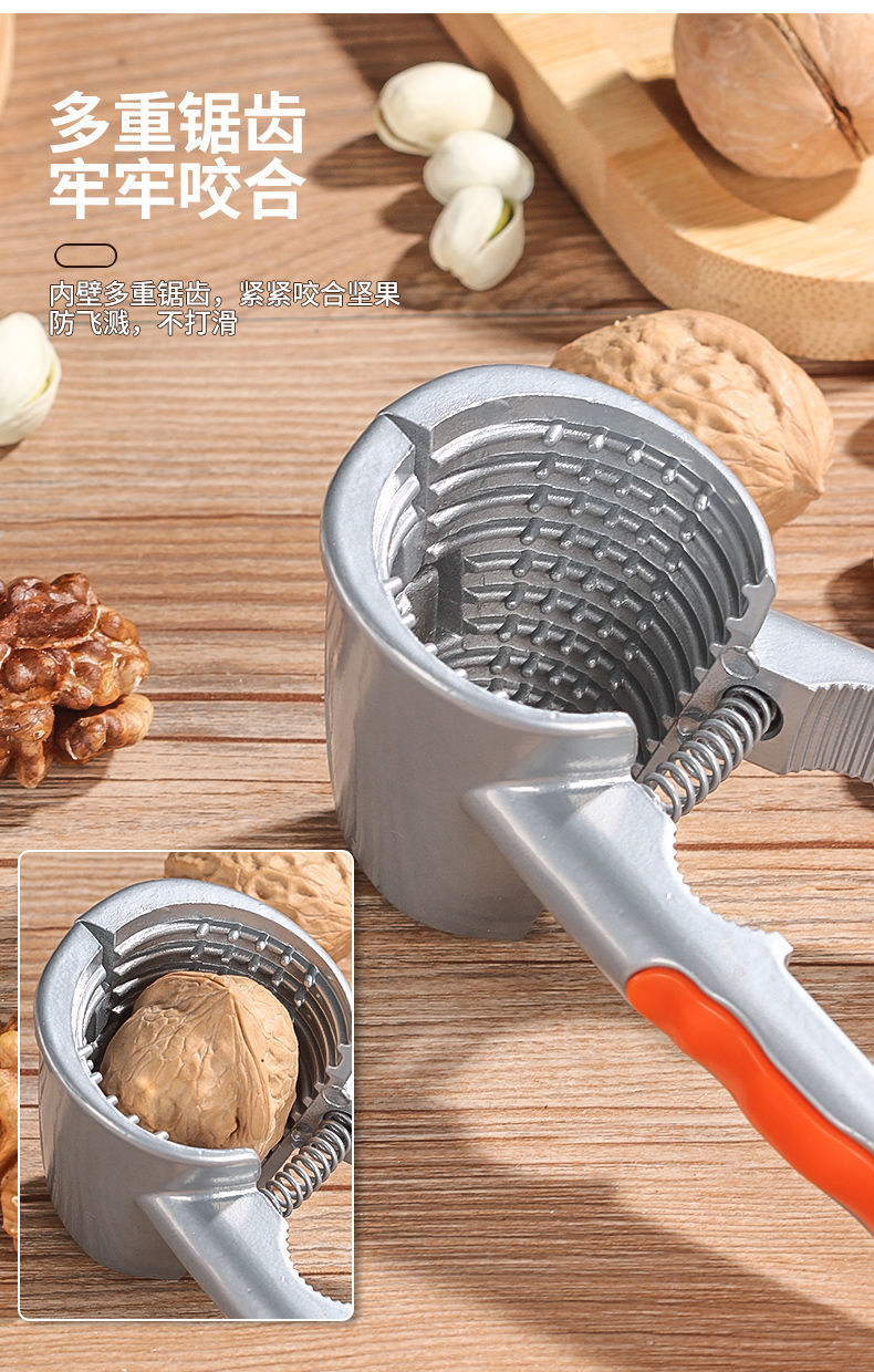 Jidaocook walnut clip multifunctional hazelnut clip household walnut peeling artifact to pull walnuts open walnut tool black peach clip four-port alloy walnut clip orange handle plus needle