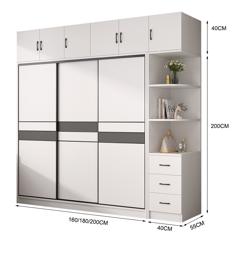 Xucai Wardrobe Bedroom Two Doors Three Doors Solid Wood Sliding Door Wardrobe Simple Storage Sliding Door Large Wardrobe Rental Room Three Doors 1.8 Meter Main Cabinet + Top Cabinet + Side Cabinet