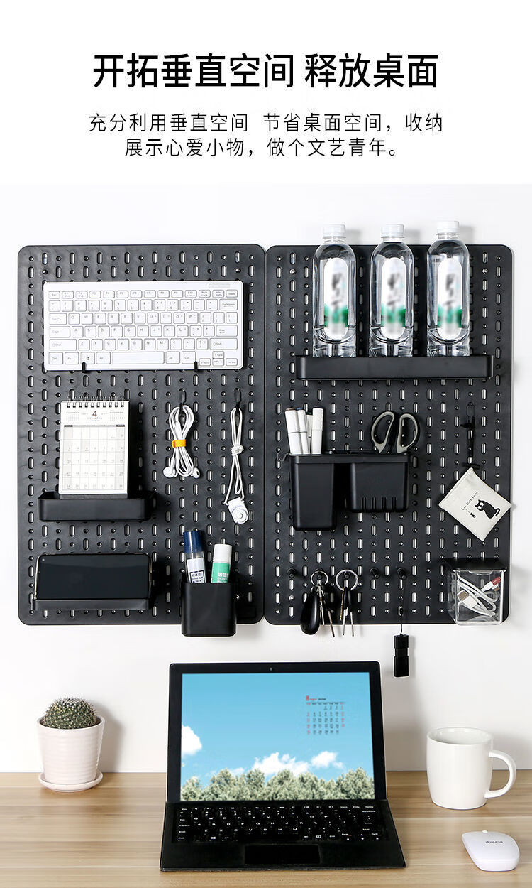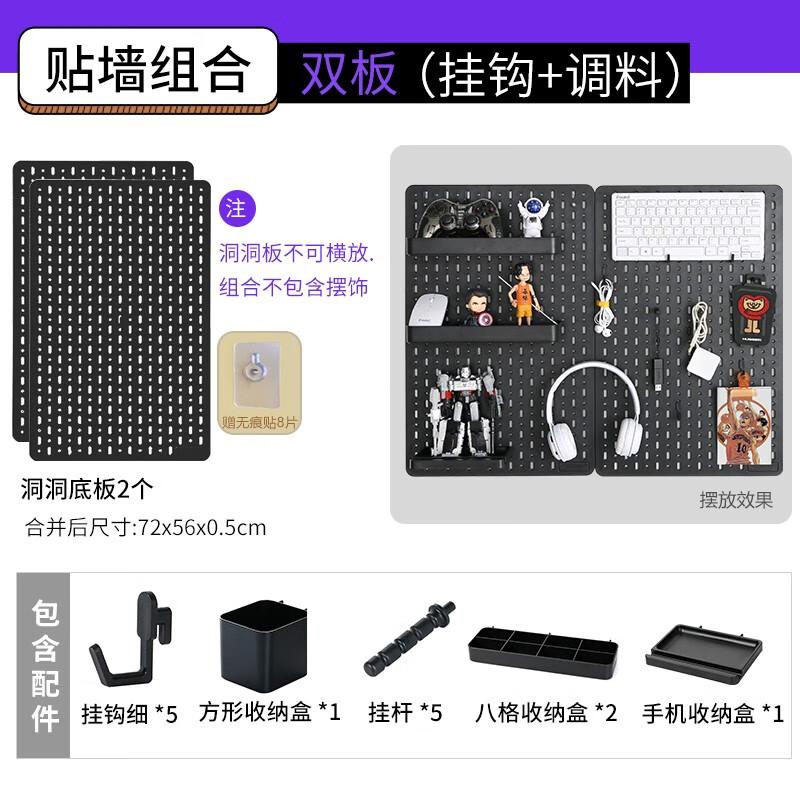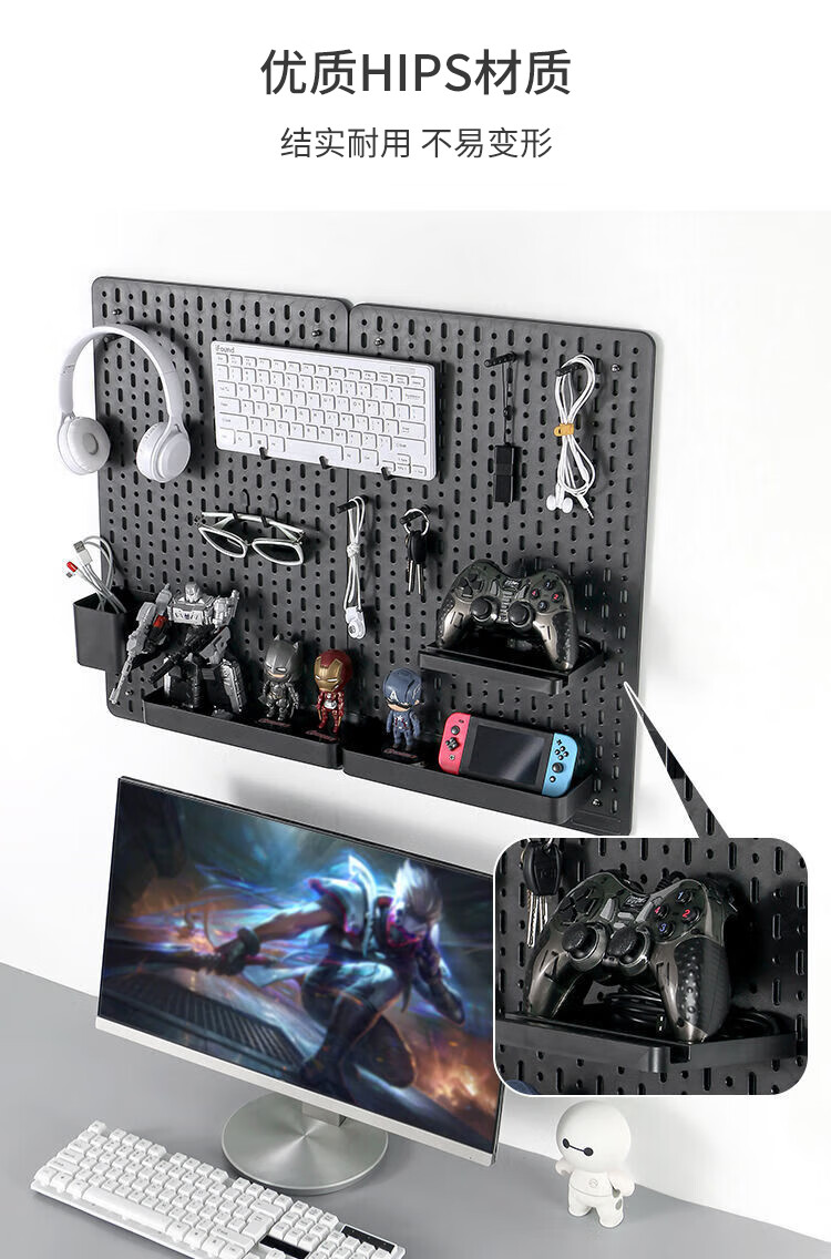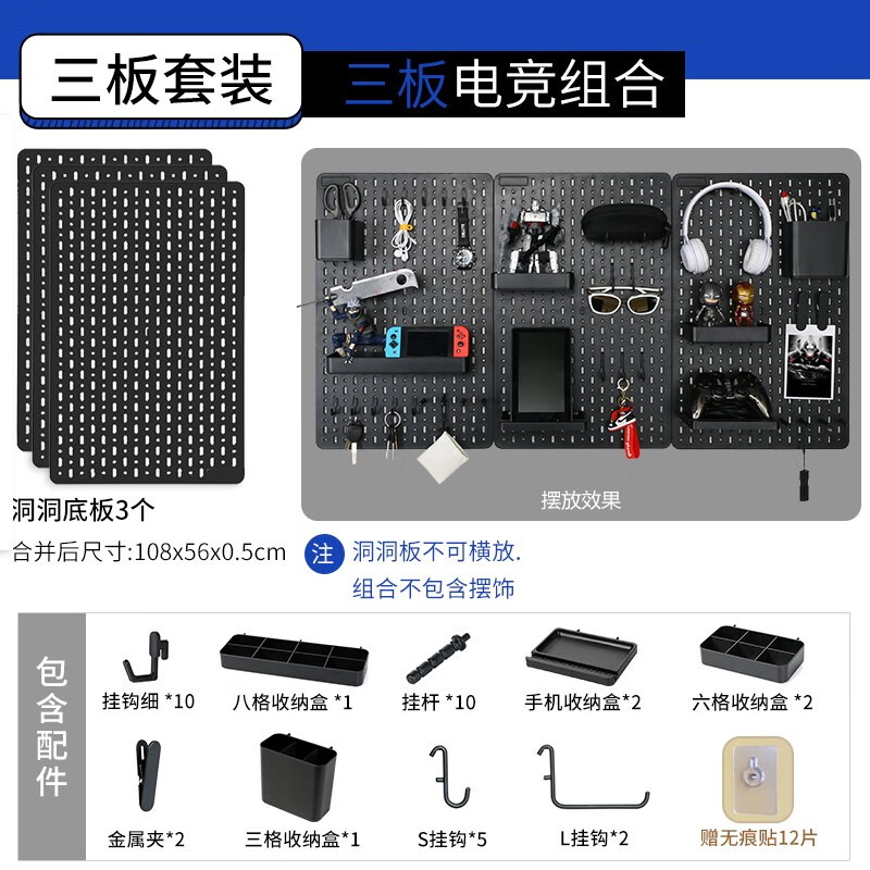 Sante E-Sports Perforated Board No-Punch Office Desk Fixer Black Perforated Board Porch Hanging Wall Accessories Hook Three-Board E-Sports Combination Comes with 12 Wall Stickers No Specifications