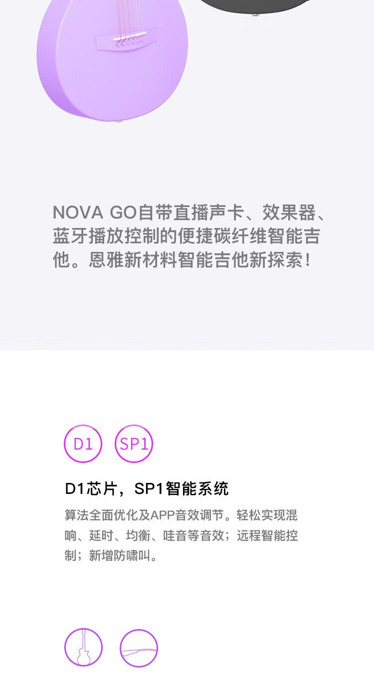 Enya NOVA GO mini smart carbon fiber travel folk electric guitar for men and women for beginners 35 inches space black acoustic model