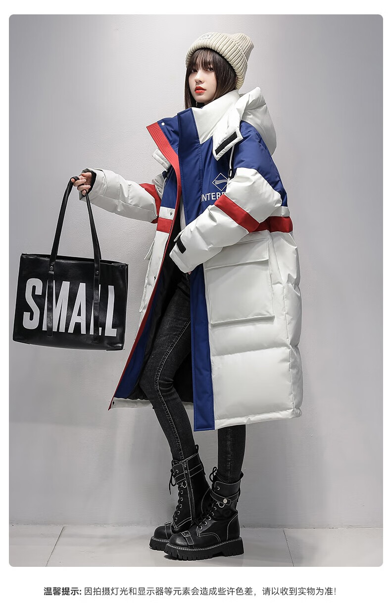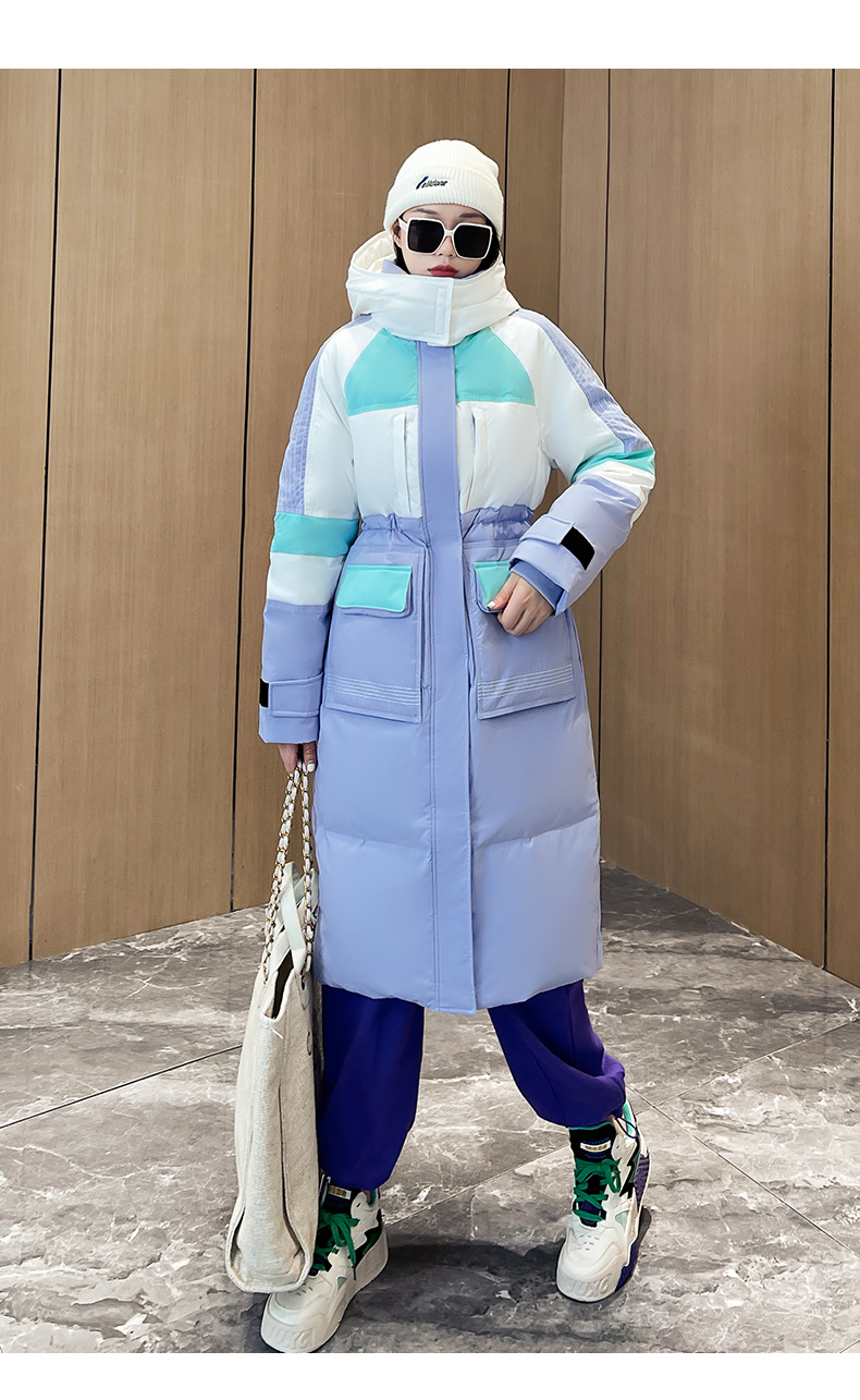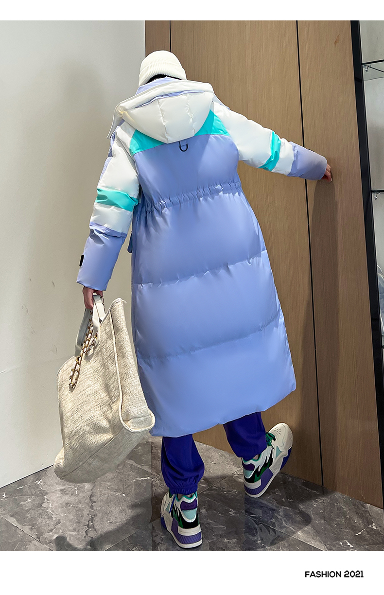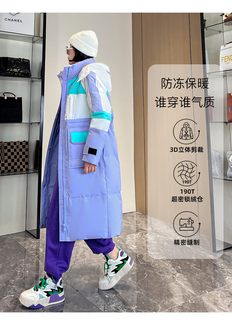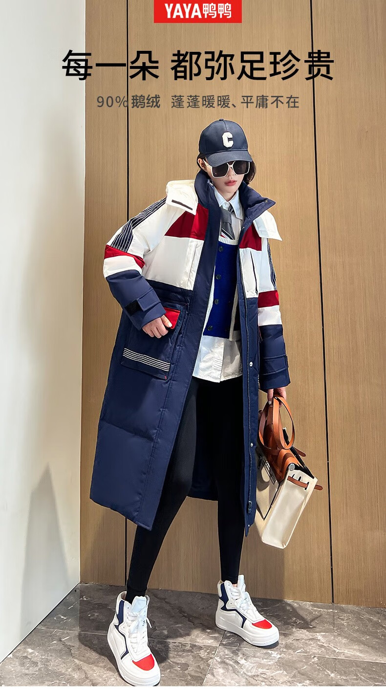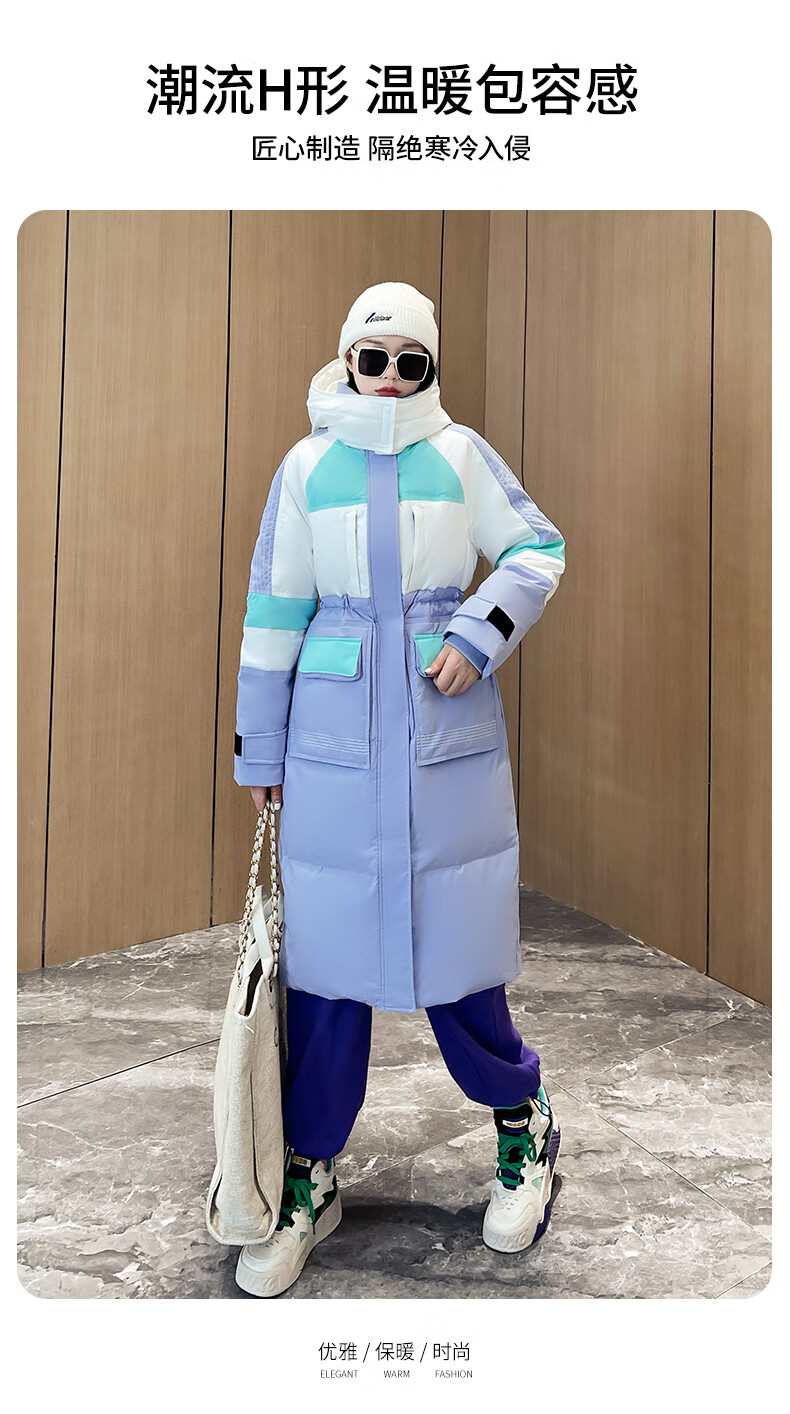 Yaya (YAYA) Tong Liya's new goose down down jacket for women, winter long over-the-knee waist-keeping warm and extreme cold thickened jacket, royal blue color M