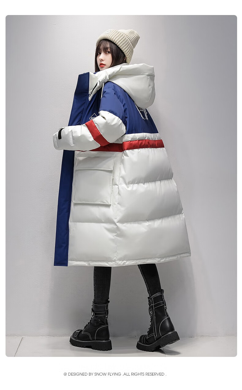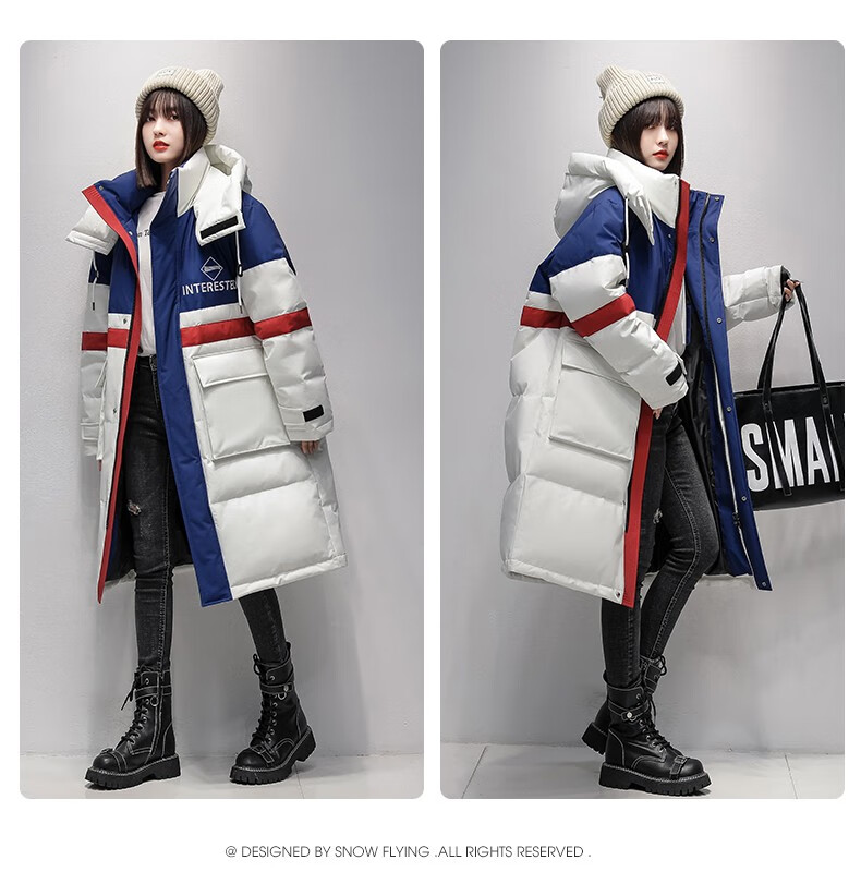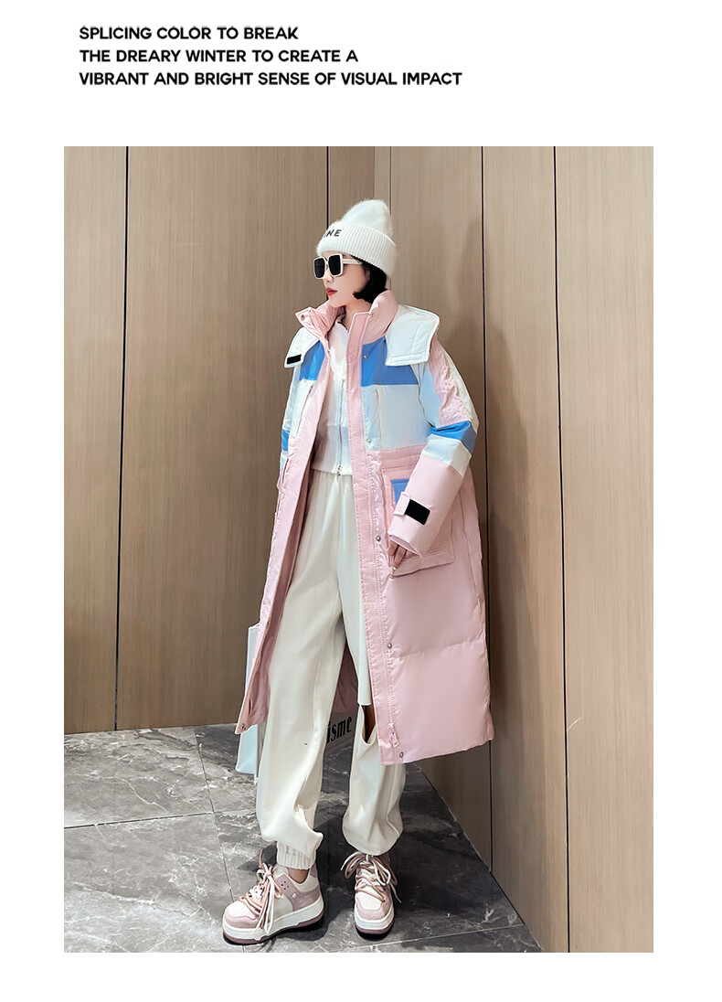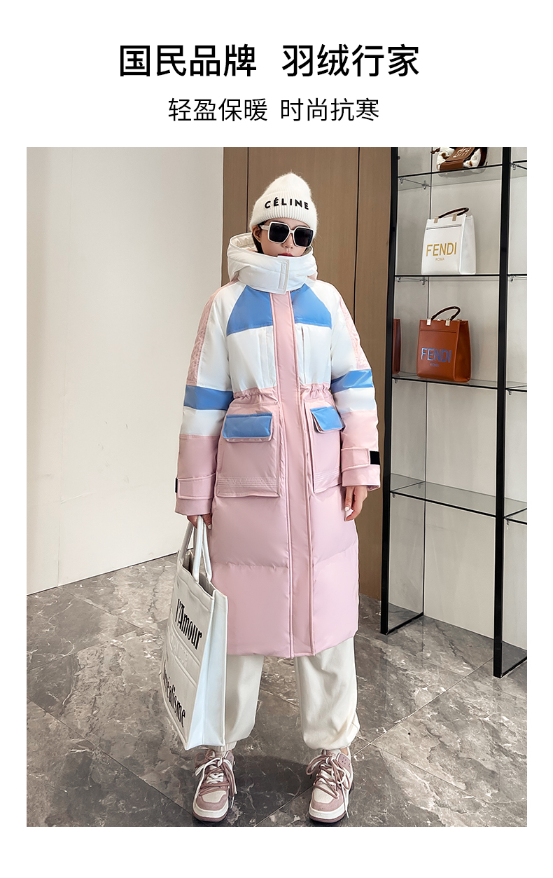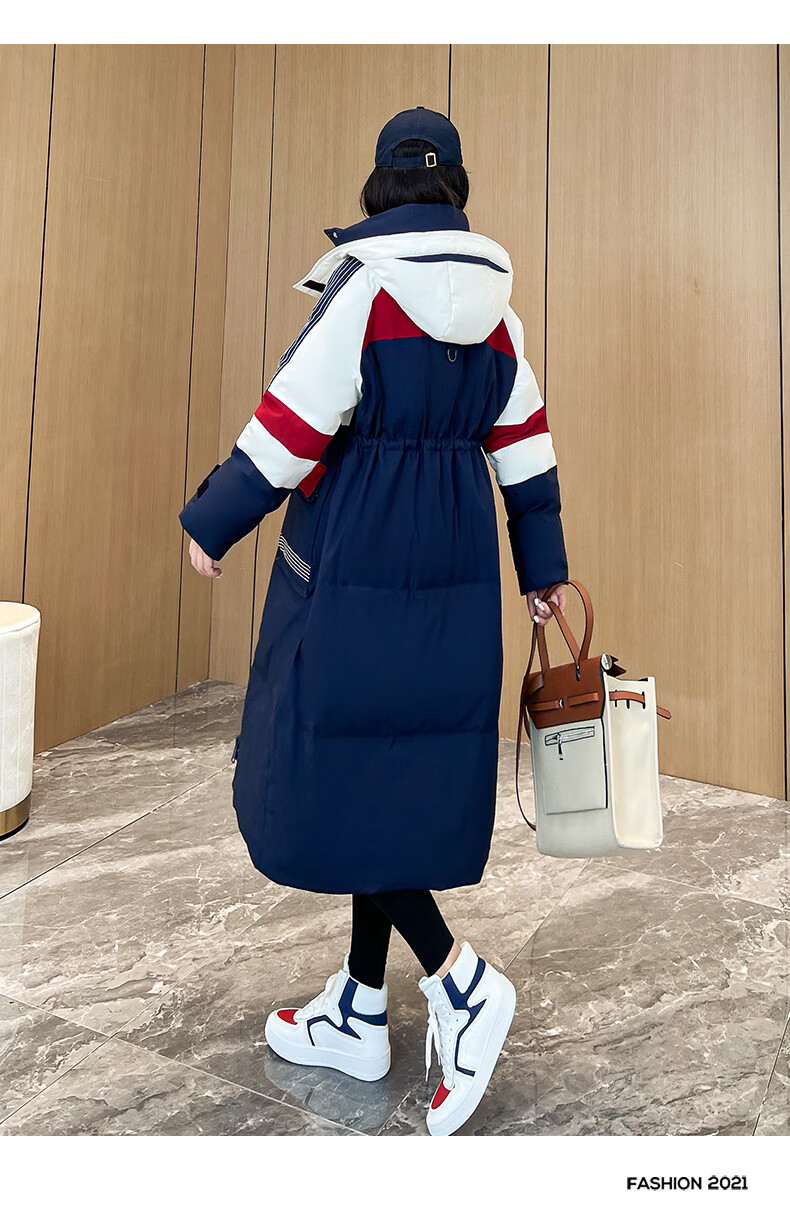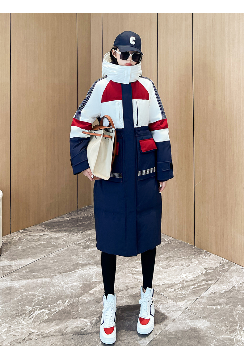 Yaya (YAYA) Tong Liya's new goose down down jacket for women, winter long over-the-knee waist-keeping warm and extreme cold thickened jacket, royal blue color M