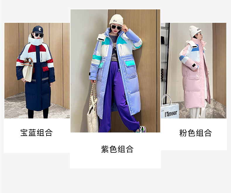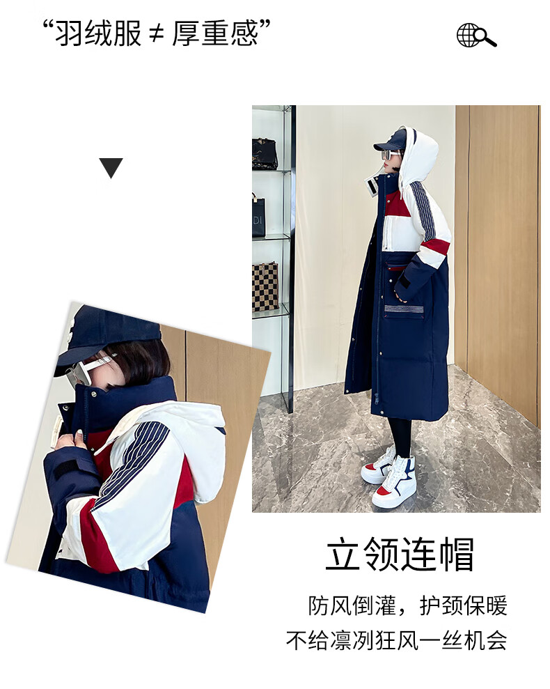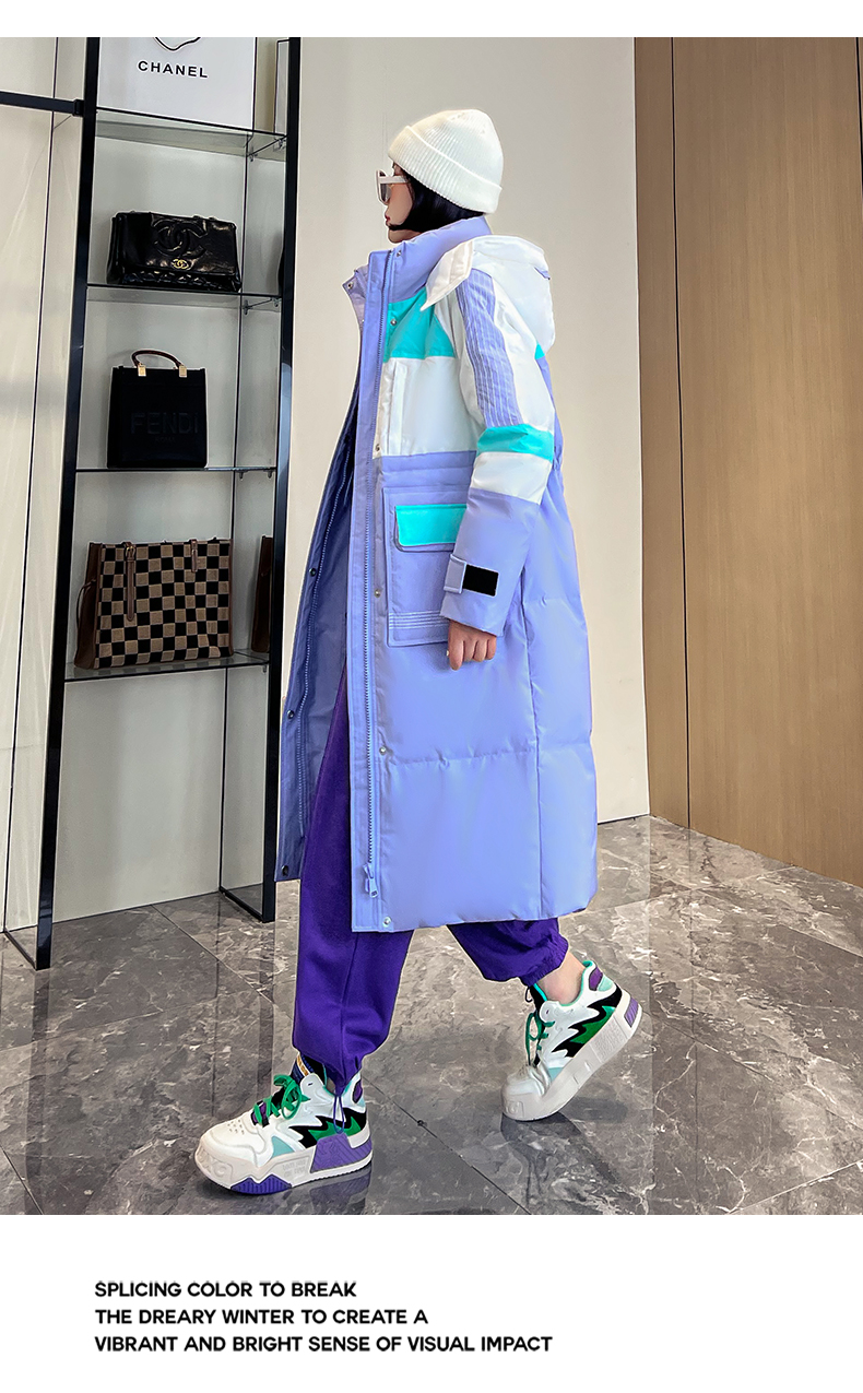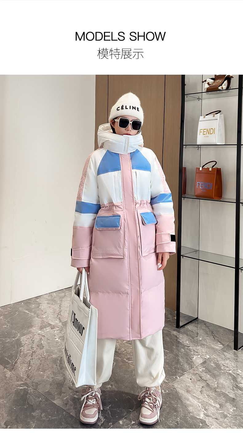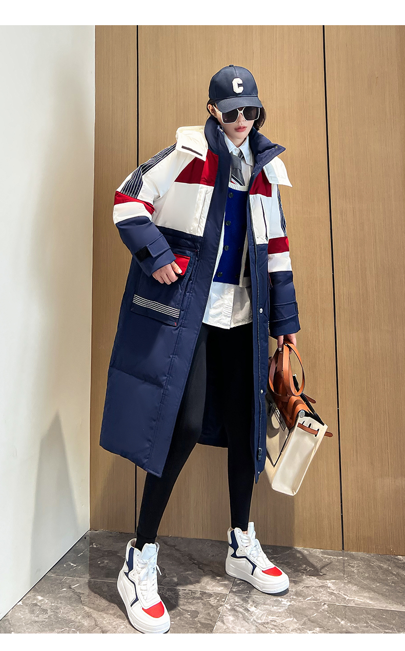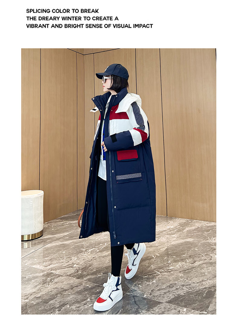Yaya (YAYA) Tong Liya's new goose down down jacket for women, winter long over-the-knee waist-keeping warm and extreme cold thickened jacket, royal blue color M