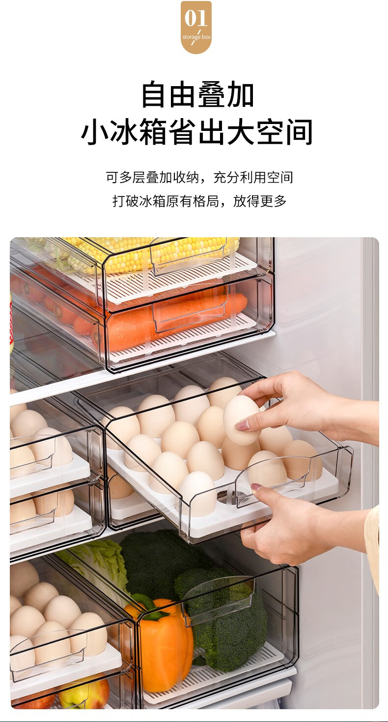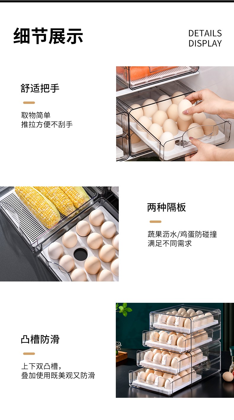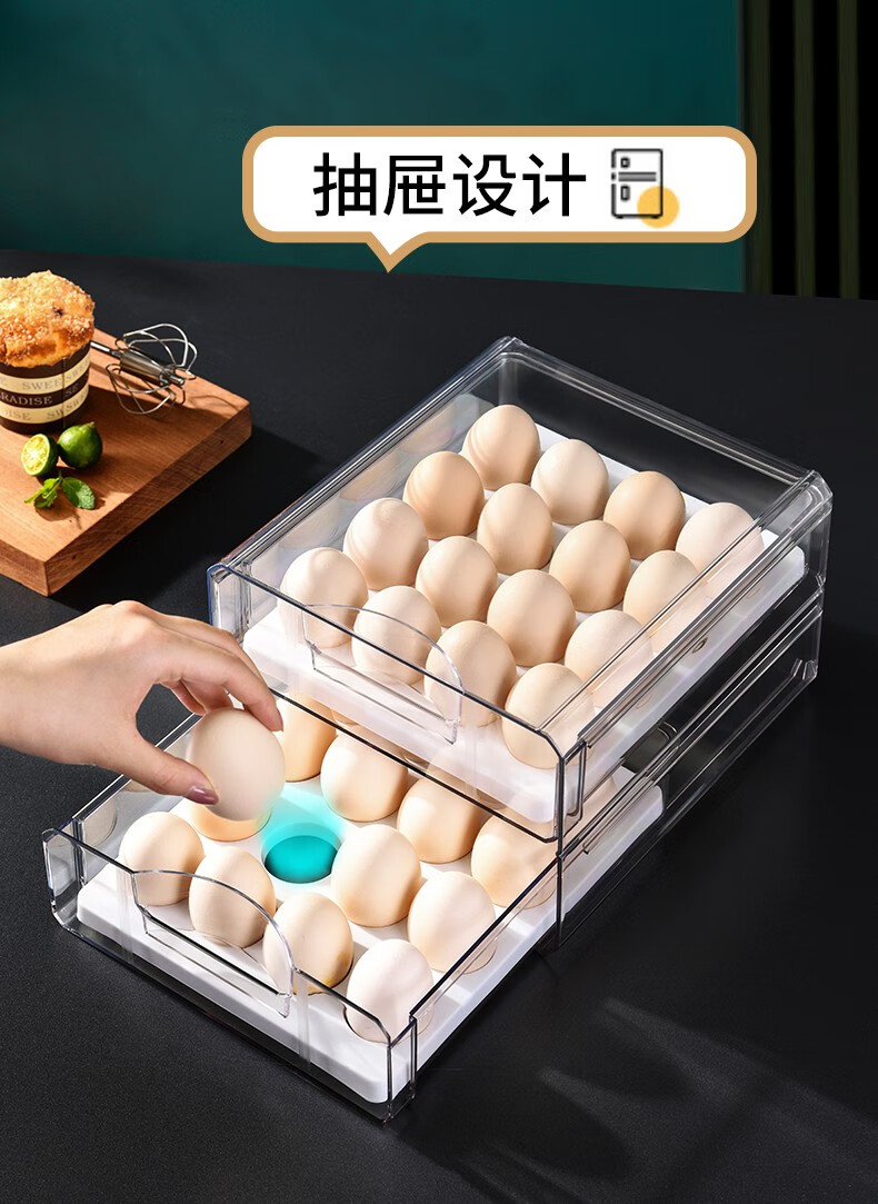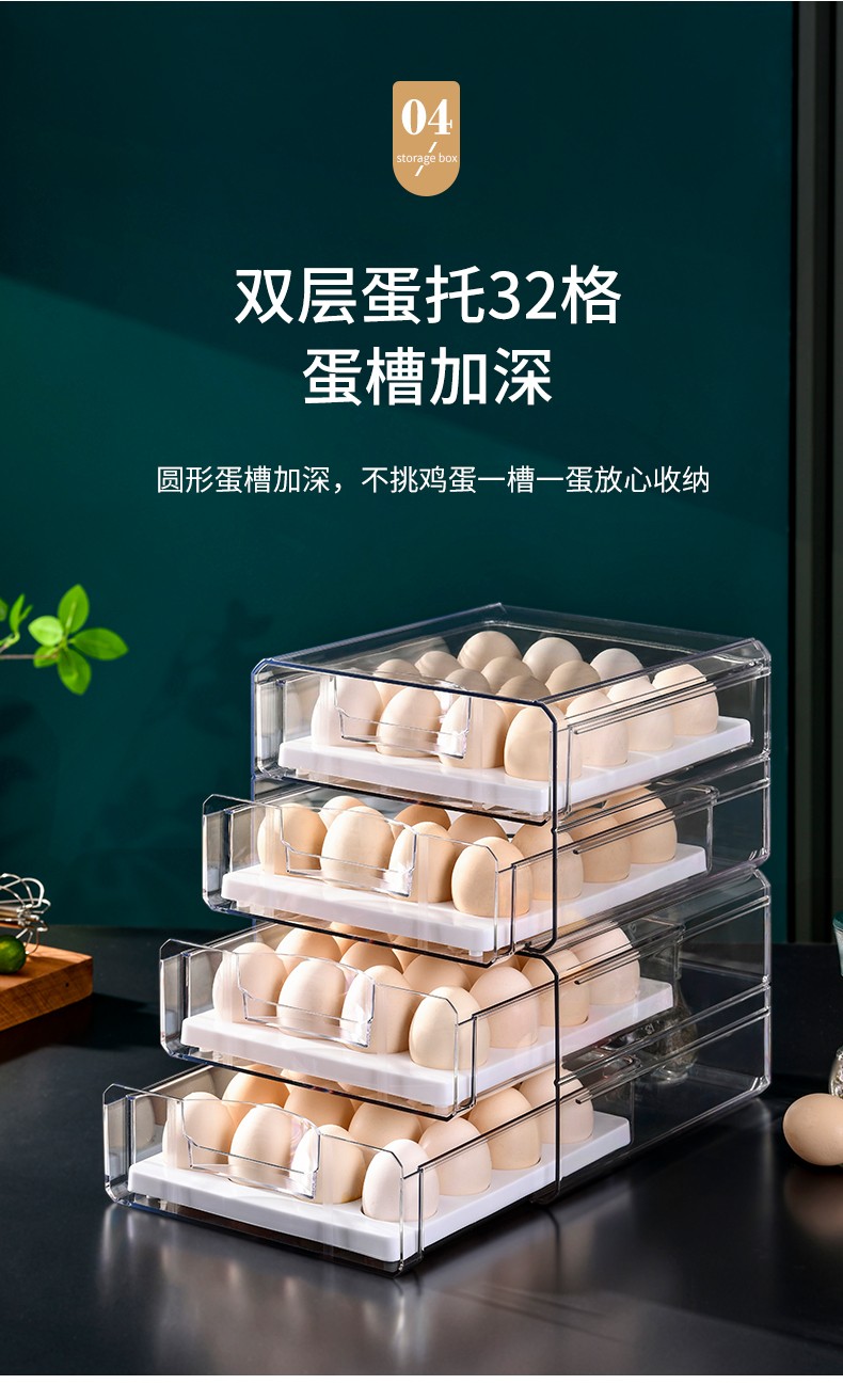 Half-life egg carton thickened egg storage box refrigerator crisper kitchen storage box double-layer drawer-type crisper egg compartment refrigerator freezer box egg tray egg storage box egg carton double-layer 32 compartments