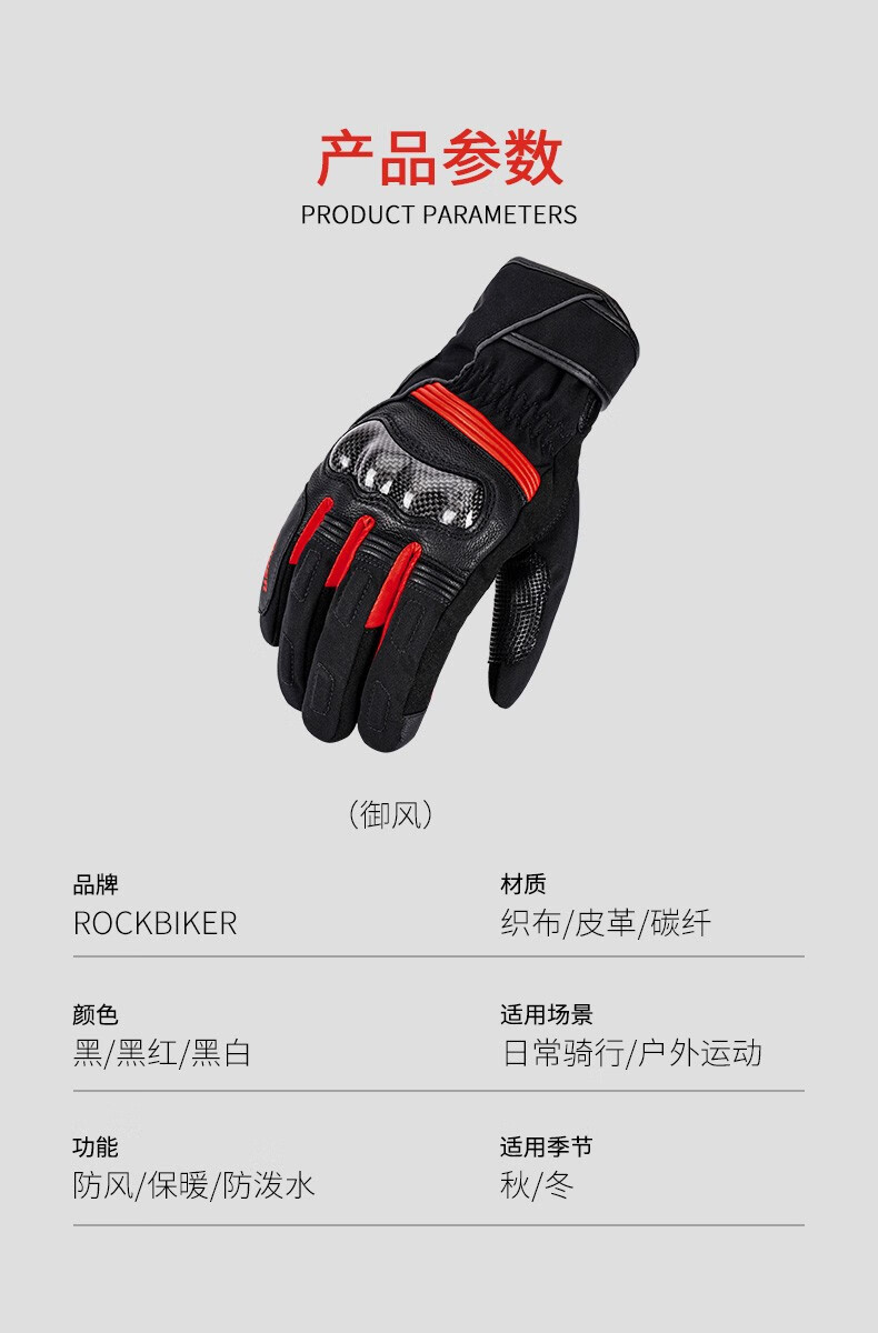 ROCK BIKER Hardcore Rider Motorcycle Gloves for Men and Women Anti-fall Winter Warm Touch Screen Motorcycle Riding Equipment Leader-Black and White XL