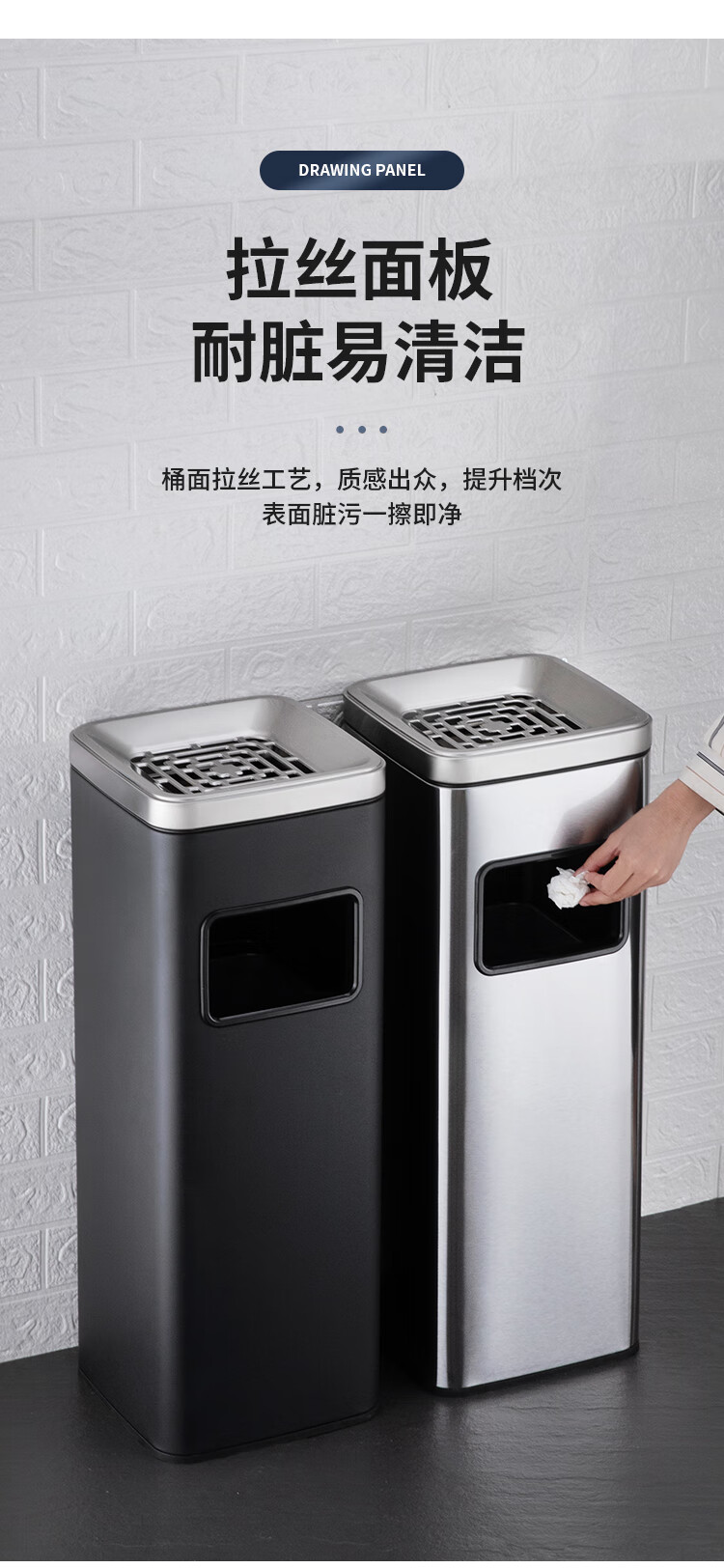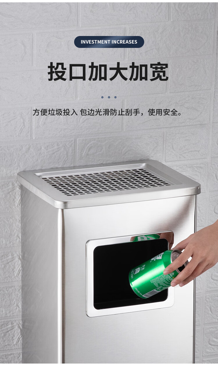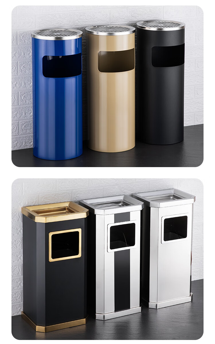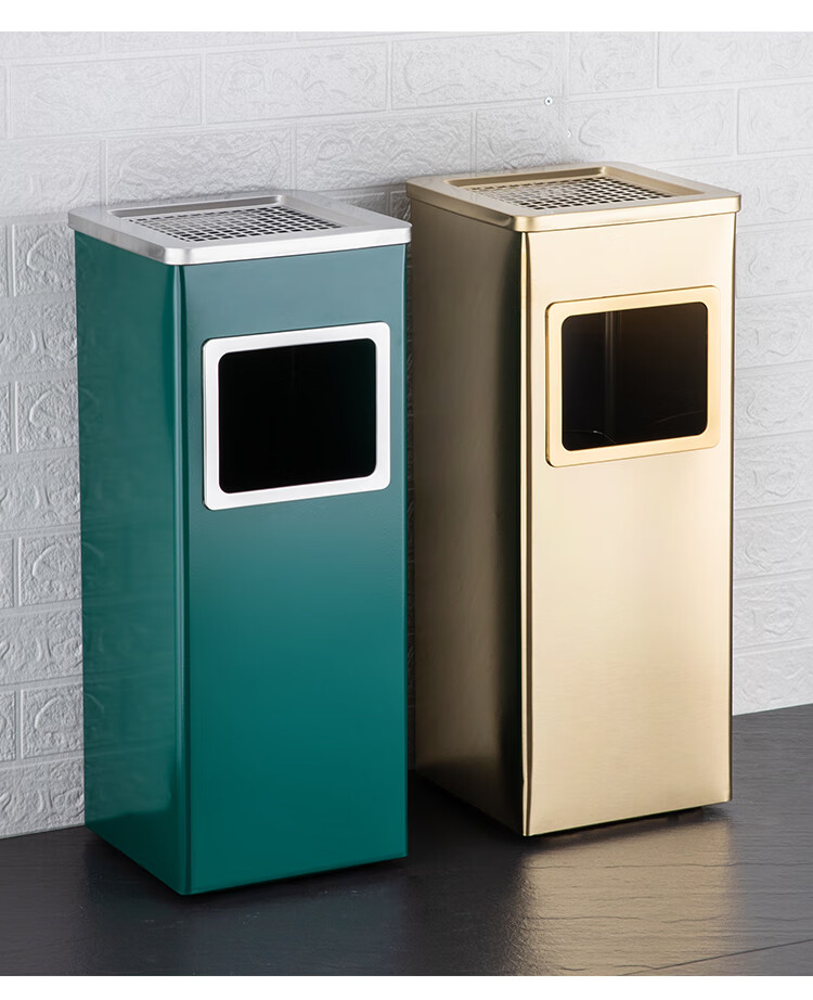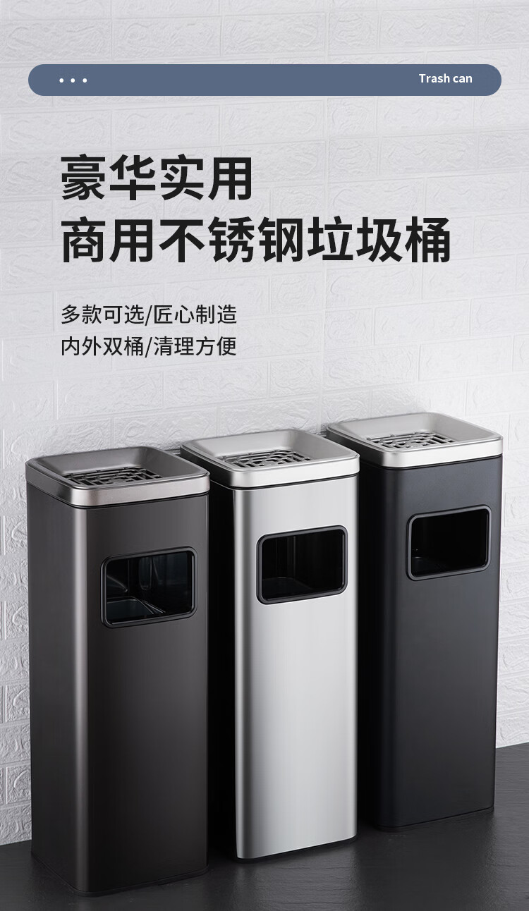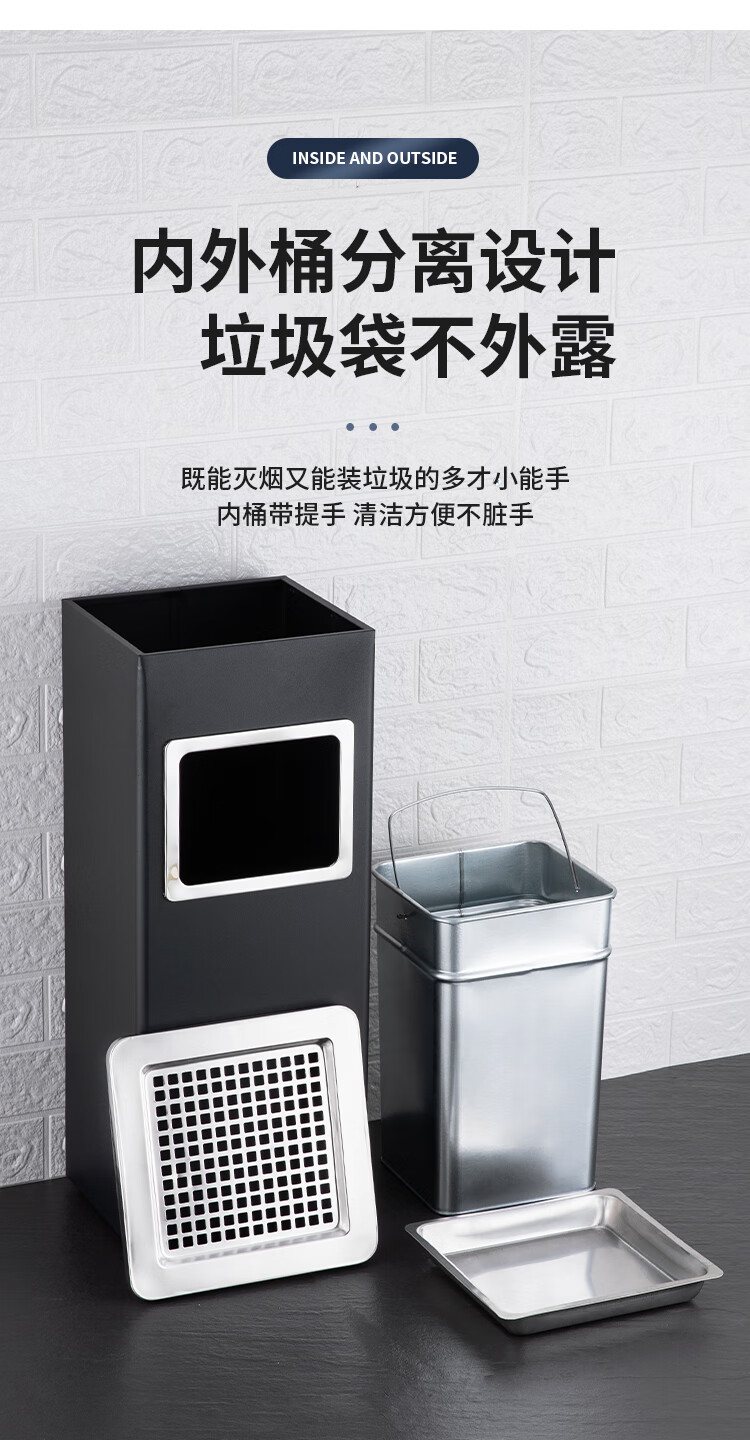 Nanqin outdoor stainless steel trash can ash bucket with ashtray hotel lobby hotel elevator entrance corridor vertical square black 24*24*61- 13L