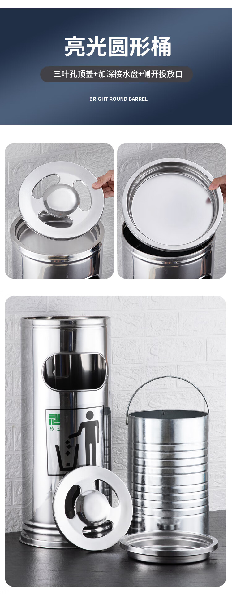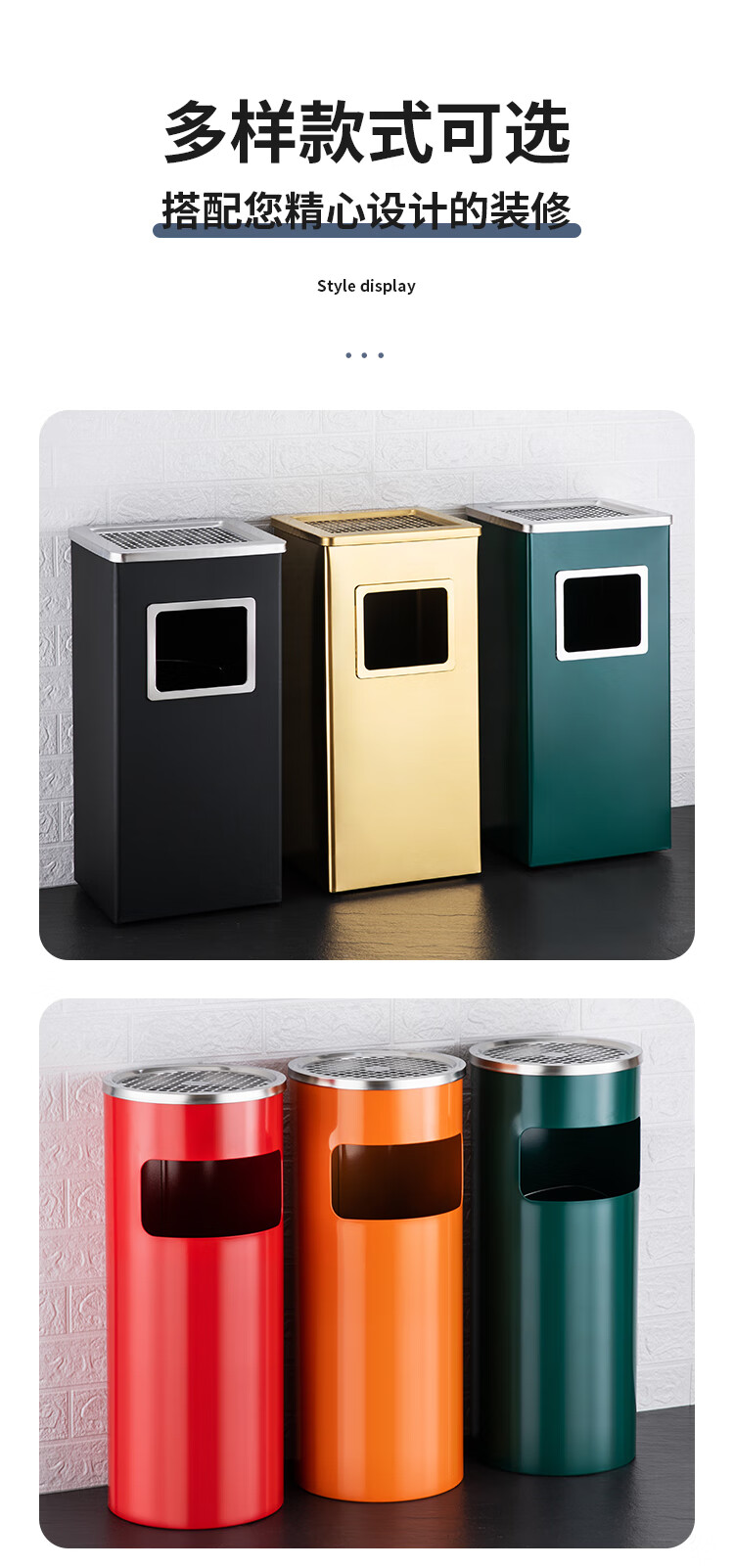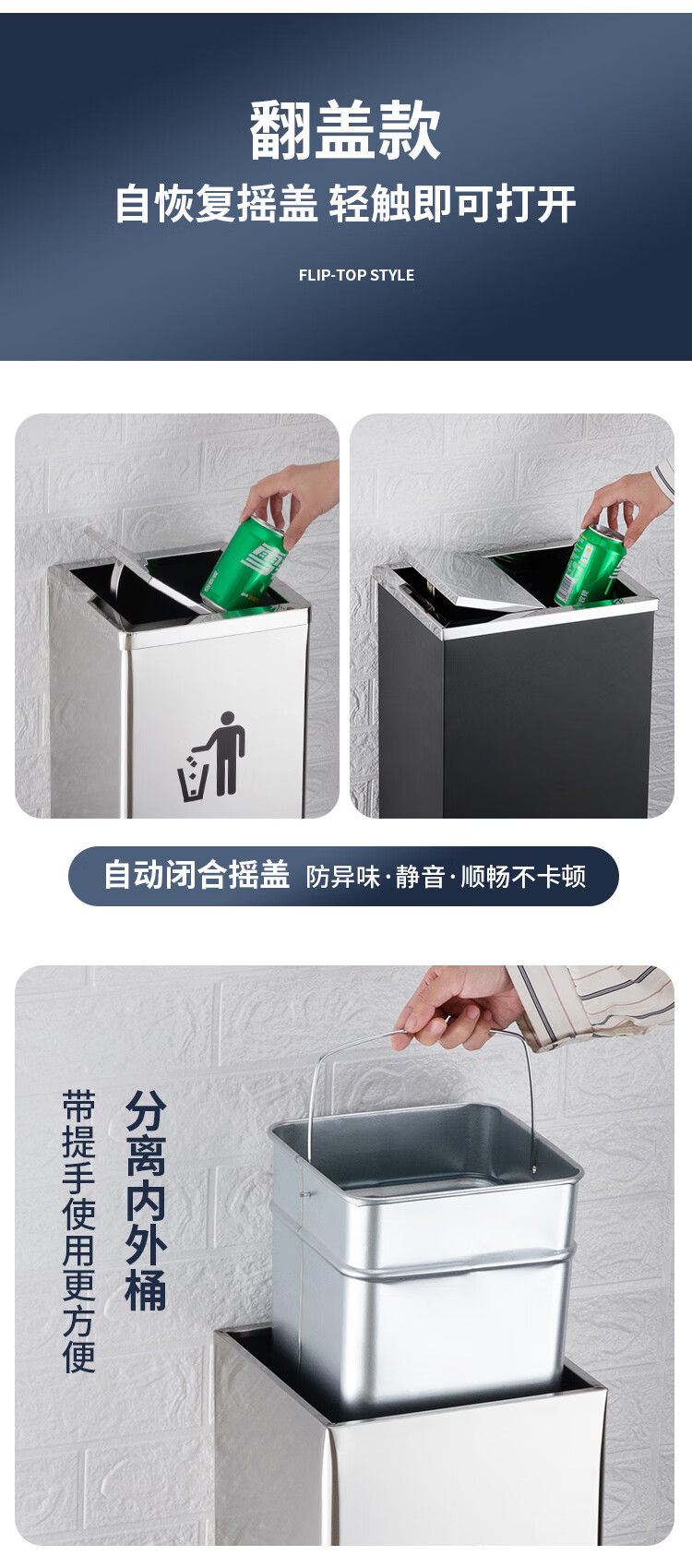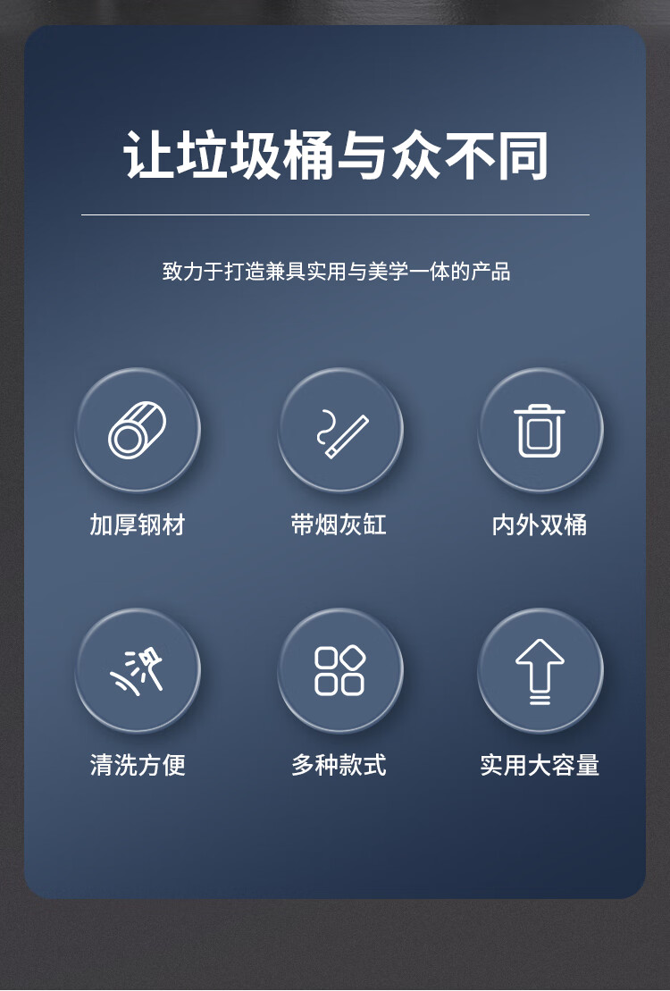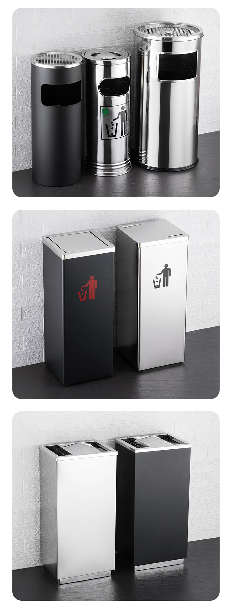 Nanqin outdoor stainless steel trash can ash bucket with ashtray hotel lobby hotel elevator entrance corridor vertical square black 24*24*61- 13L
