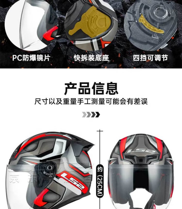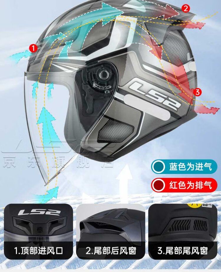 LS2 new motorcycle helmet quarter helmet electric moped four seasons large tail large size men and women half helmet OF608 flash white 2XL (recommended 59-60CM)