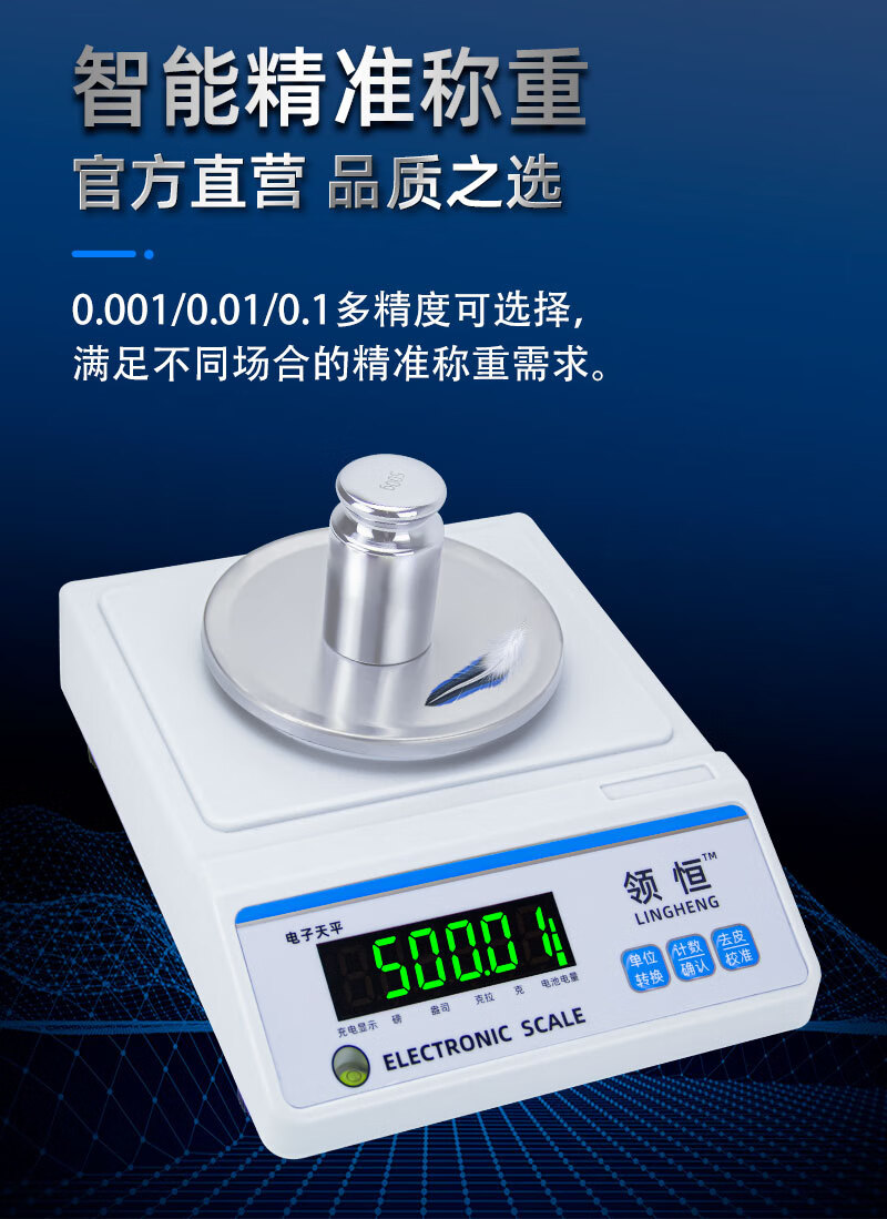 Lingheng electronic balance scale 0.01g0.001g electronic weighing scale high-precision textile balance weight meter precision laboratory analysis balance jewelry medicine scale counting scale rechargeable and plug-in dual-use disc 300g/0.01g with weight windshield