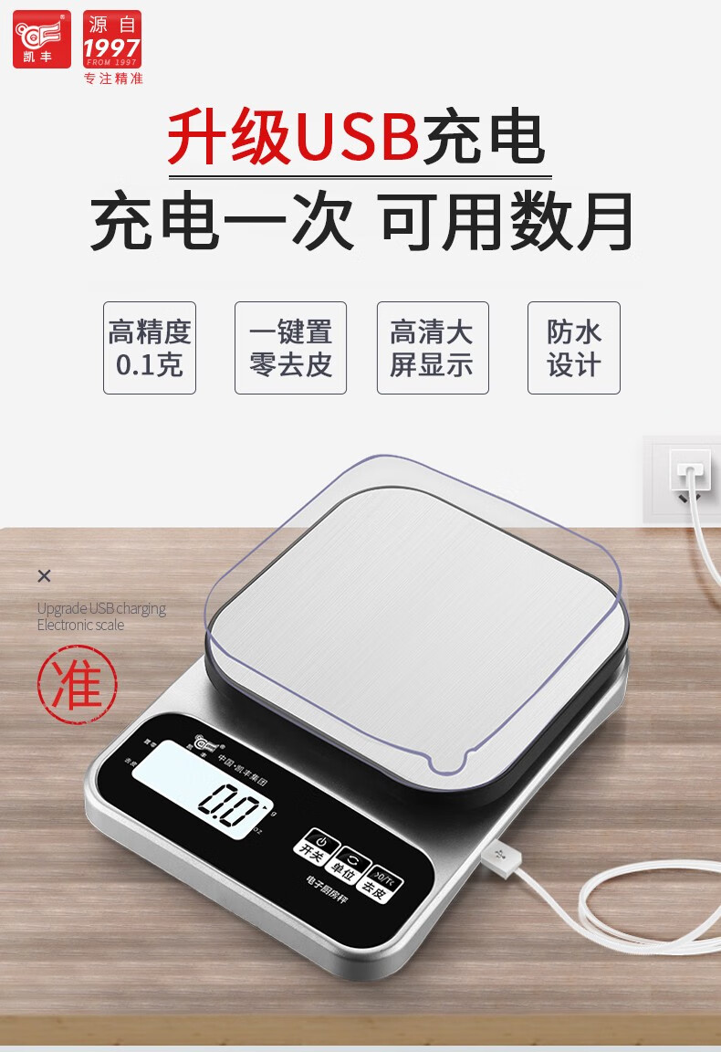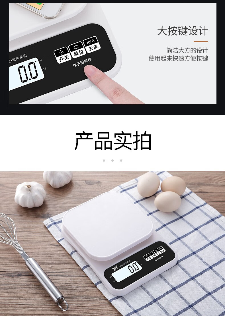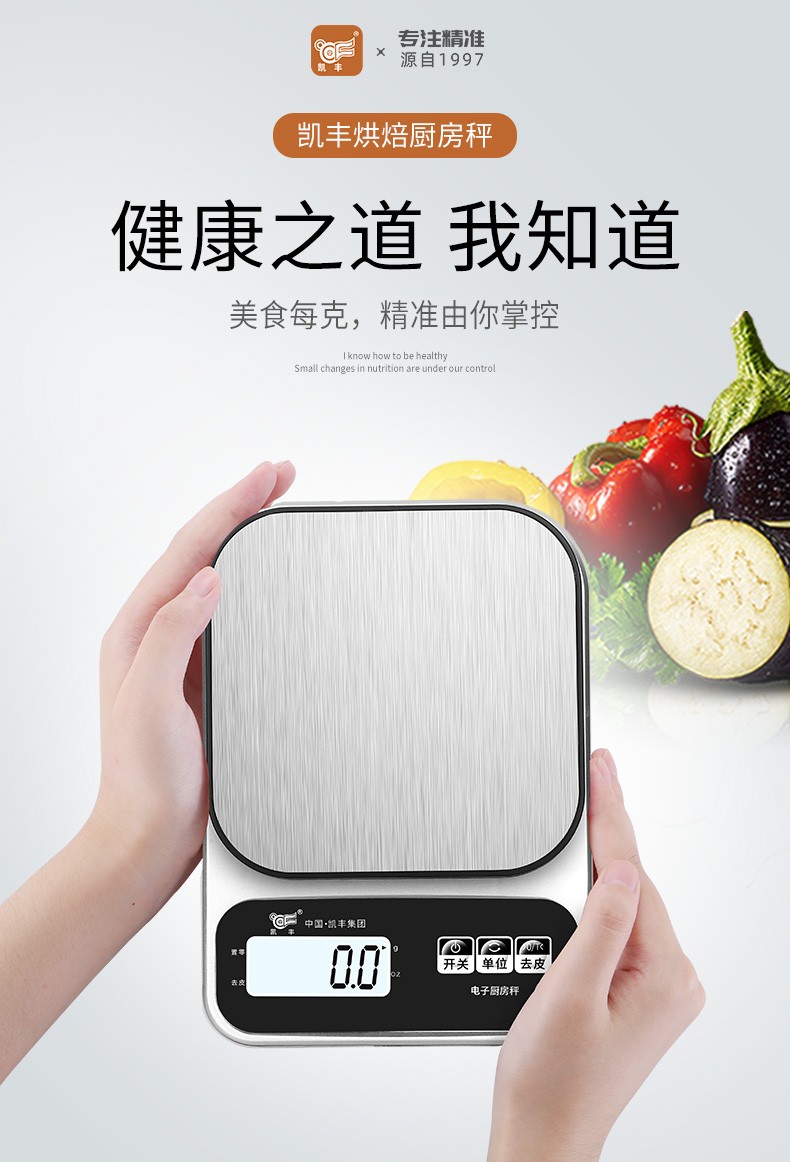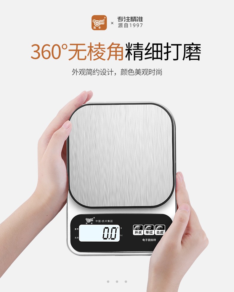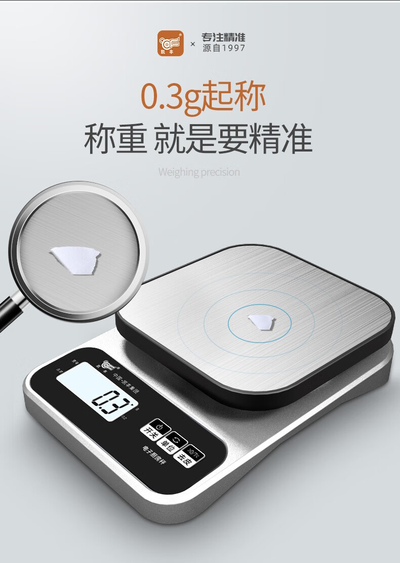 Kaifeng kitchen scale electronic scale household small gram scale baking scale accurate weighing food scale stainless steel battery model 3kg/0.1g with backlight