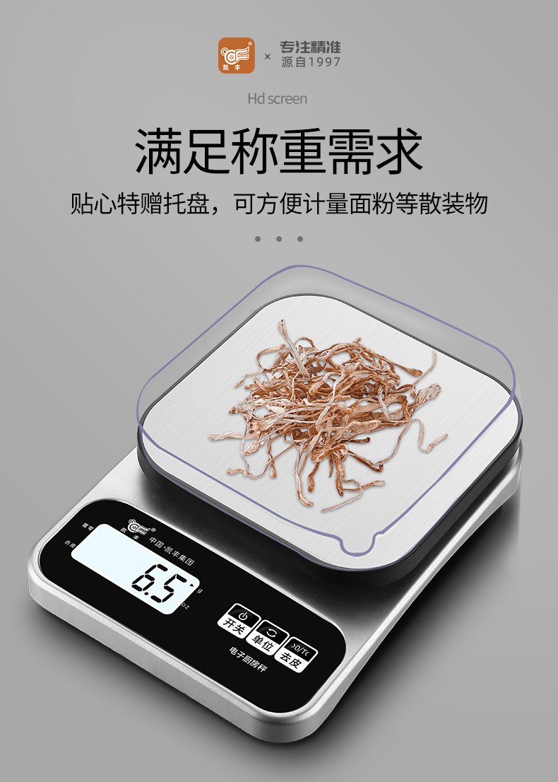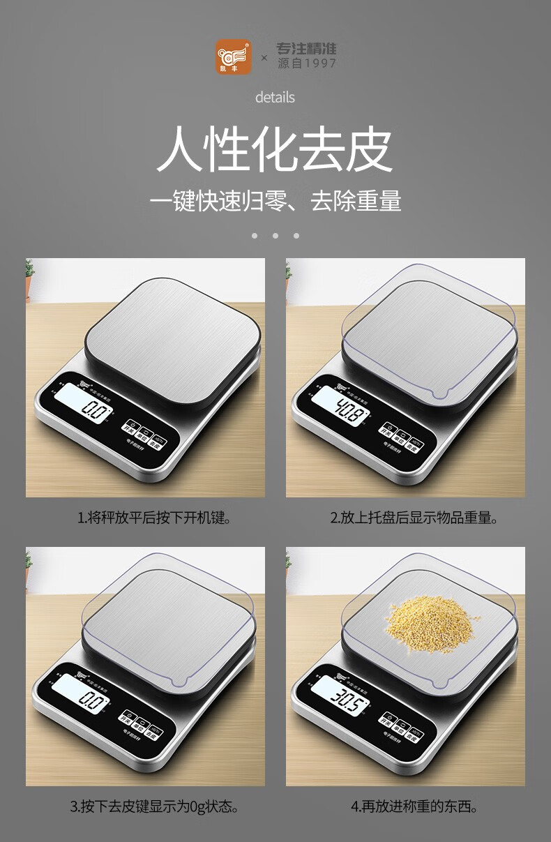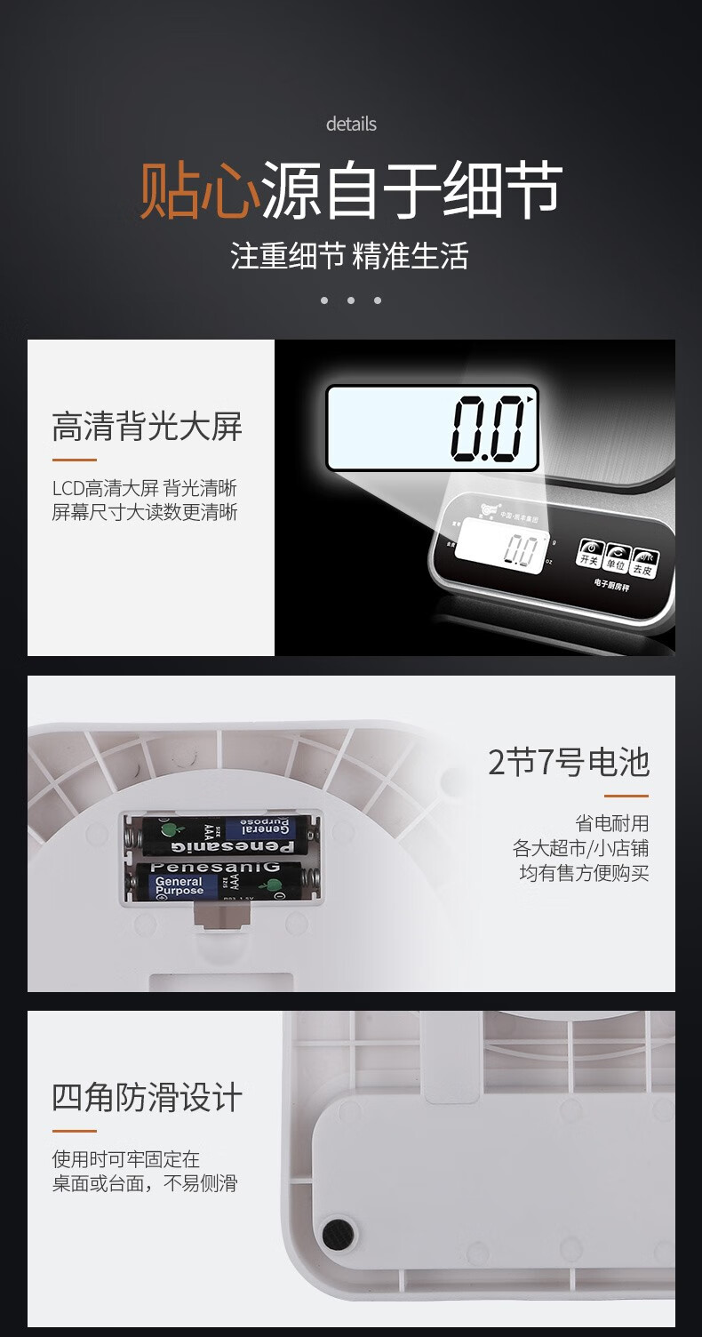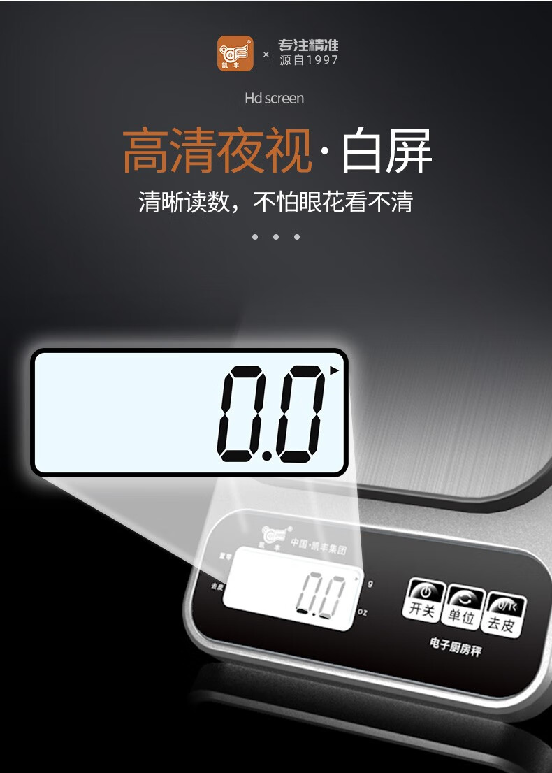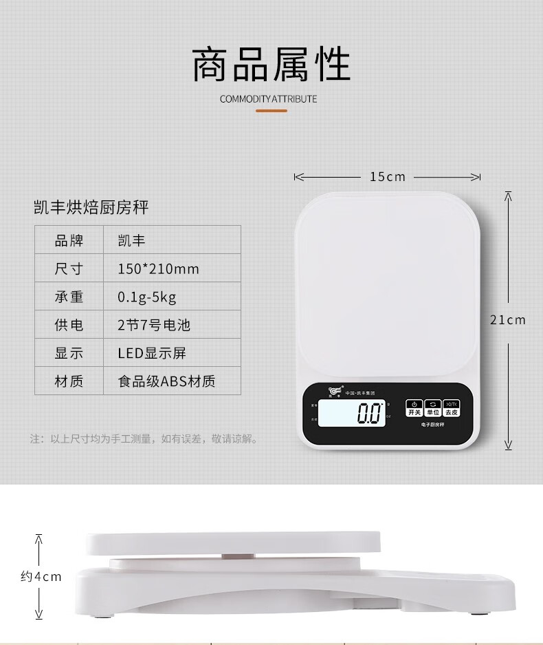 Kaifeng kitchen scale electronic scale household small gram scale baking scale accurate weighing food scale stainless steel battery model 3kg/0.1g with backlight