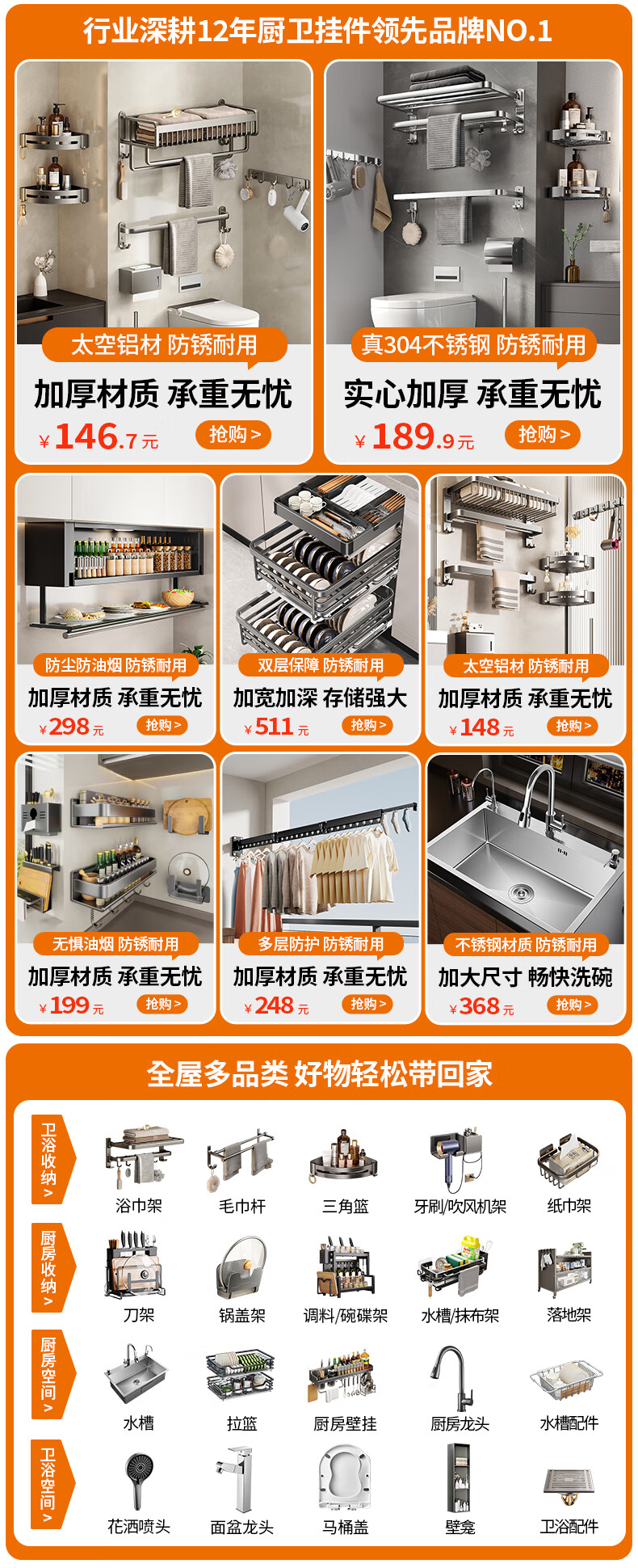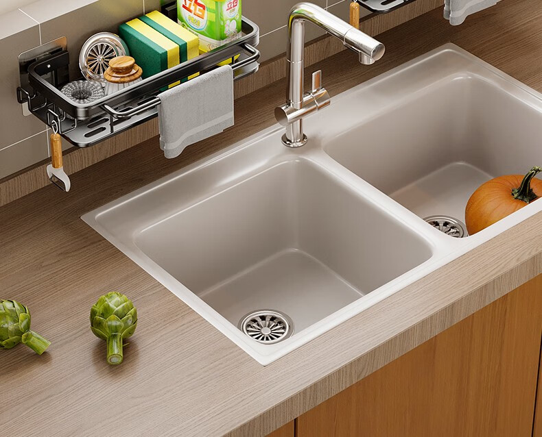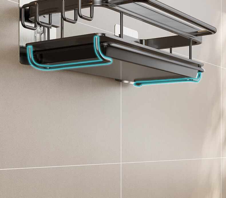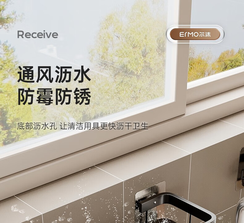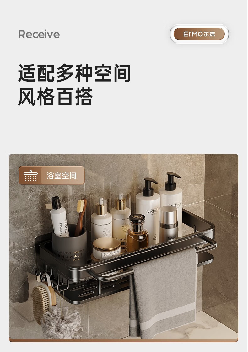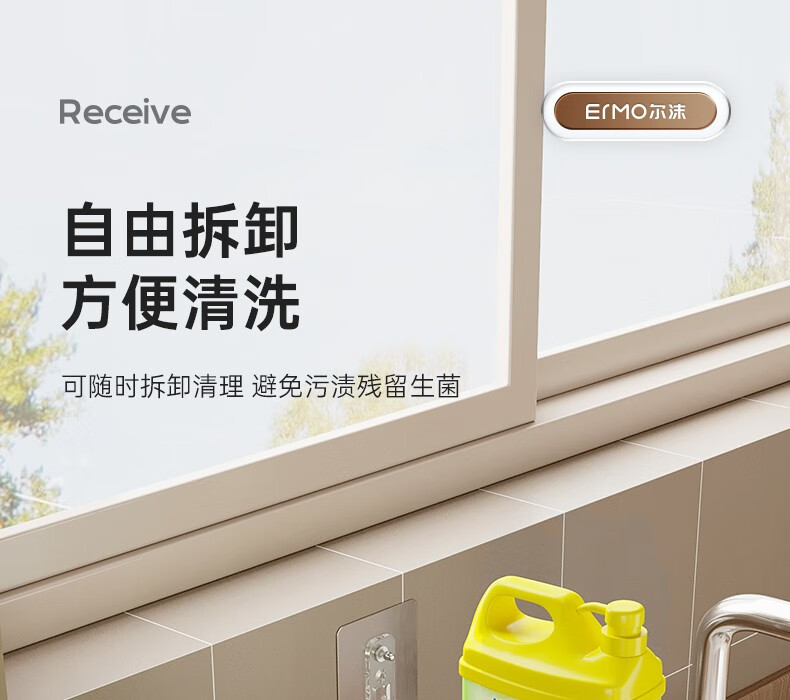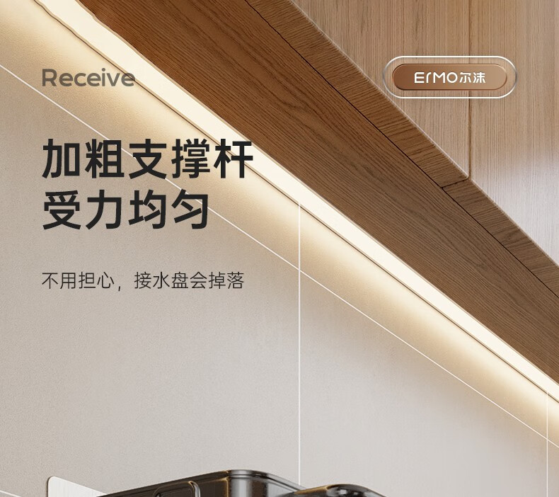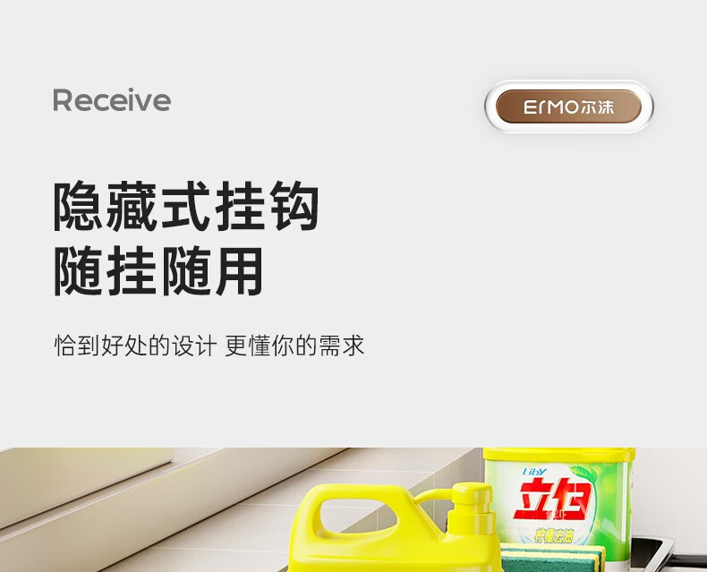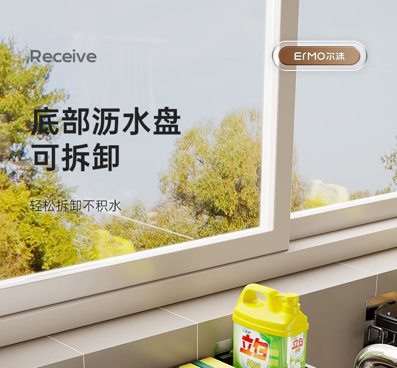 Ermo kitchen rack without punching, dishwashing liquid rag rack, drain rack, dishwashing sink, drain hanging basket, storage rack, gun ash 30cm, with rod, hook + drain tray