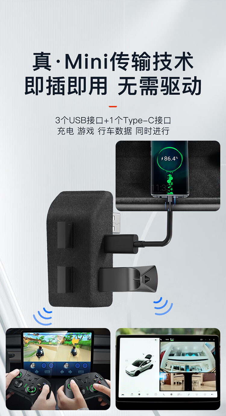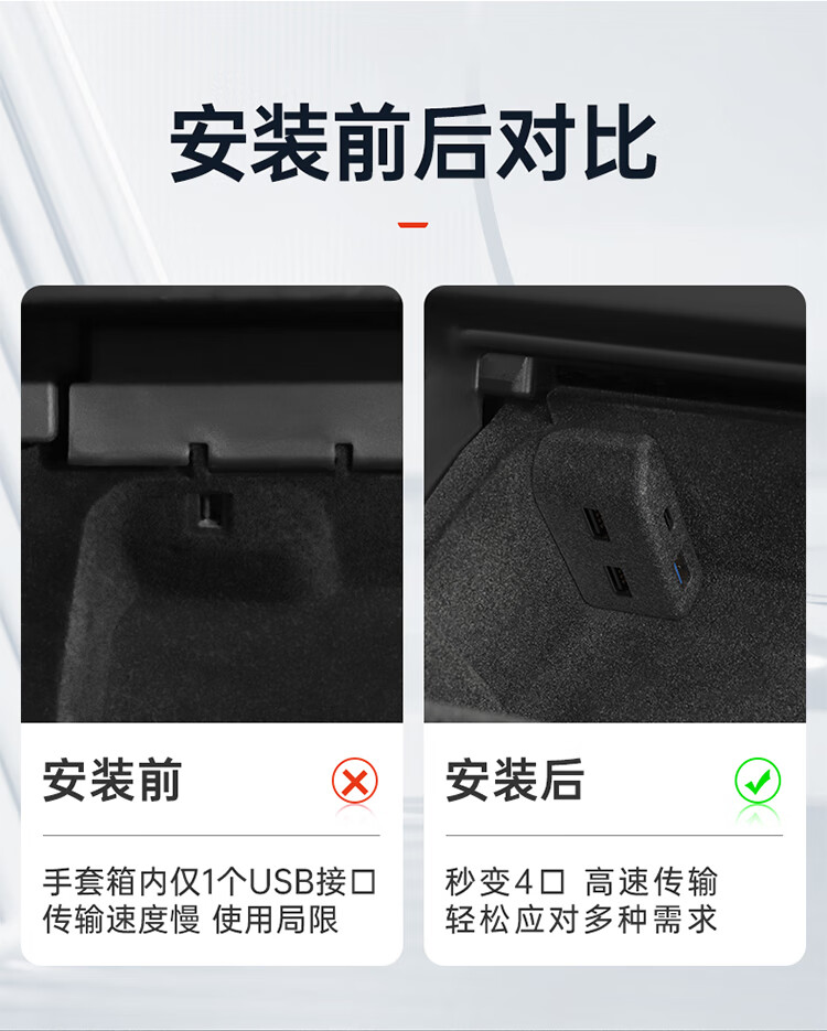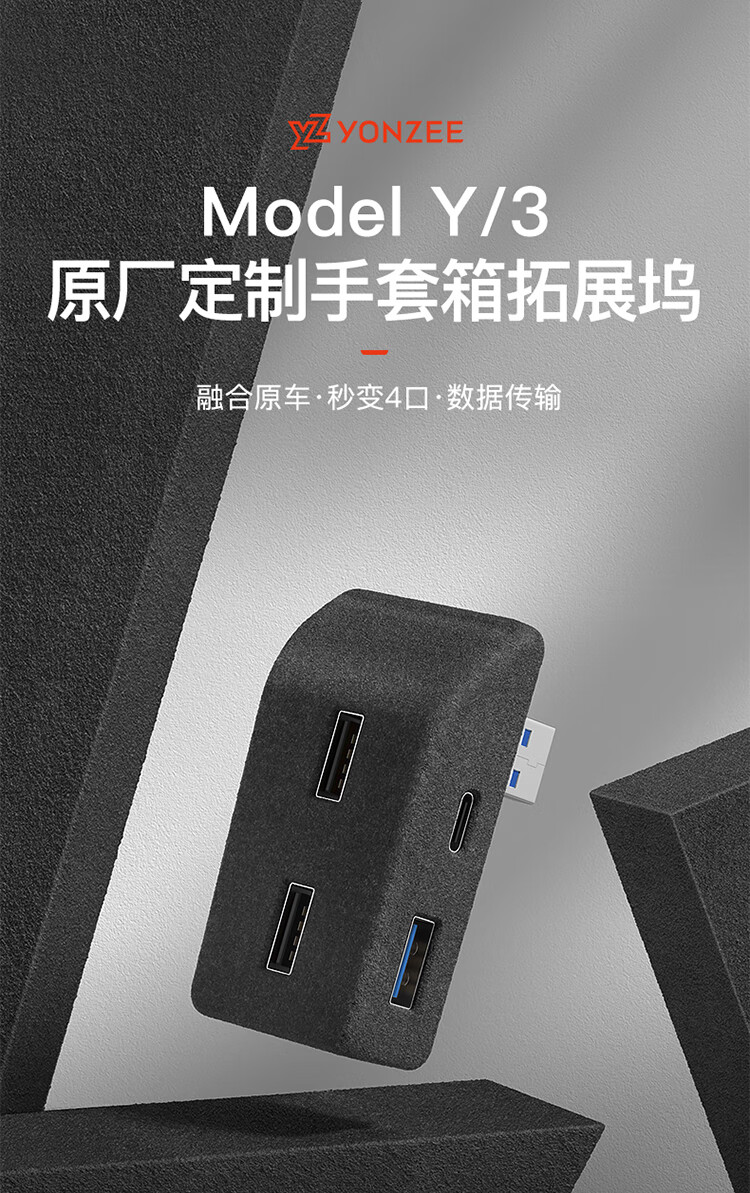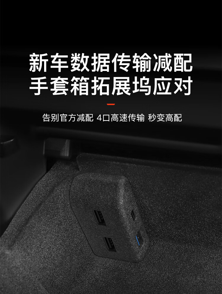 YZ is suitable for Tesla model3/Y glove box expansion dock central control expander HUB adapter USB accessories old Model Y original car customization-glove box 4-port expansion dock