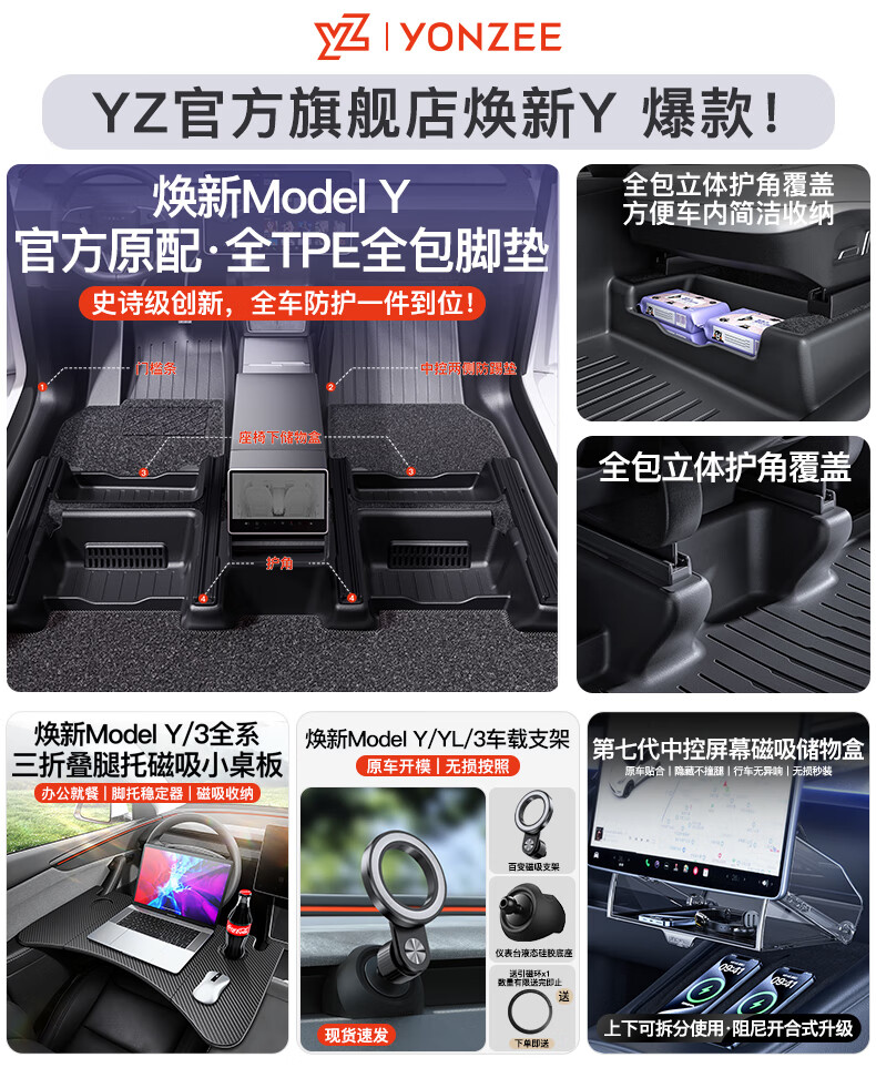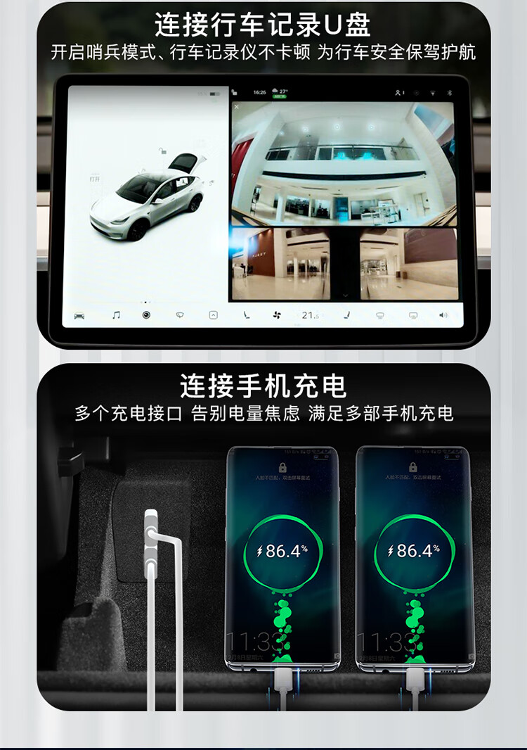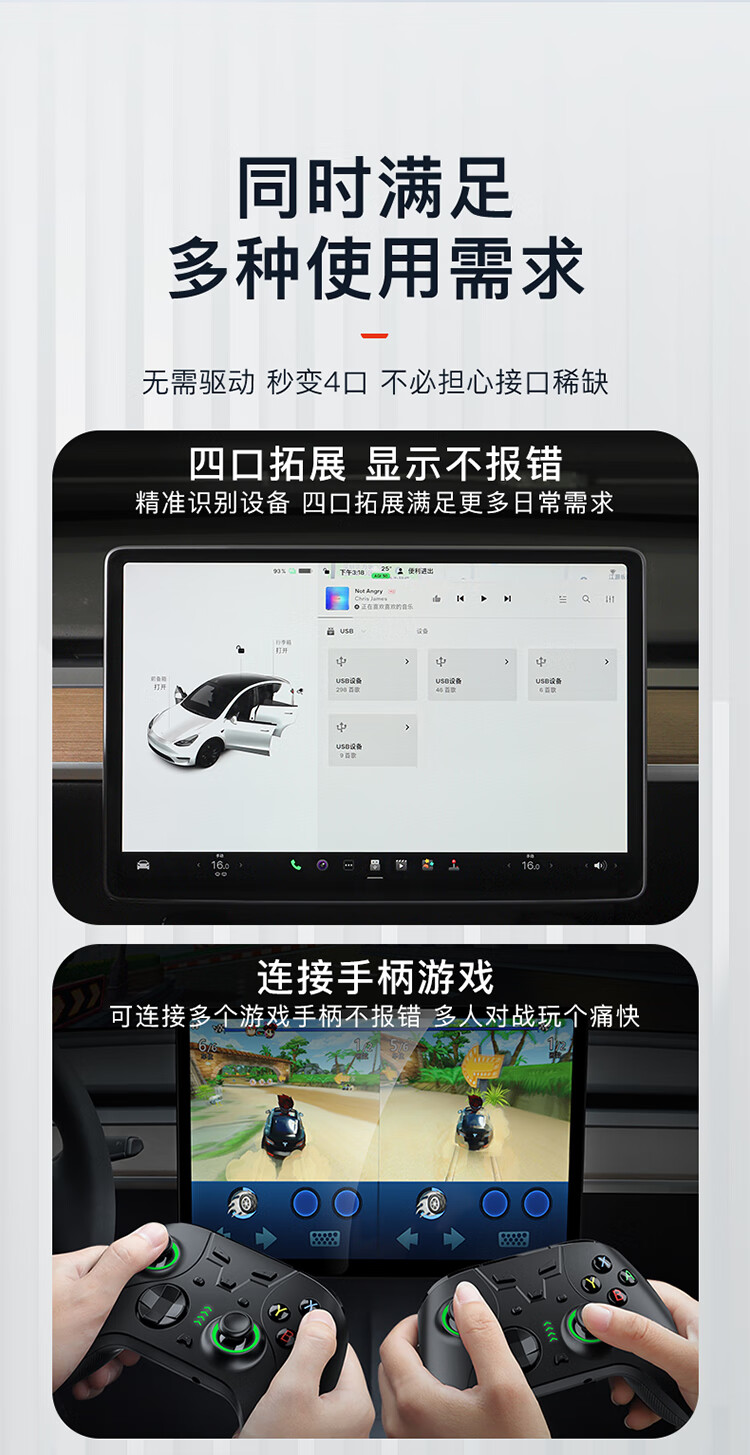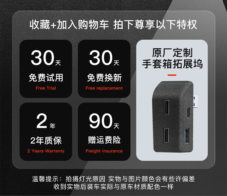 YZ is suitable for Tesla model3/Y glove box expansion dock central control expander HUB adapter USB accessories old Model Y original car customization-glove box 4-port expansion dock