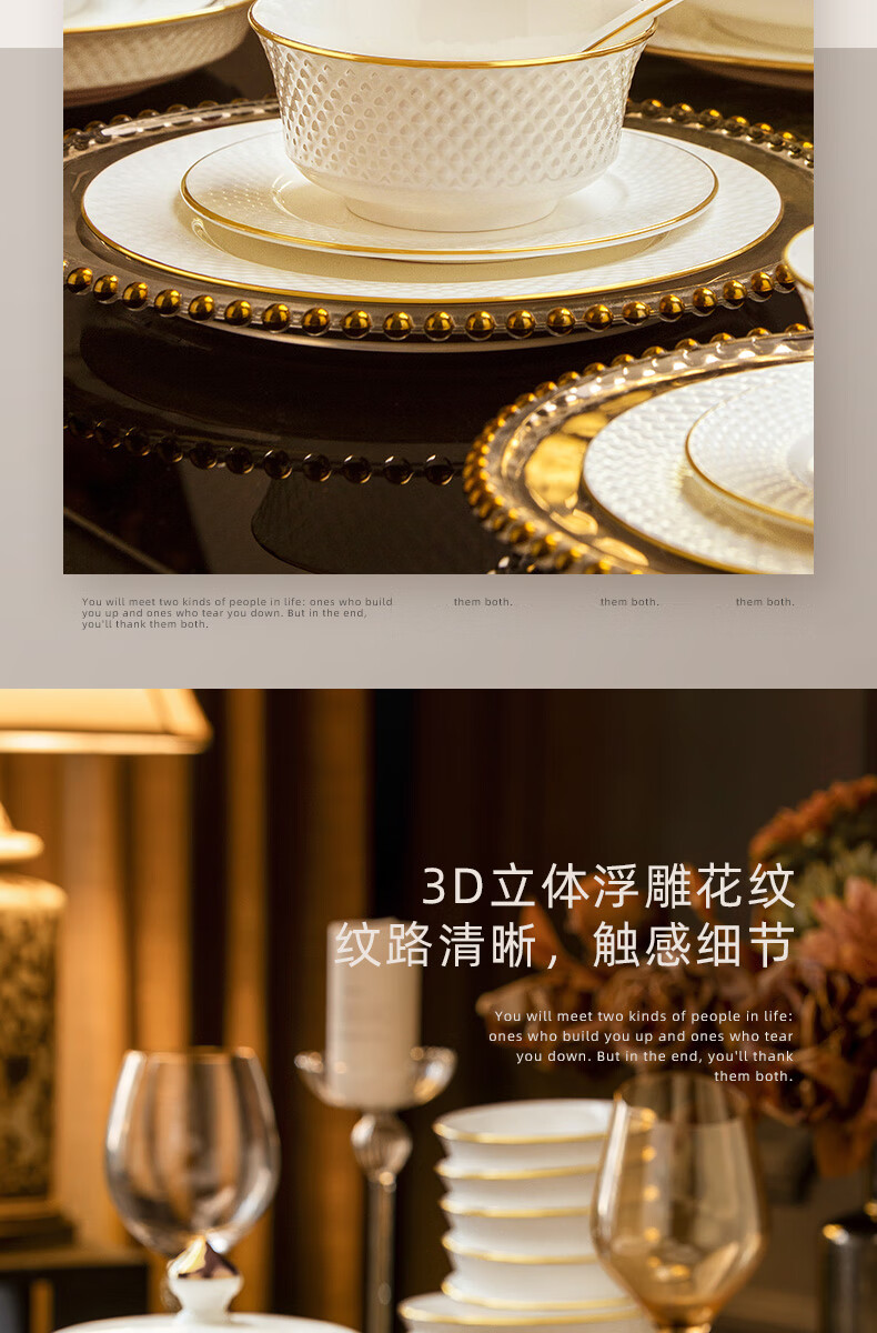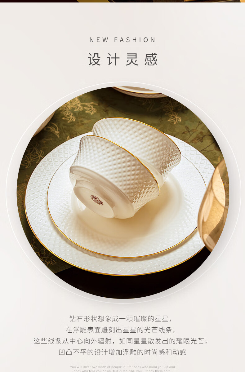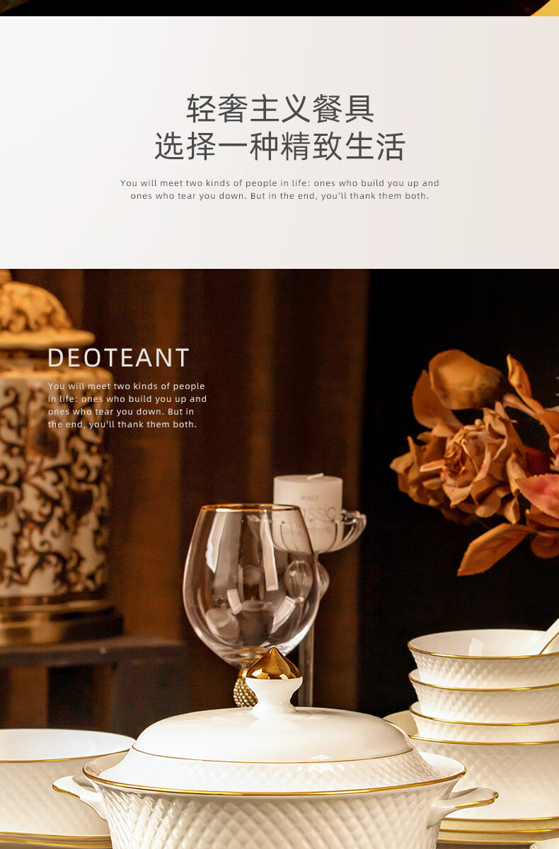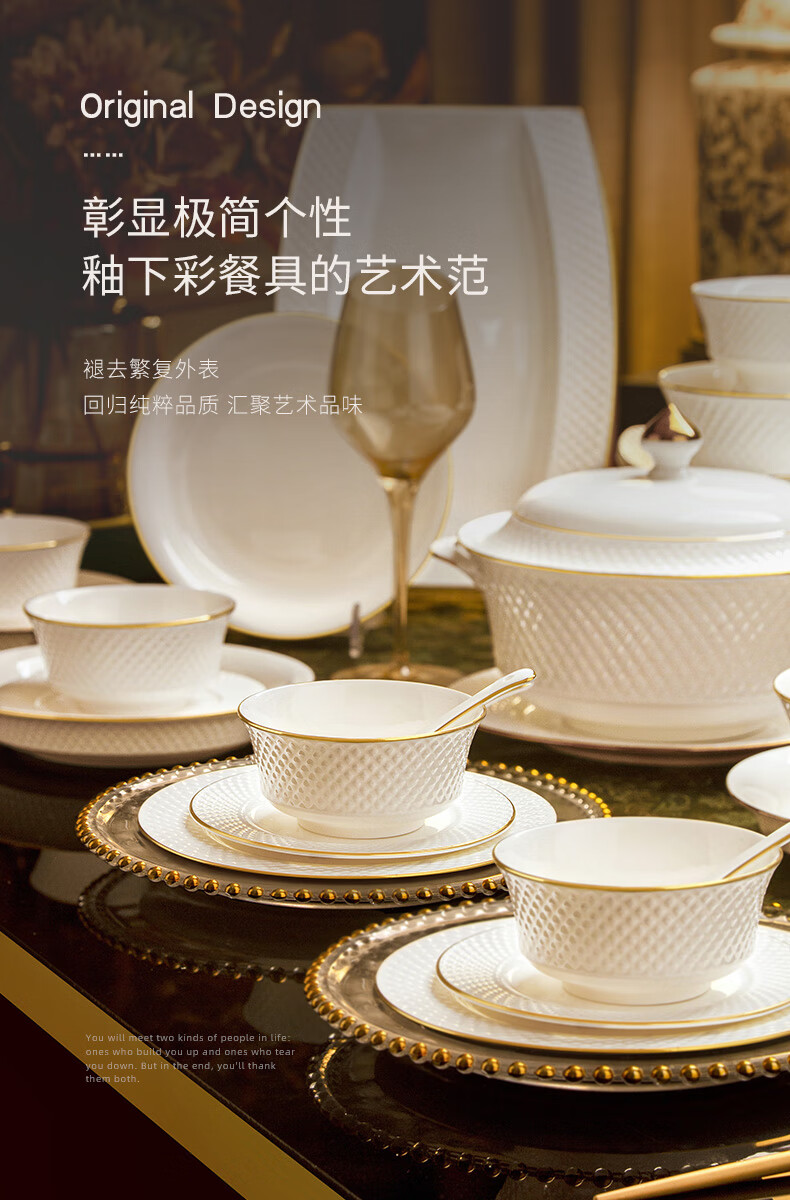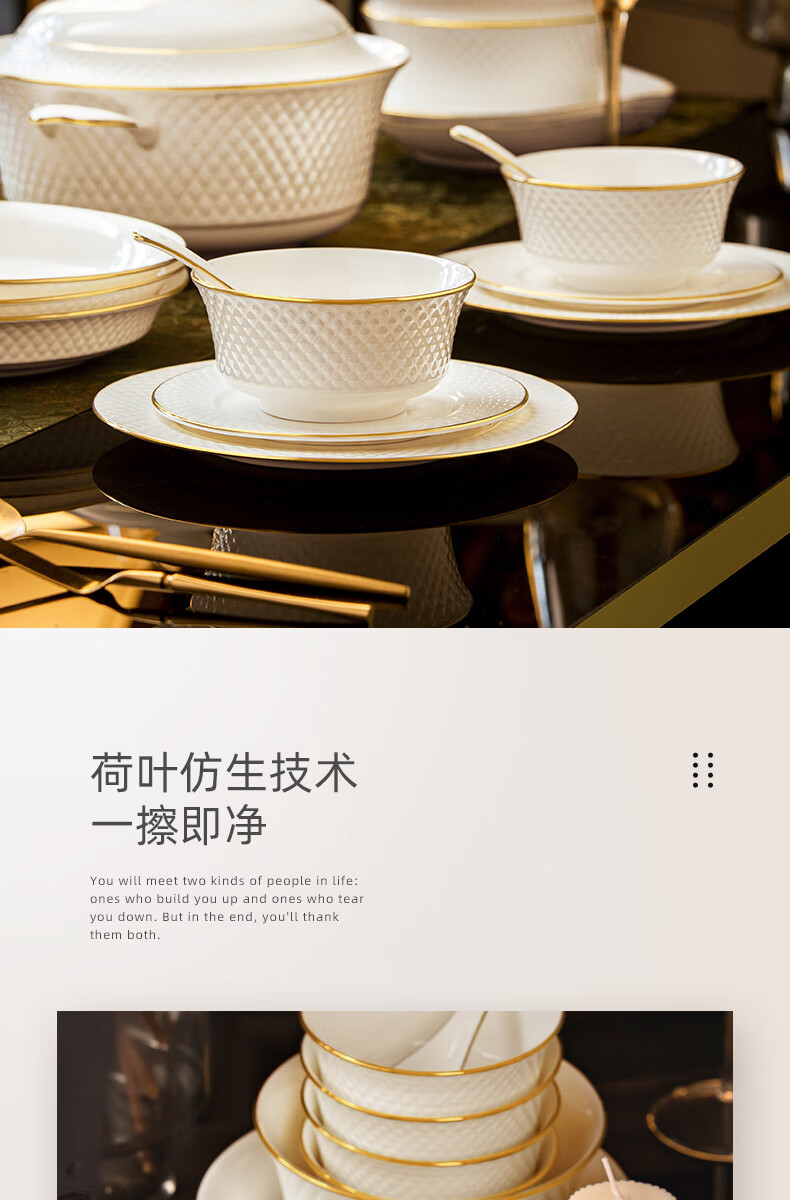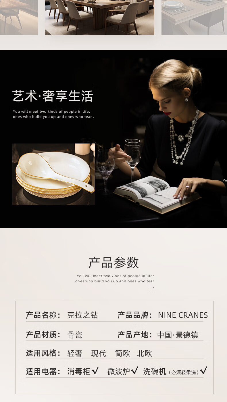 NINE CRANES modern light luxury Jingdezhen bone china bowl and dish set household moving gift bowl and dish set high-end tableware set 80 pieces 10 person set Microwave sterilizer