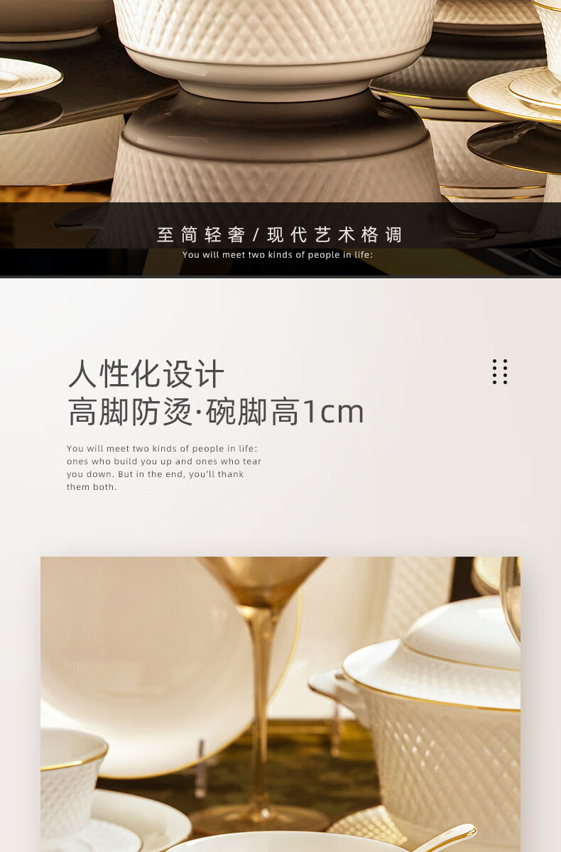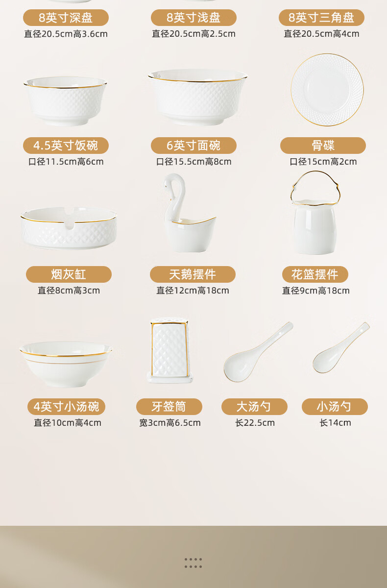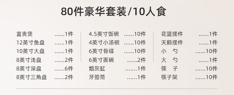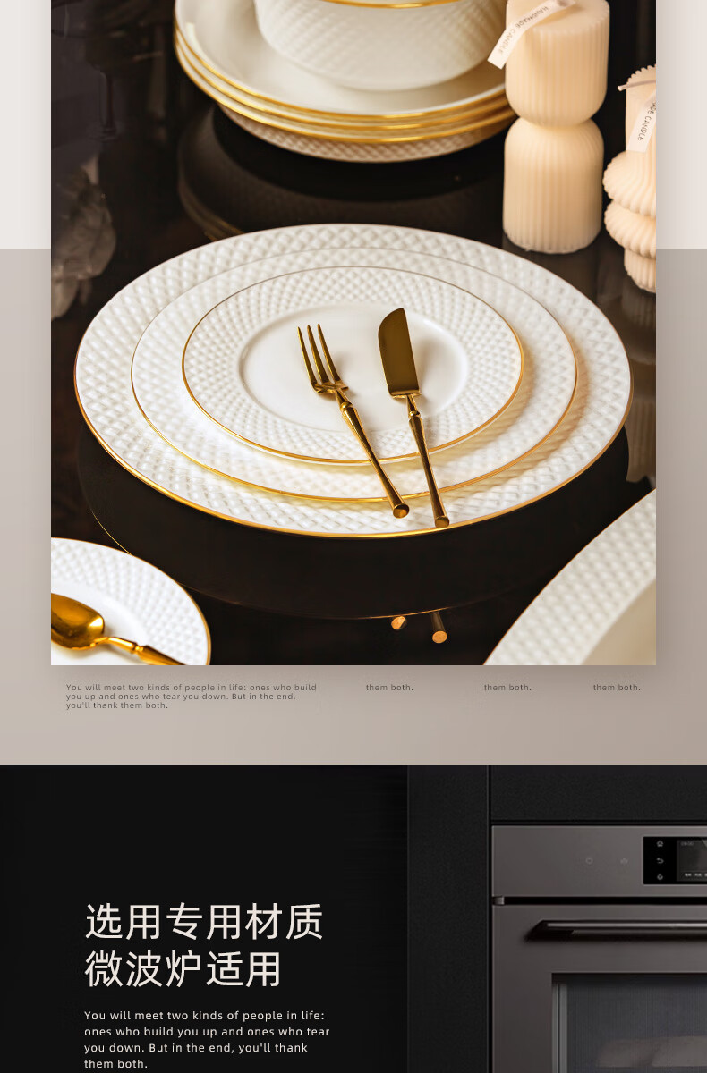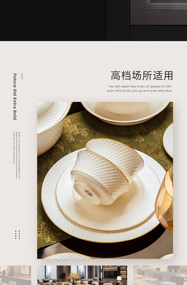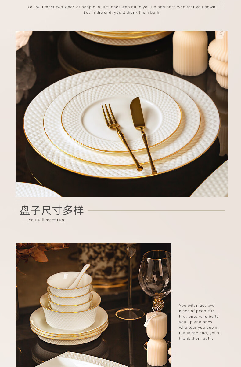 NINE CRANES modern light luxury Jingdezhen bone china bowl and dish set household moving gift bowl and dish set high-end tableware set 80 pieces 10 person set Microwave sterilizer