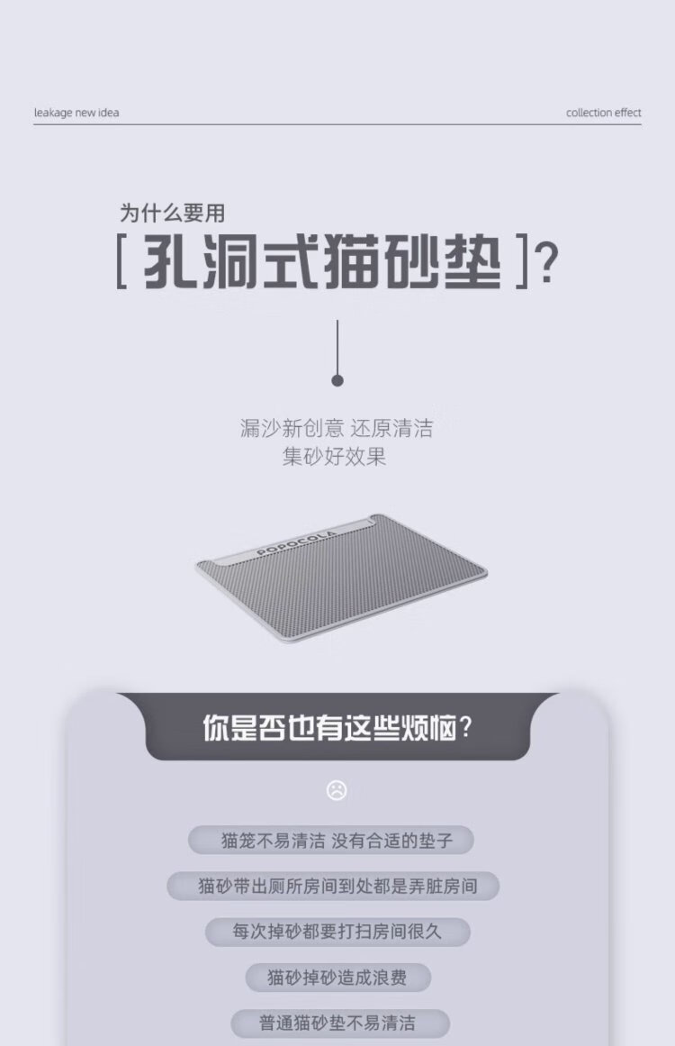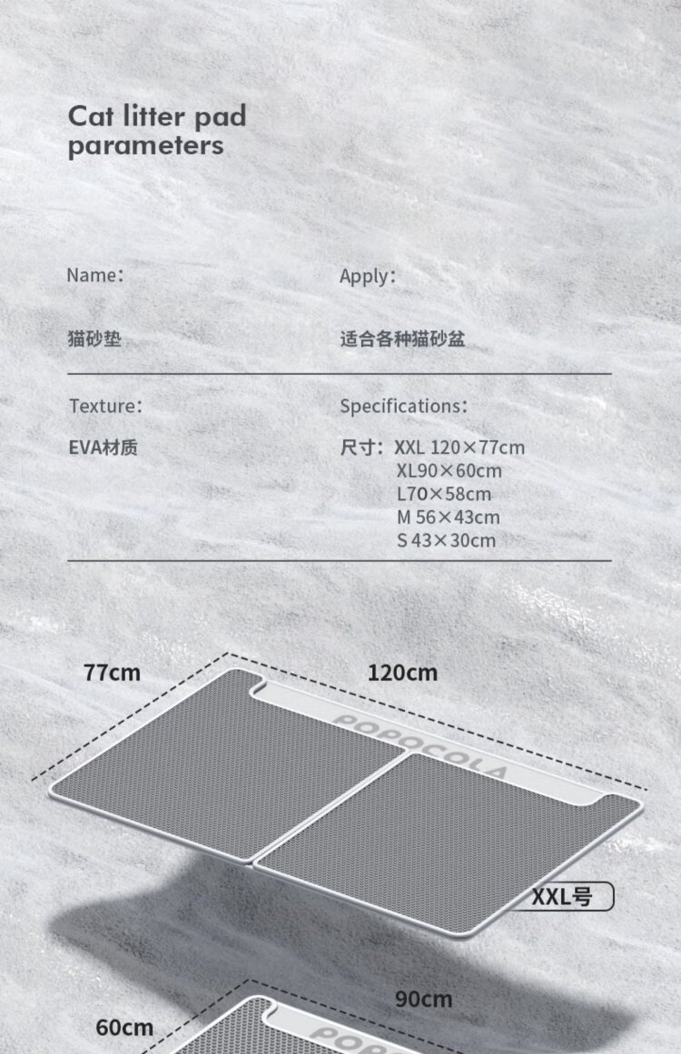 POPOCOLA cat litter mat, anti-splash, anti-take-out, litter box control, sand falling, double-layer filtering, sand-leaking cat mat, anti-splash toilet foot mat, thin 70*120CM, super large and practical