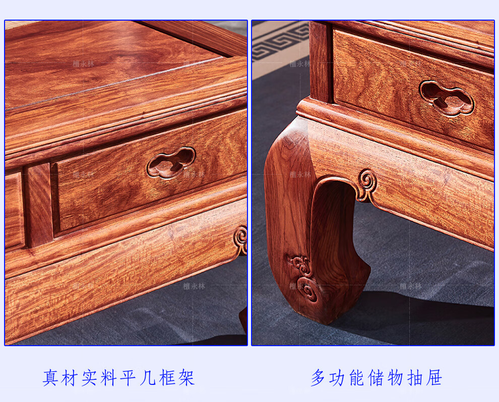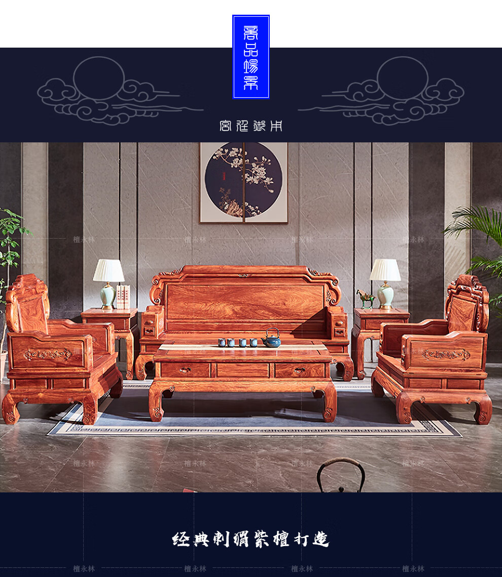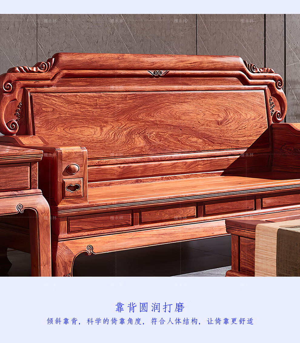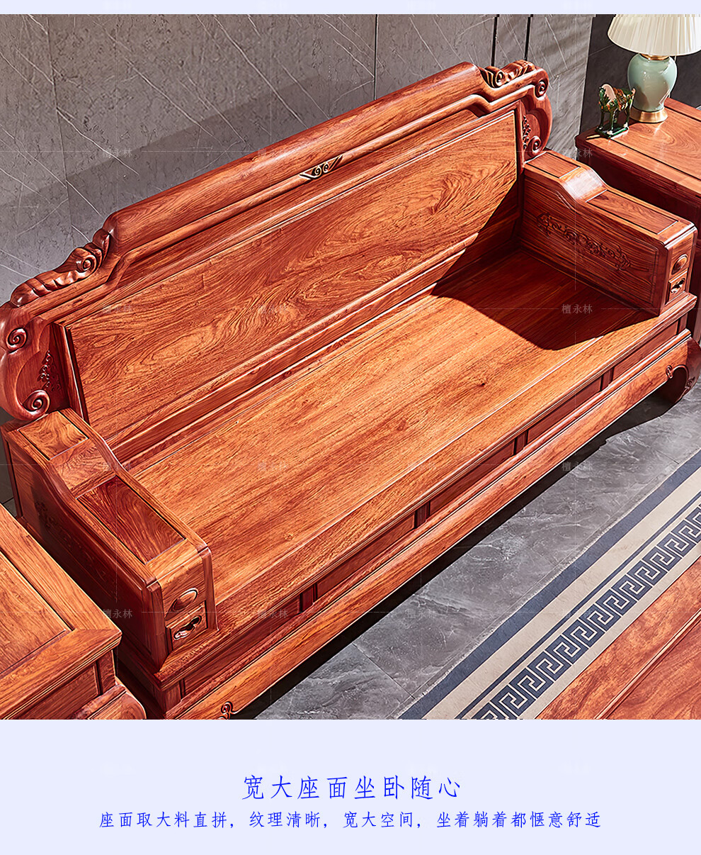 Tan Yonglin mahogany furniture African rosewood (scientific name: Hedgehog rosewood) sofa solid wood sofa complete combination Chinese villa living room furniture 113 six-piece set (2 singles + three + coffee table + 2 side tables)