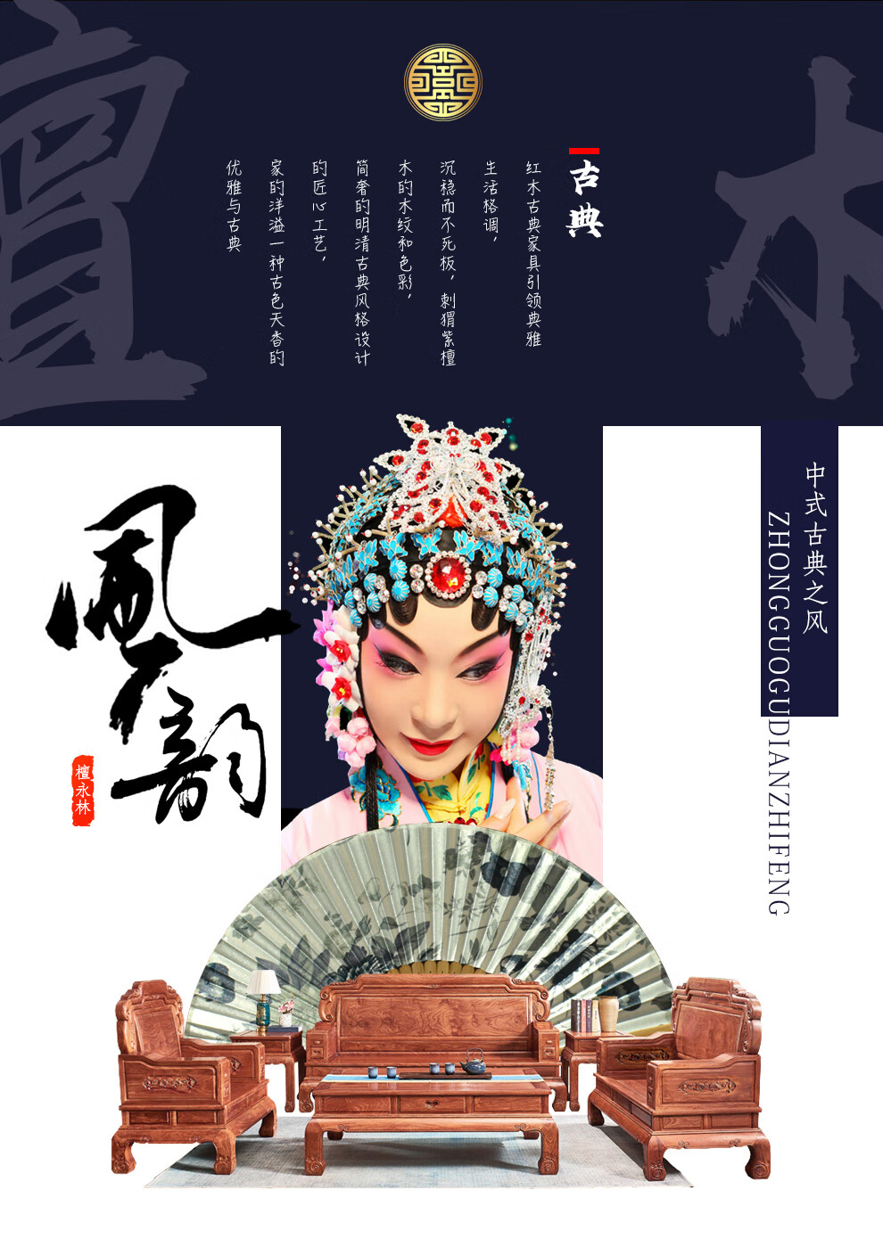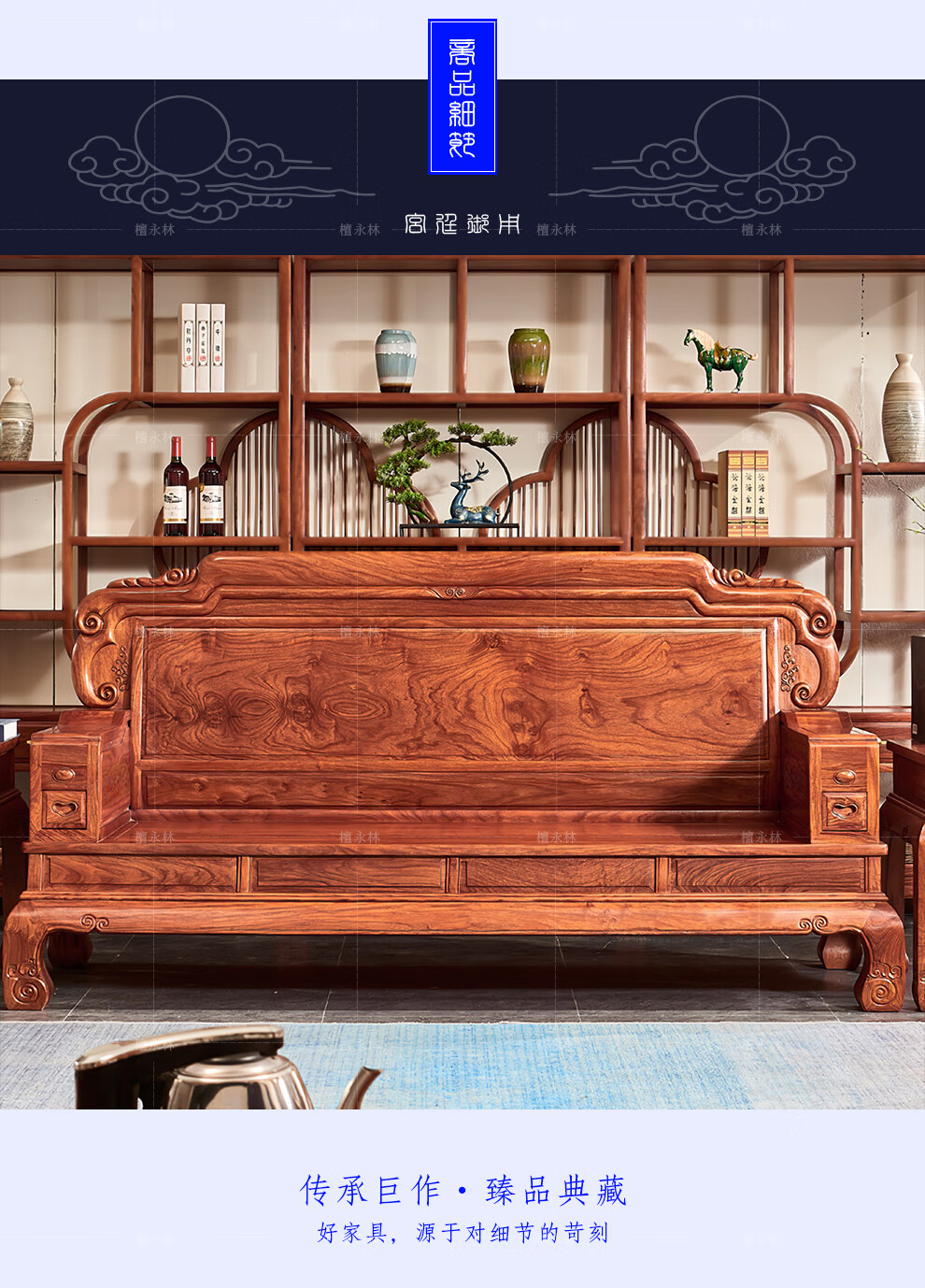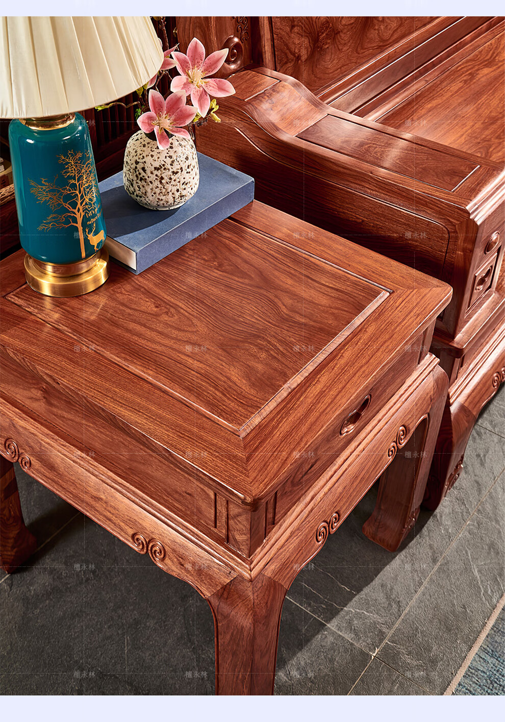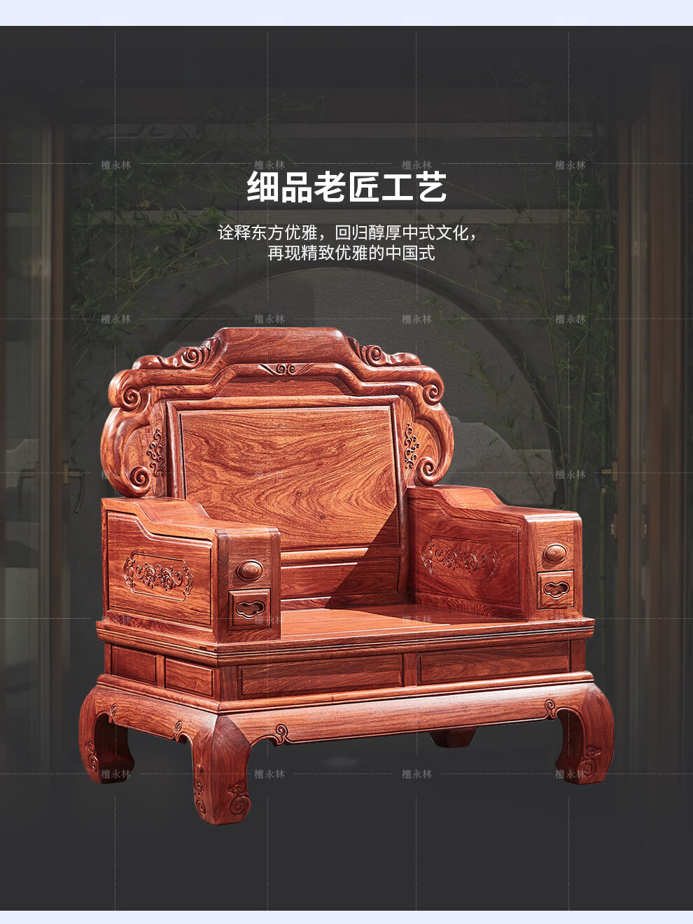 Tan Yonglin mahogany furniture African rosewood (scientific name: Hedgehog rosewood) sofa solid wood sofa complete combination Chinese villa living room furniture 113 six-piece set (2 singles + three + coffee table + 2 side tables)