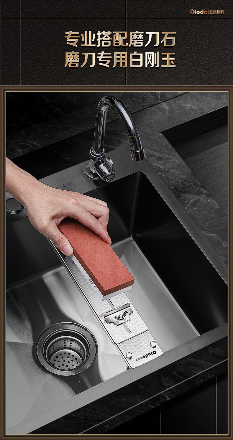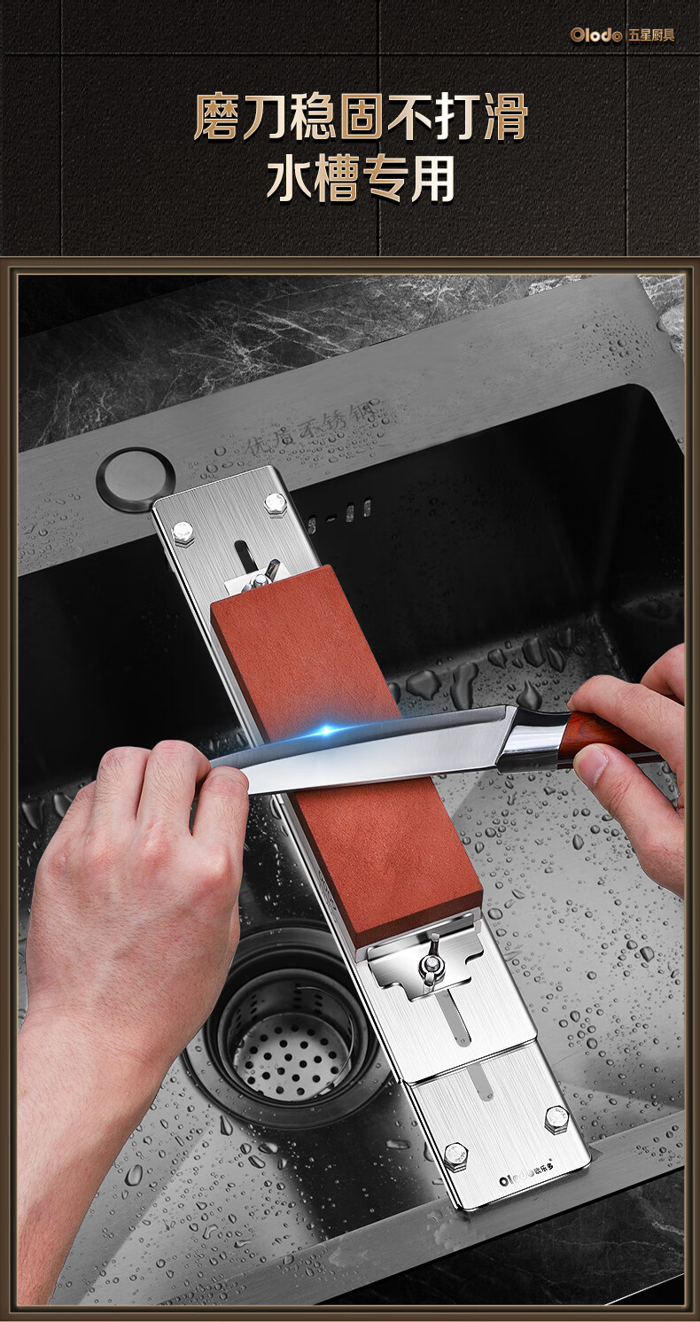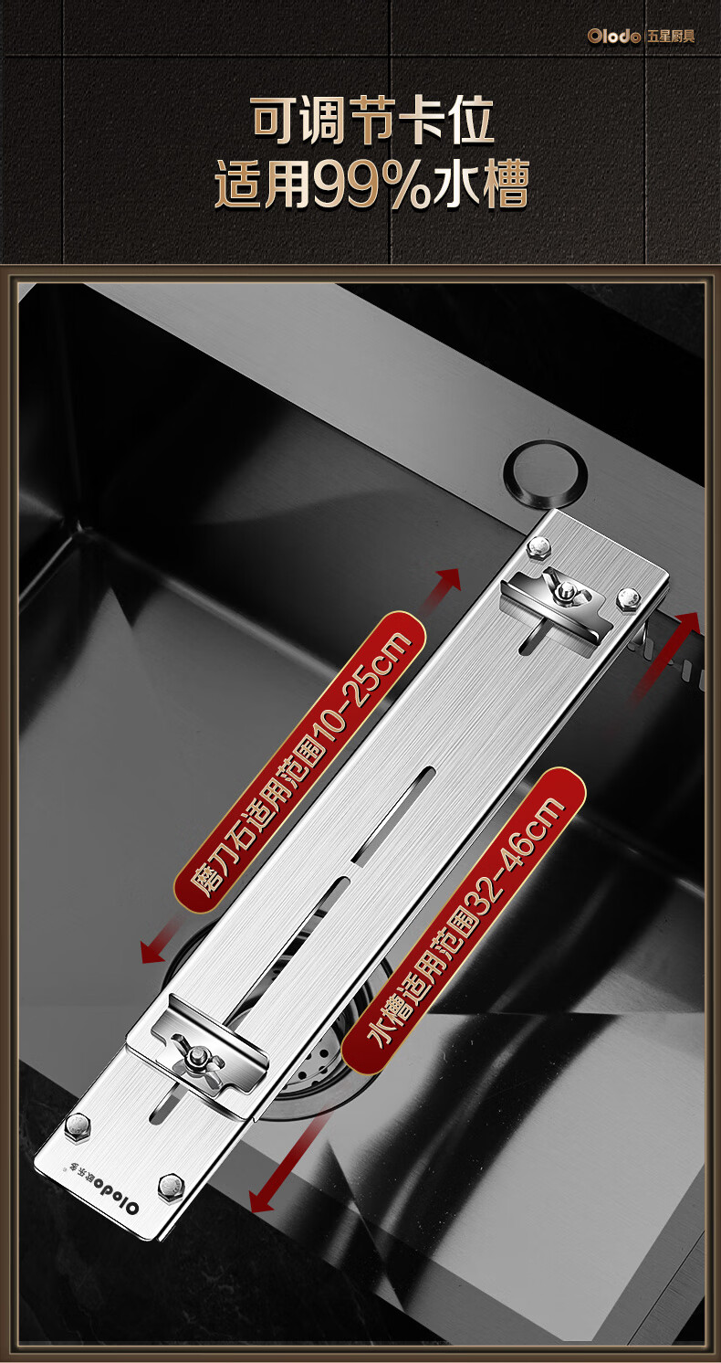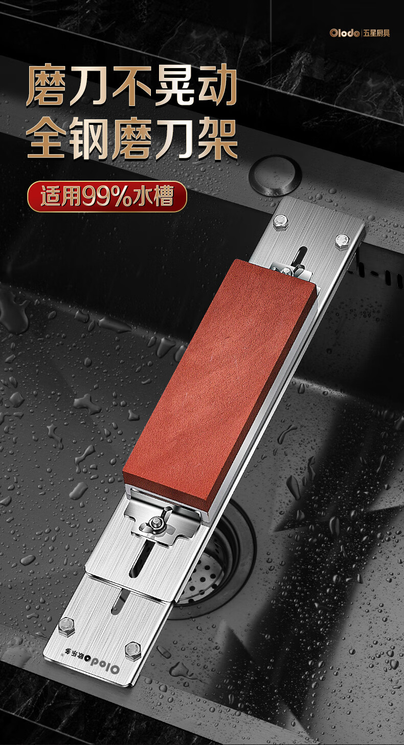 Olodo German 304 stainless steel whetstone holder sink adjustment whetstone anti-slip grinding holder sharpening tool all-steel retractable whetstone + white jade steel whetstone