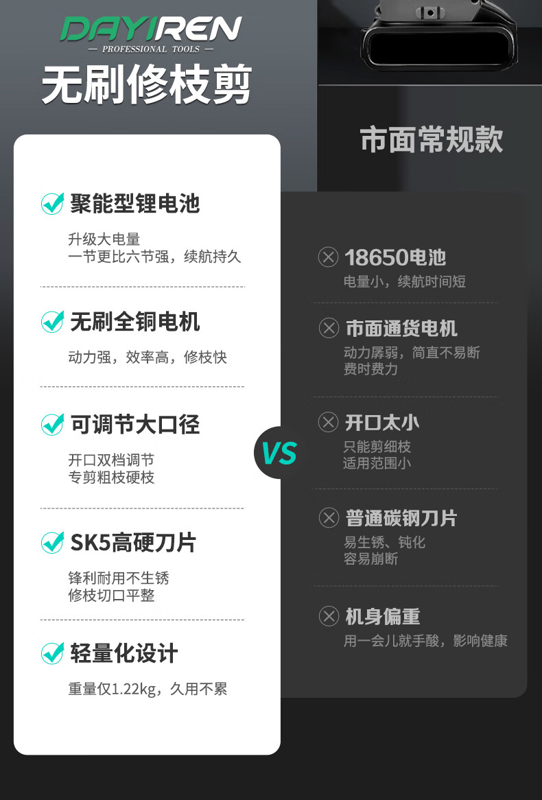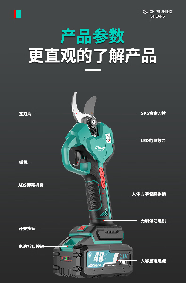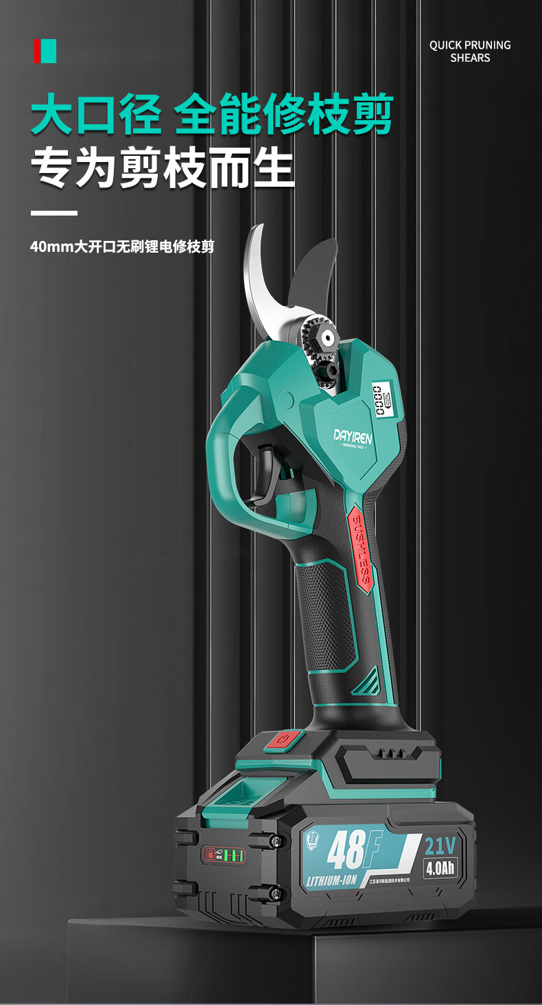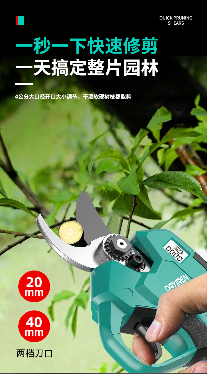 DAYIREN electric scissors, fruit tree pruning shears, rechargeable pruning shears, lithium battery gardening shears, pruning shears adapted to Dayi battery, pruning shears (D21 dual electric version) upgraded version, professional model/40mm