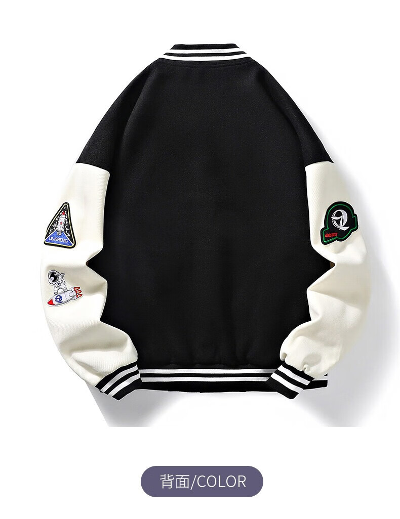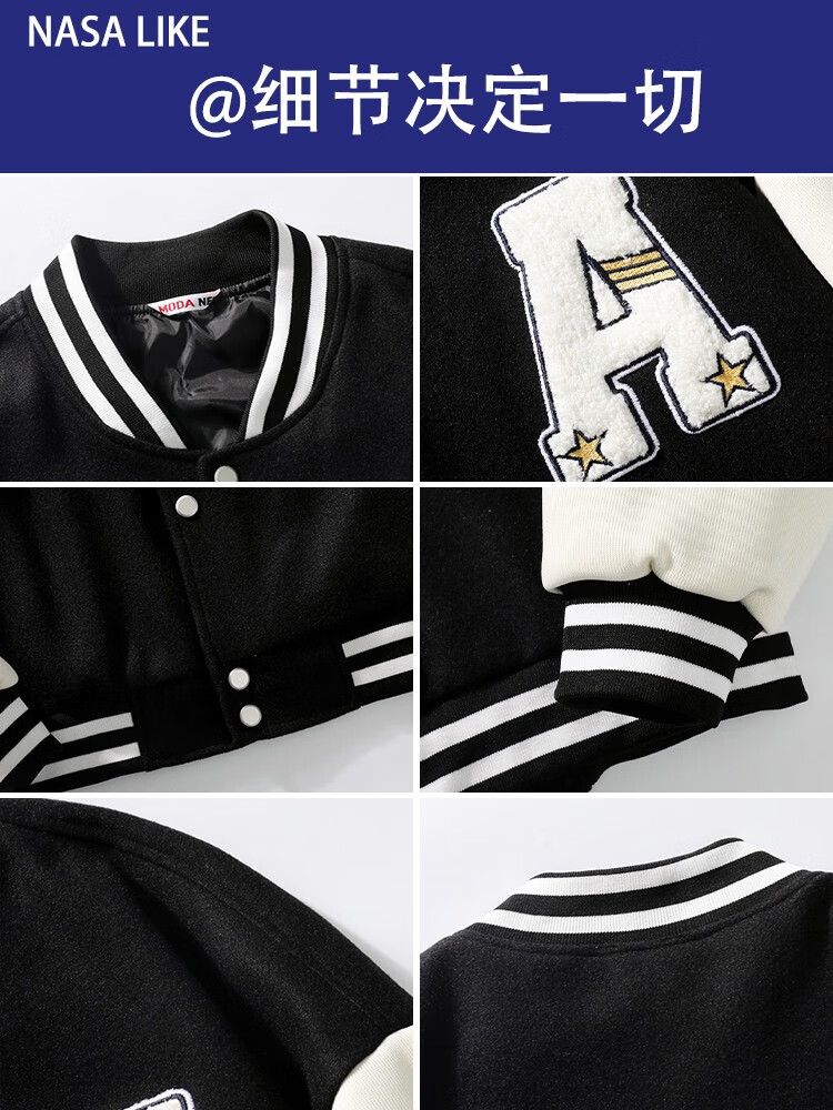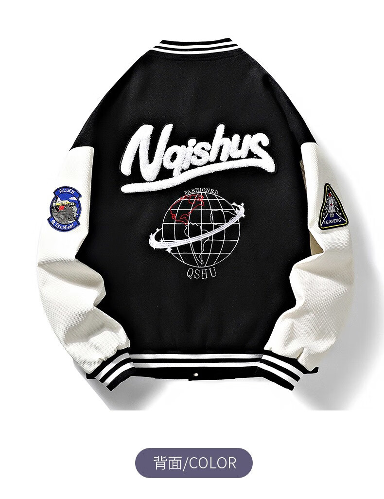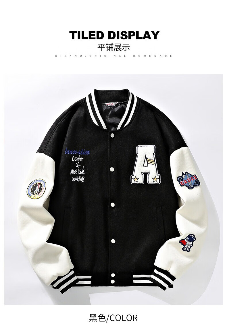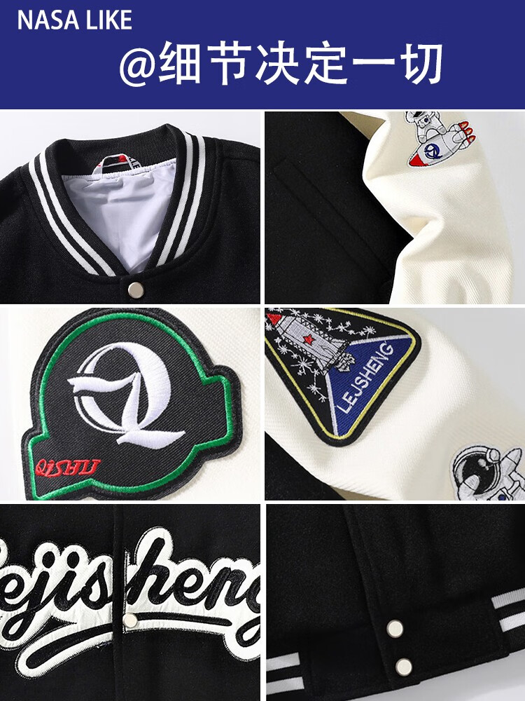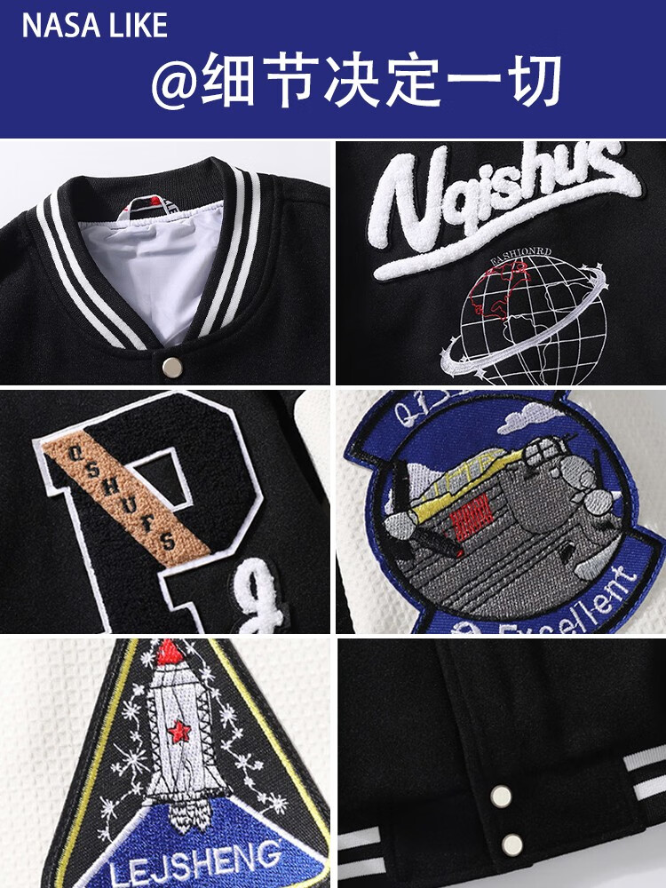 NASALIKE official jacket autumn and winter American towel embroidered baseball uniforms for men and women couples contrasting color stitching pilot men's jacket black XL (recommended 120-130 pounds)