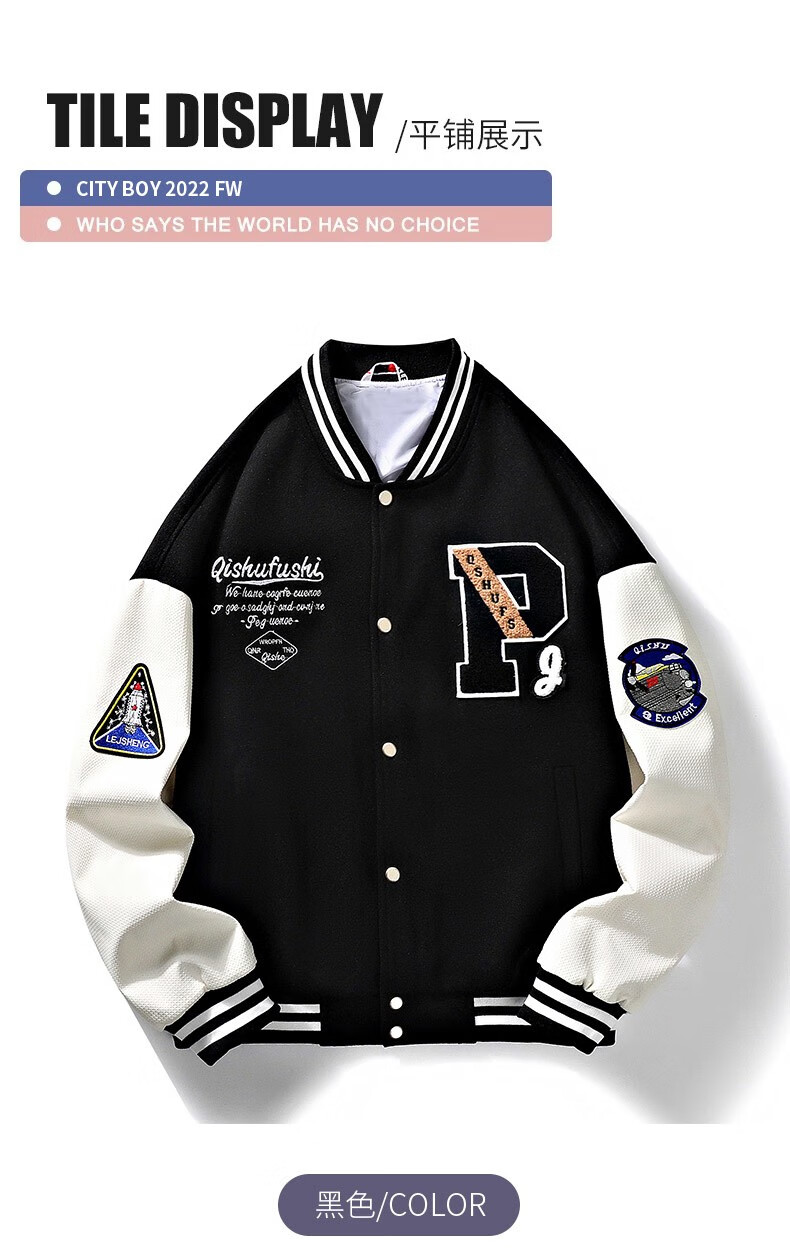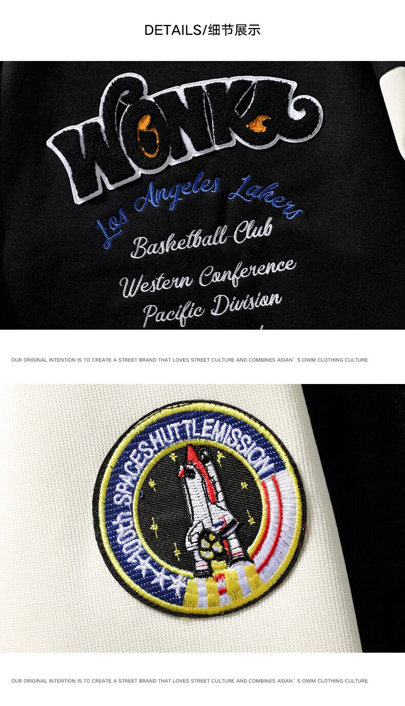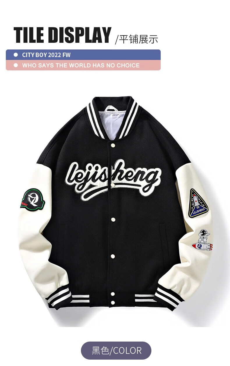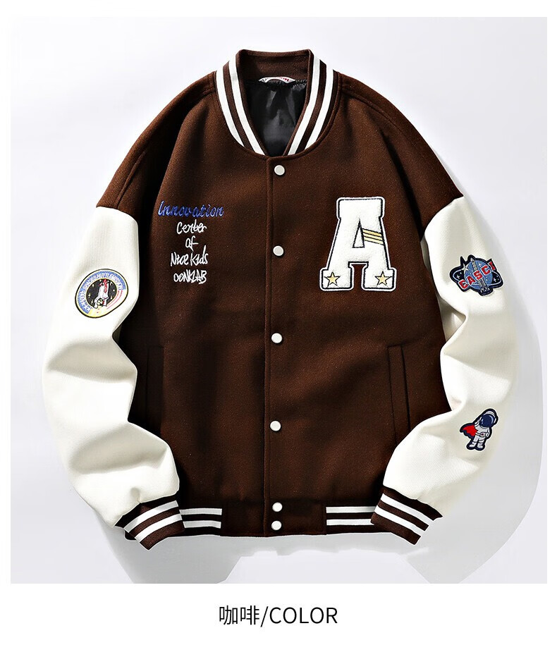 NASALIKE official jacket autumn and winter American towel embroidered baseball uniforms for men and women couples contrasting color stitching pilot men's jacket black XL (recommended 120-130 pounds)