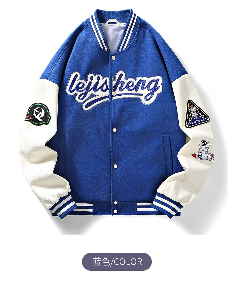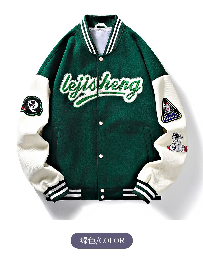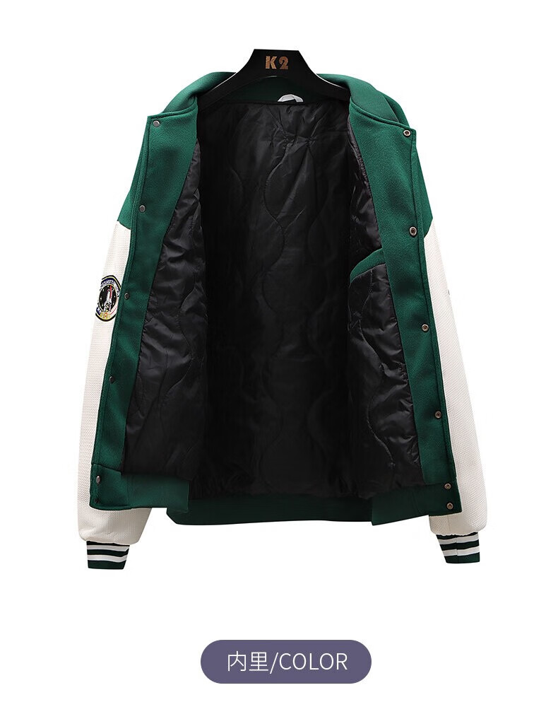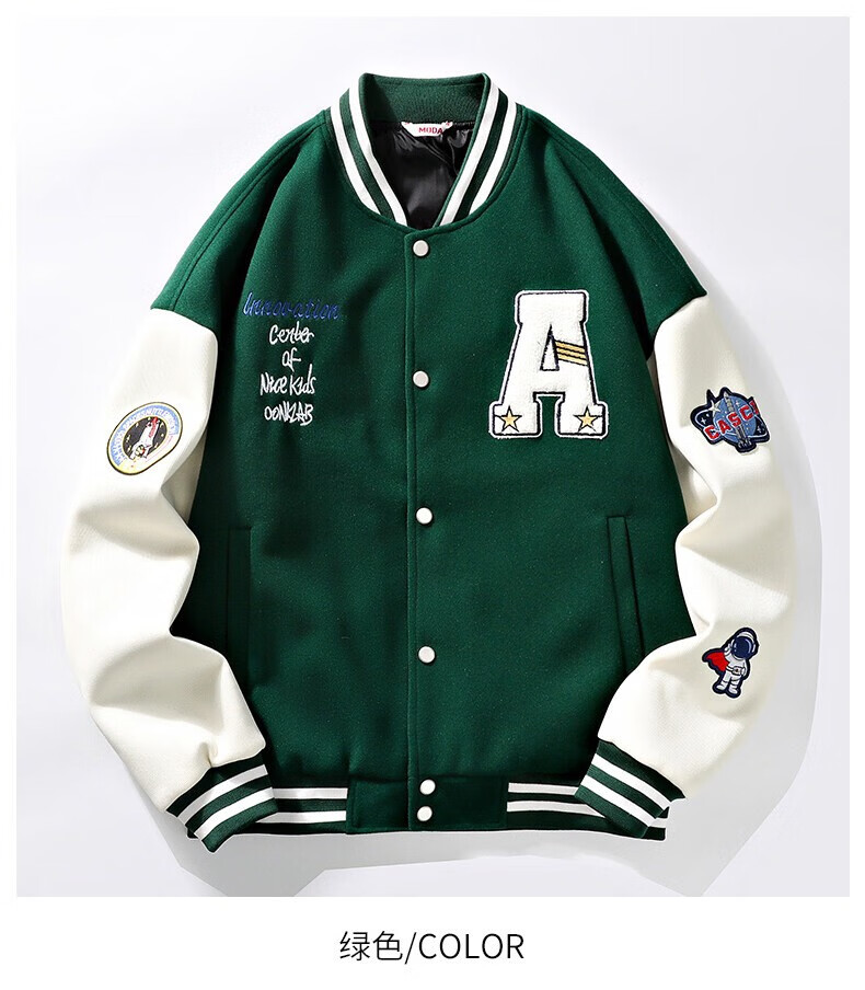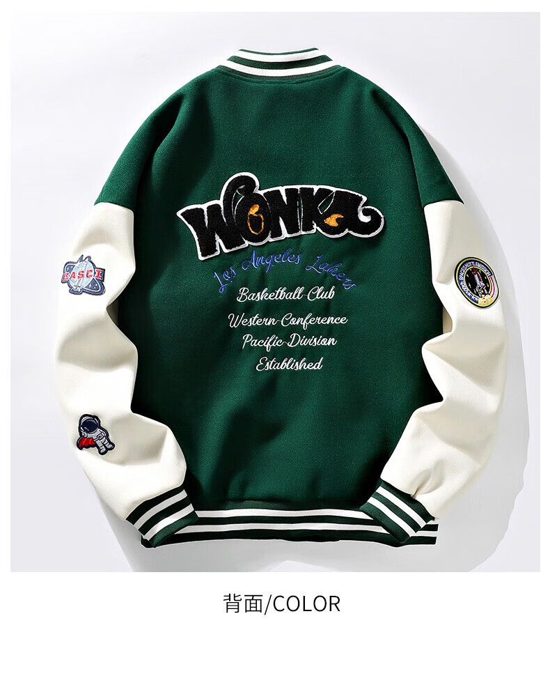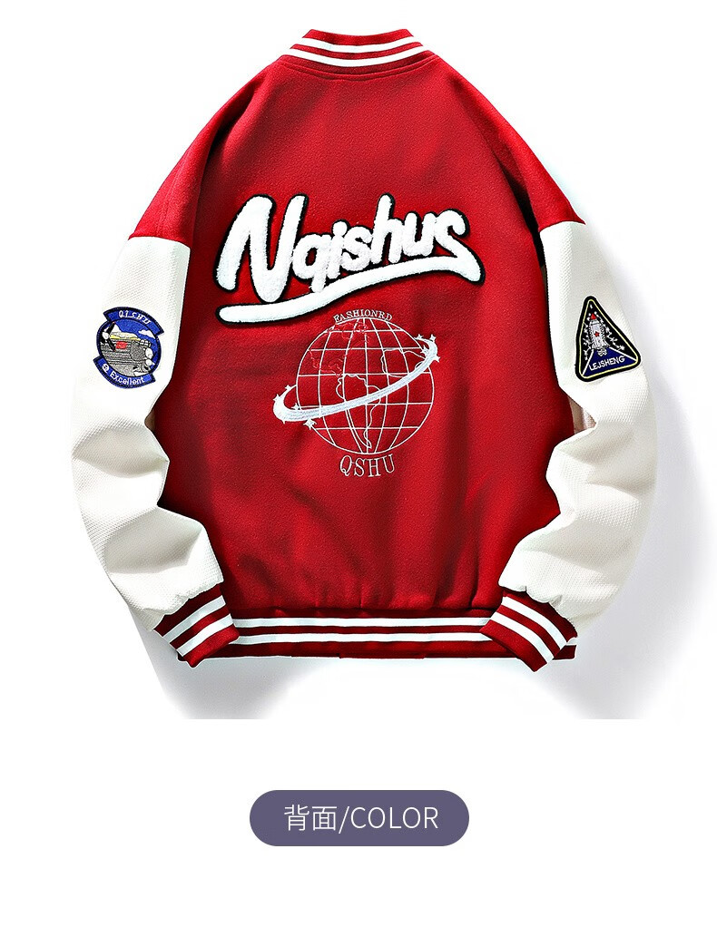 NASALIKE official jacket autumn and winter American towel embroidered baseball uniforms for men and women couples contrasting color stitching pilot men's jacket black XL (recommended 120-130 pounds)