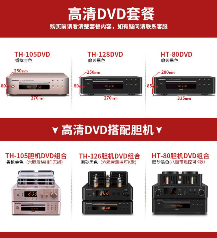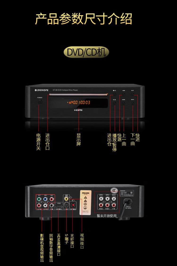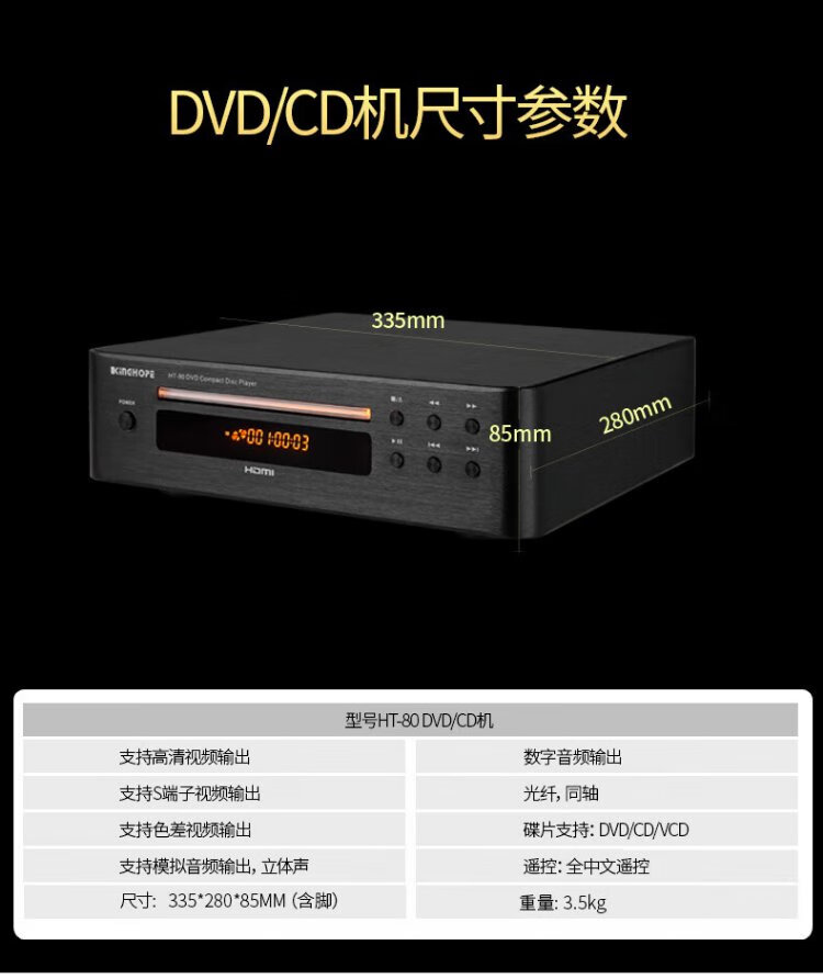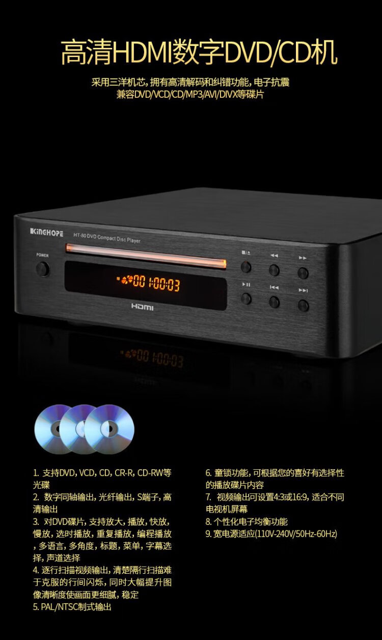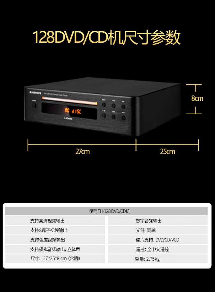 KINGHOPE Jun Hao Zhi Yin TH-128 high-definition DVD/CD player HDMI player home digital audio turntable player HT-80 black CD/DVD player