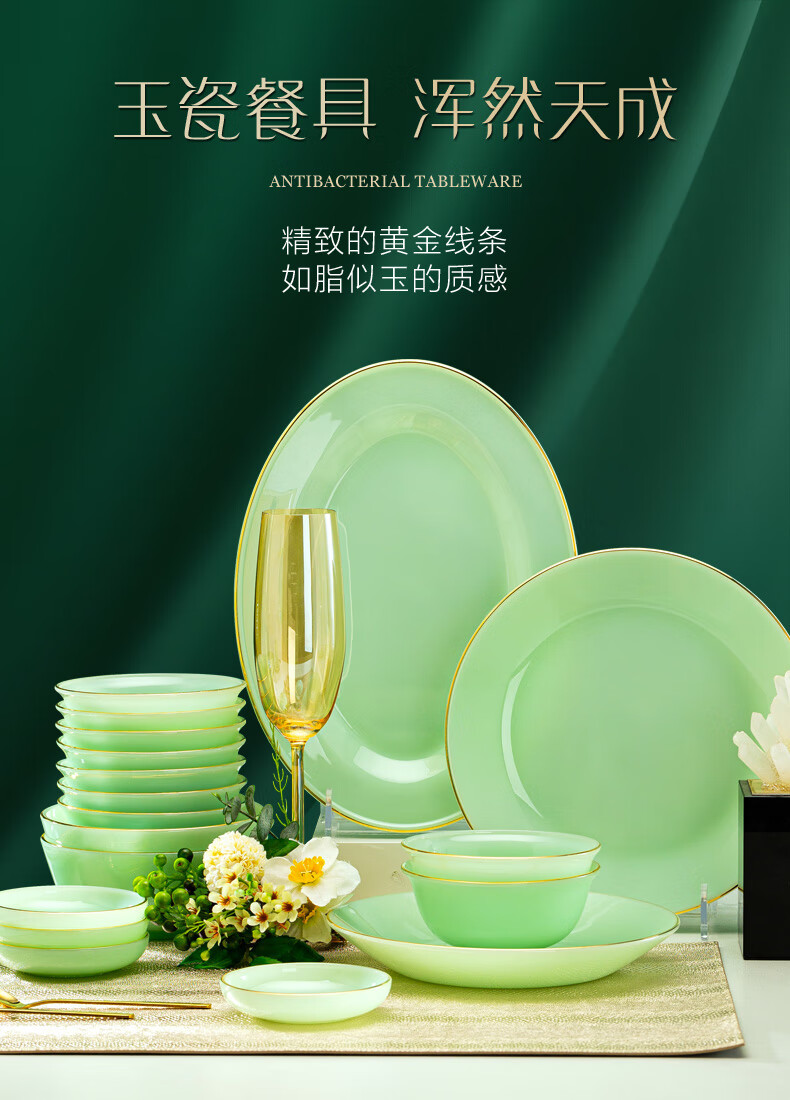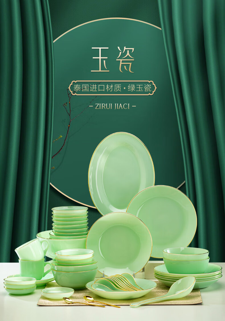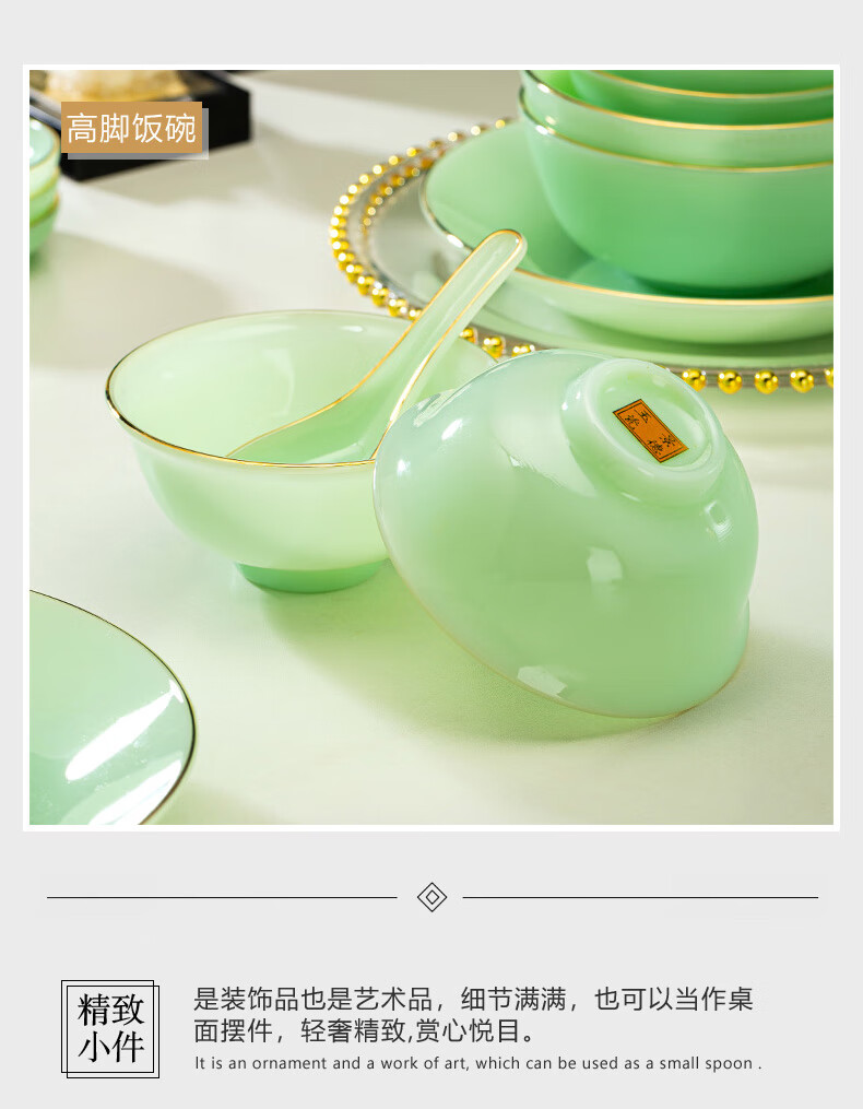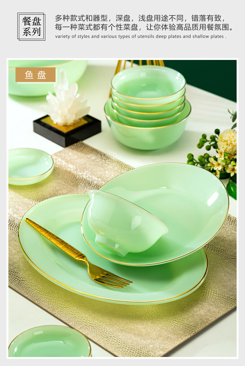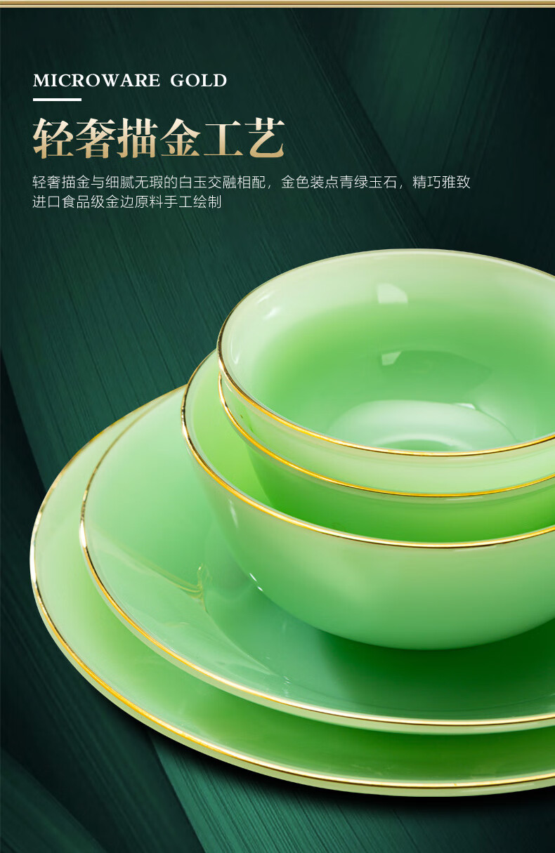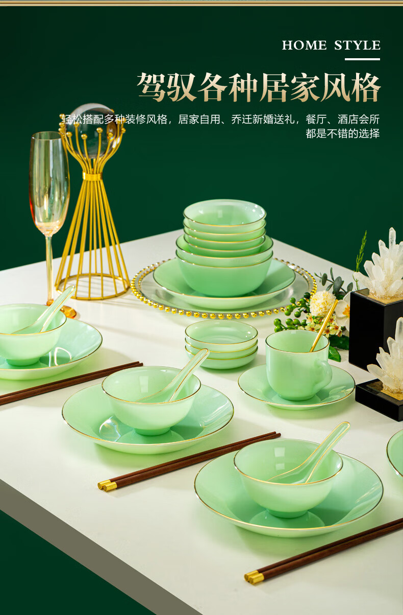 Zi Rui Jingdezhen high-end gold edge tableware and dishes set jade porcelain housewarming wedding gift box for home use 39 green jade porcelain color box