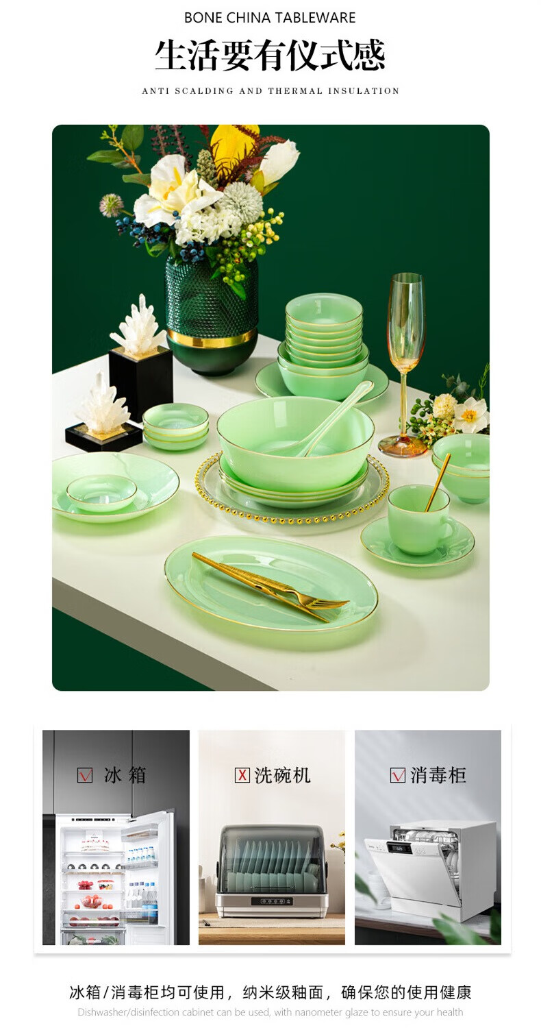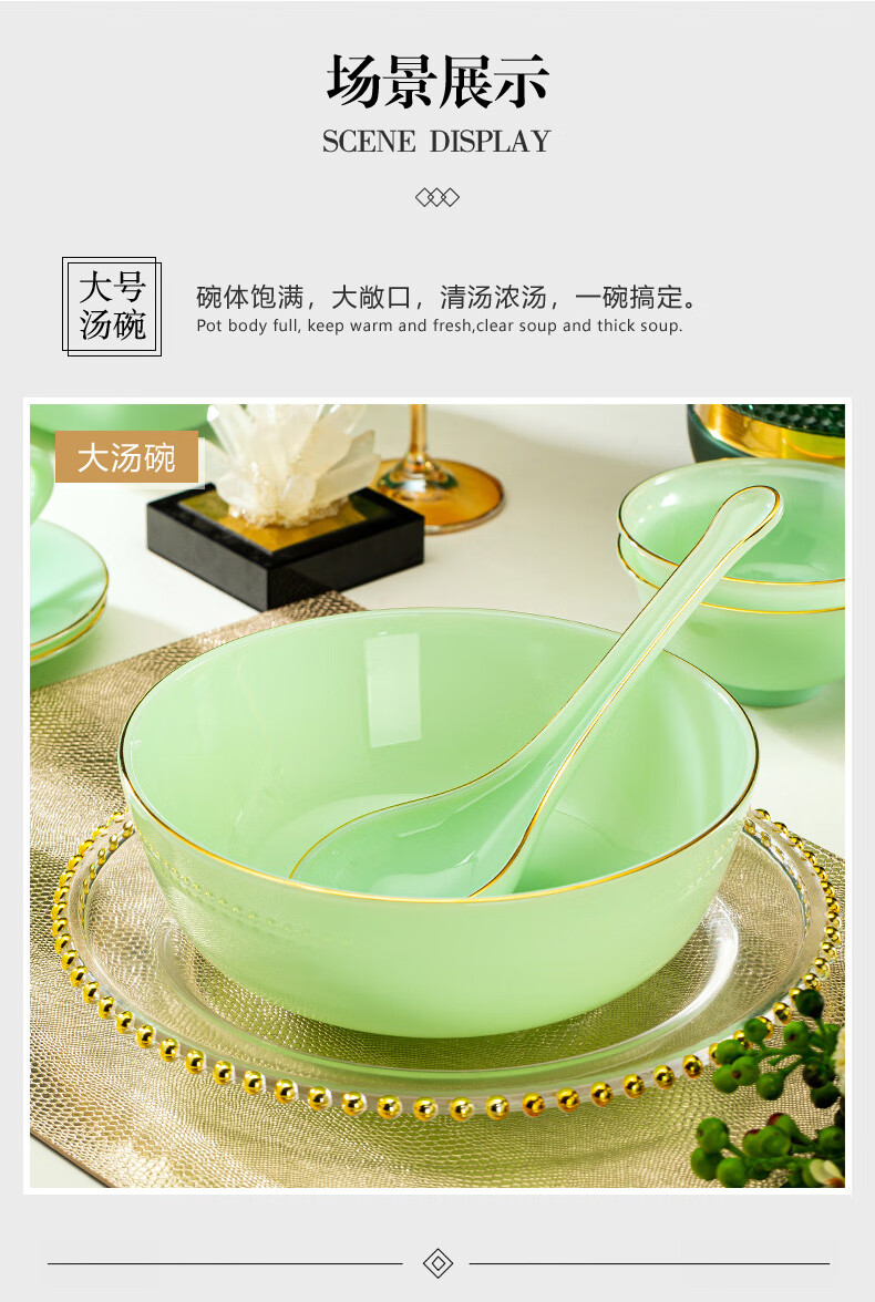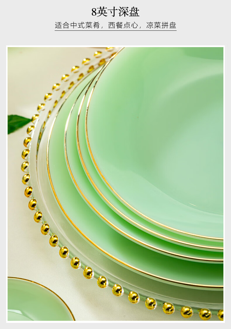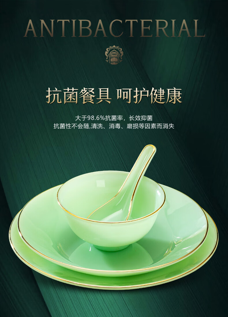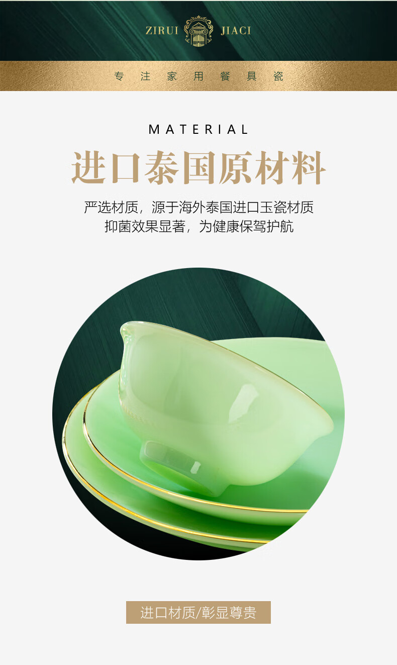 Zi Rui Jingdezhen high-end gold edge tableware and dishes set jade porcelain housewarming wedding gift box for home use 39 green jade porcelain color box