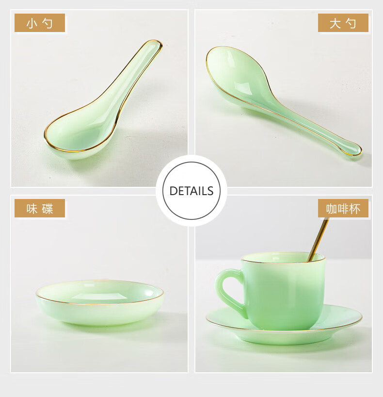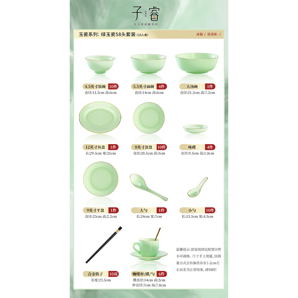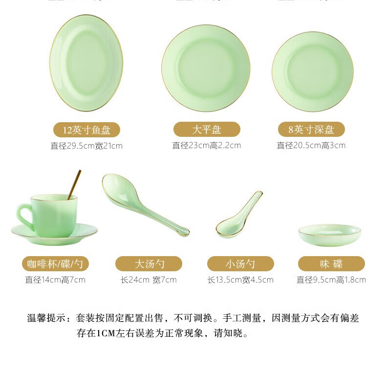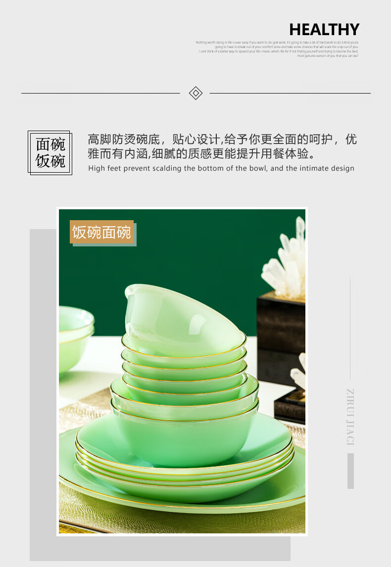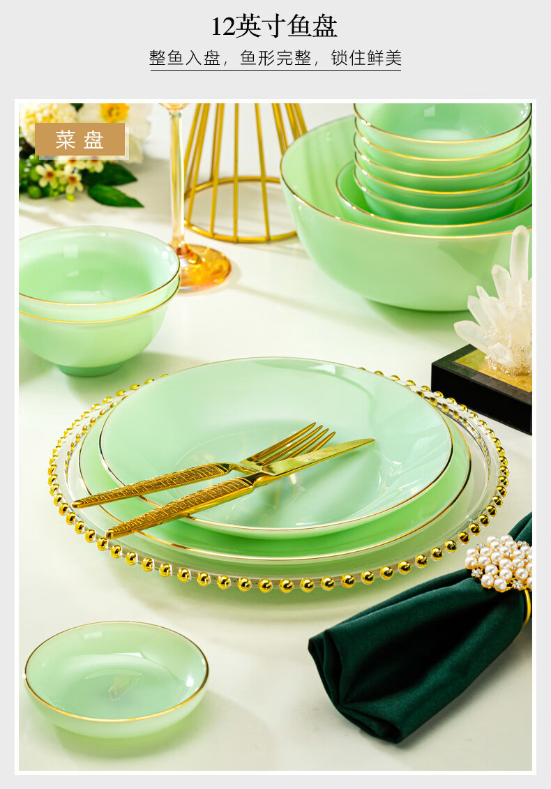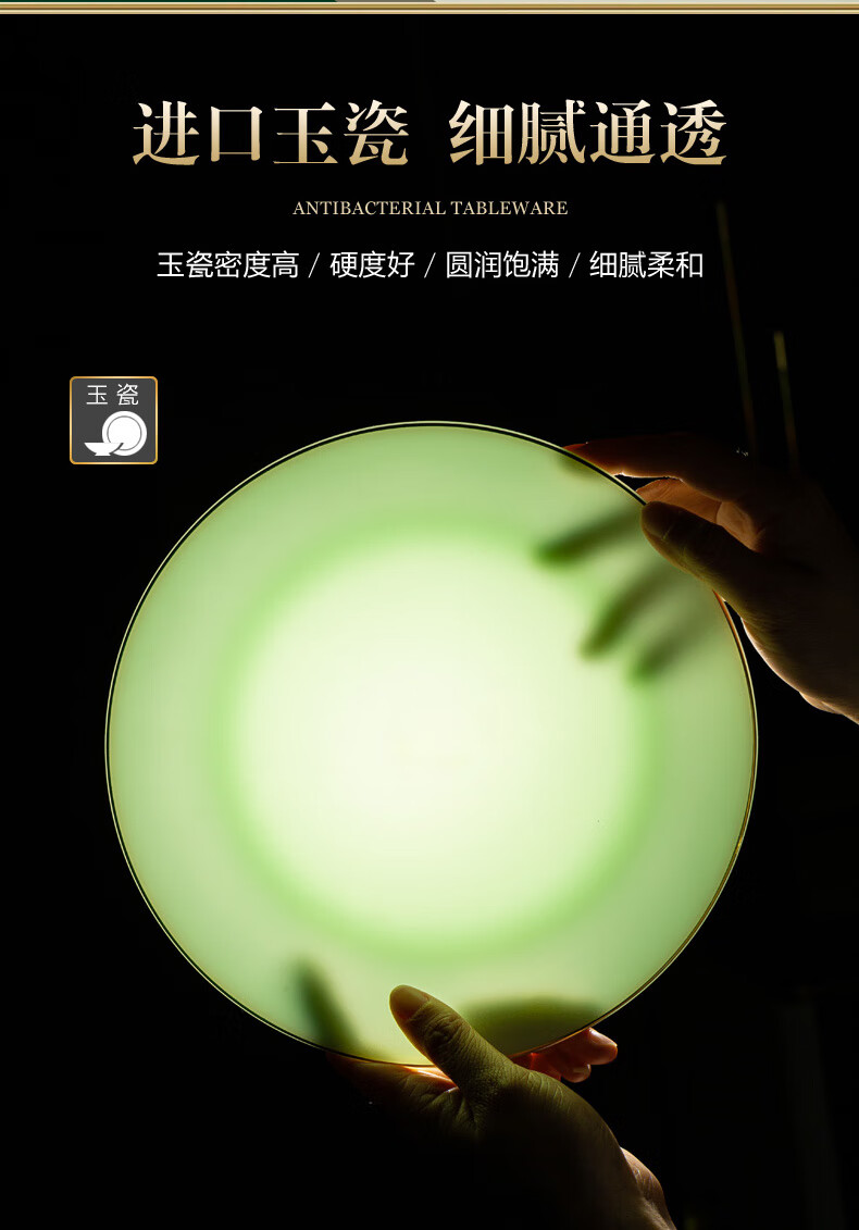 Zi Rui Jingdezhen high-end gold edge tableware and dishes set jade porcelain housewarming wedding gift box for home use 39 green jade porcelain color box