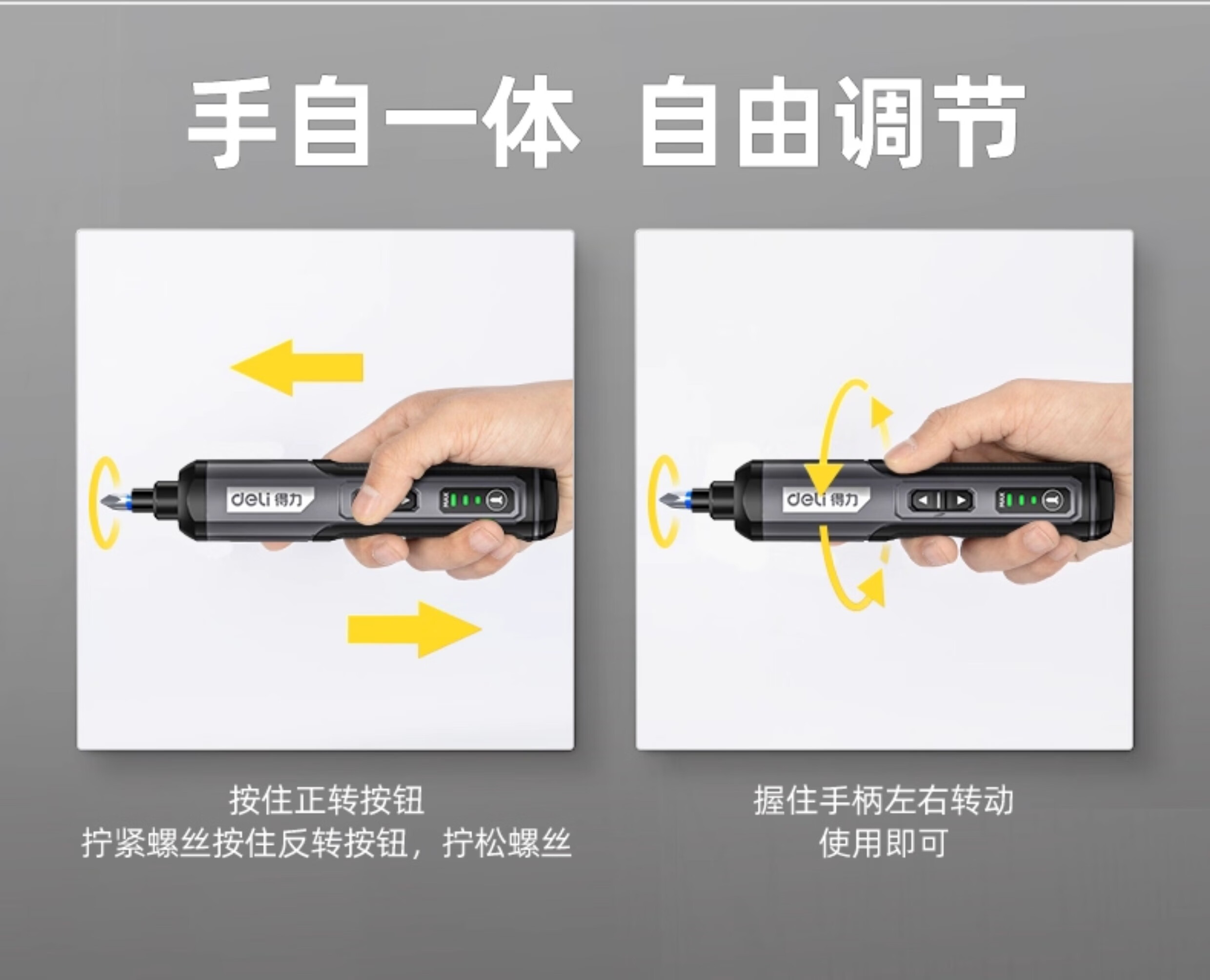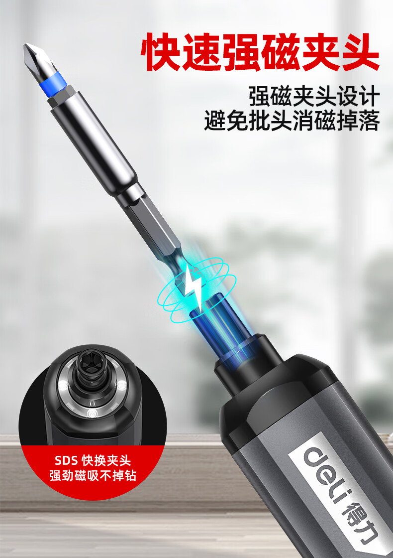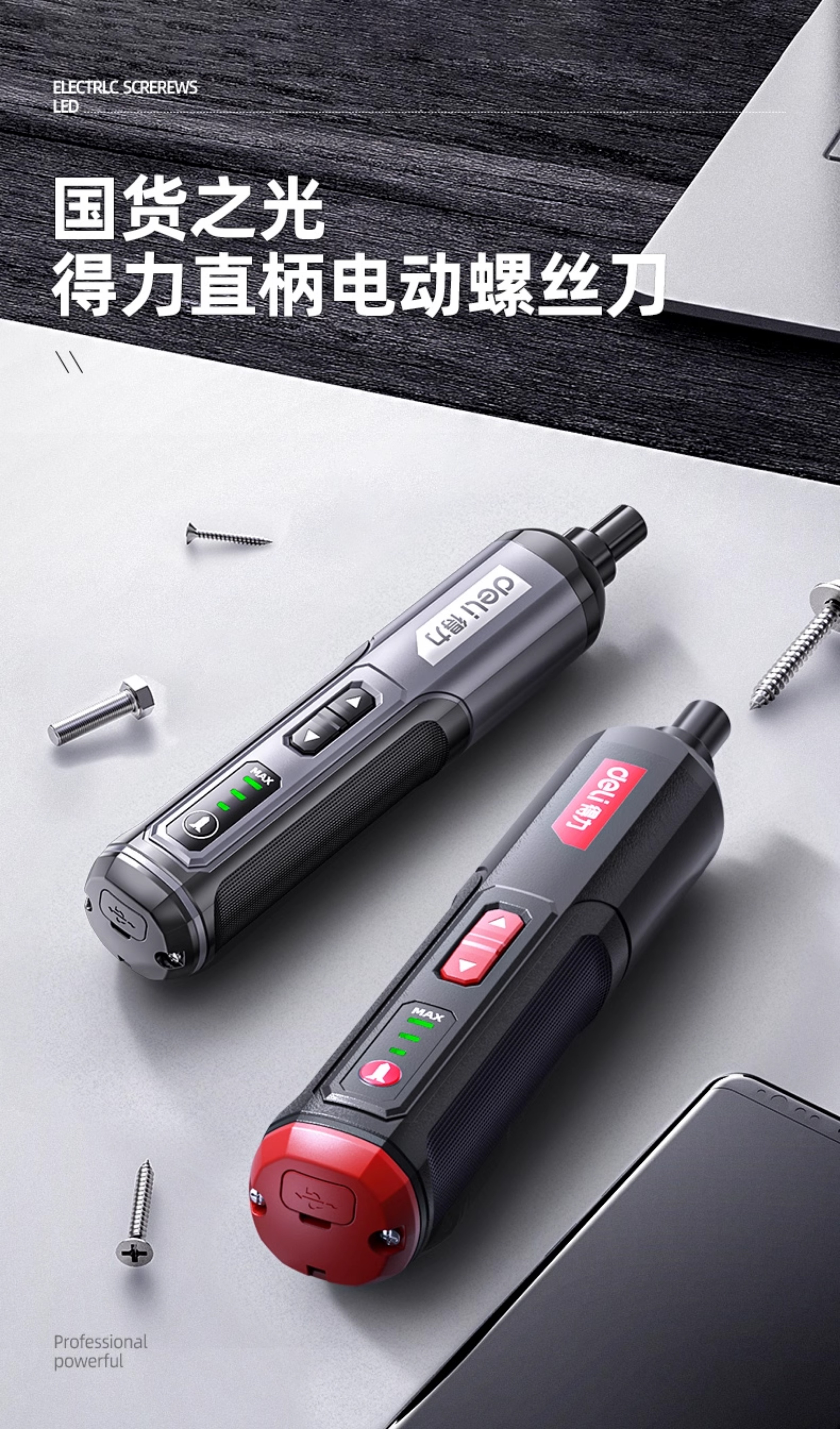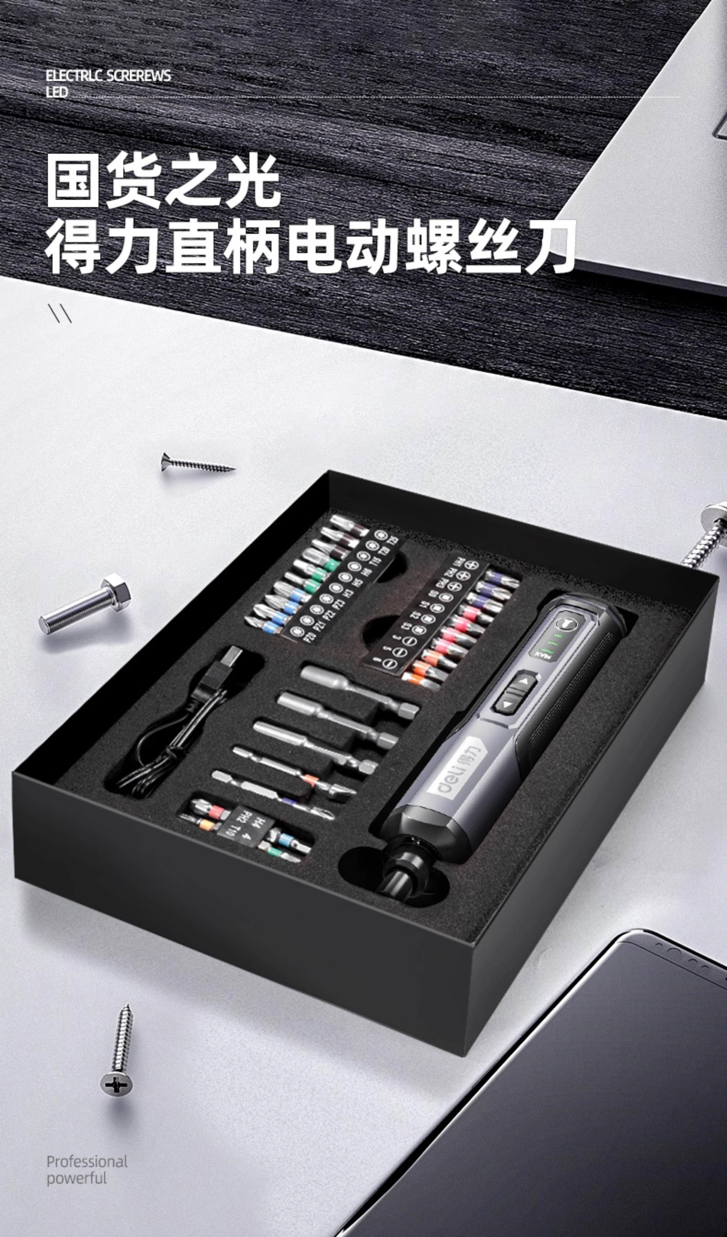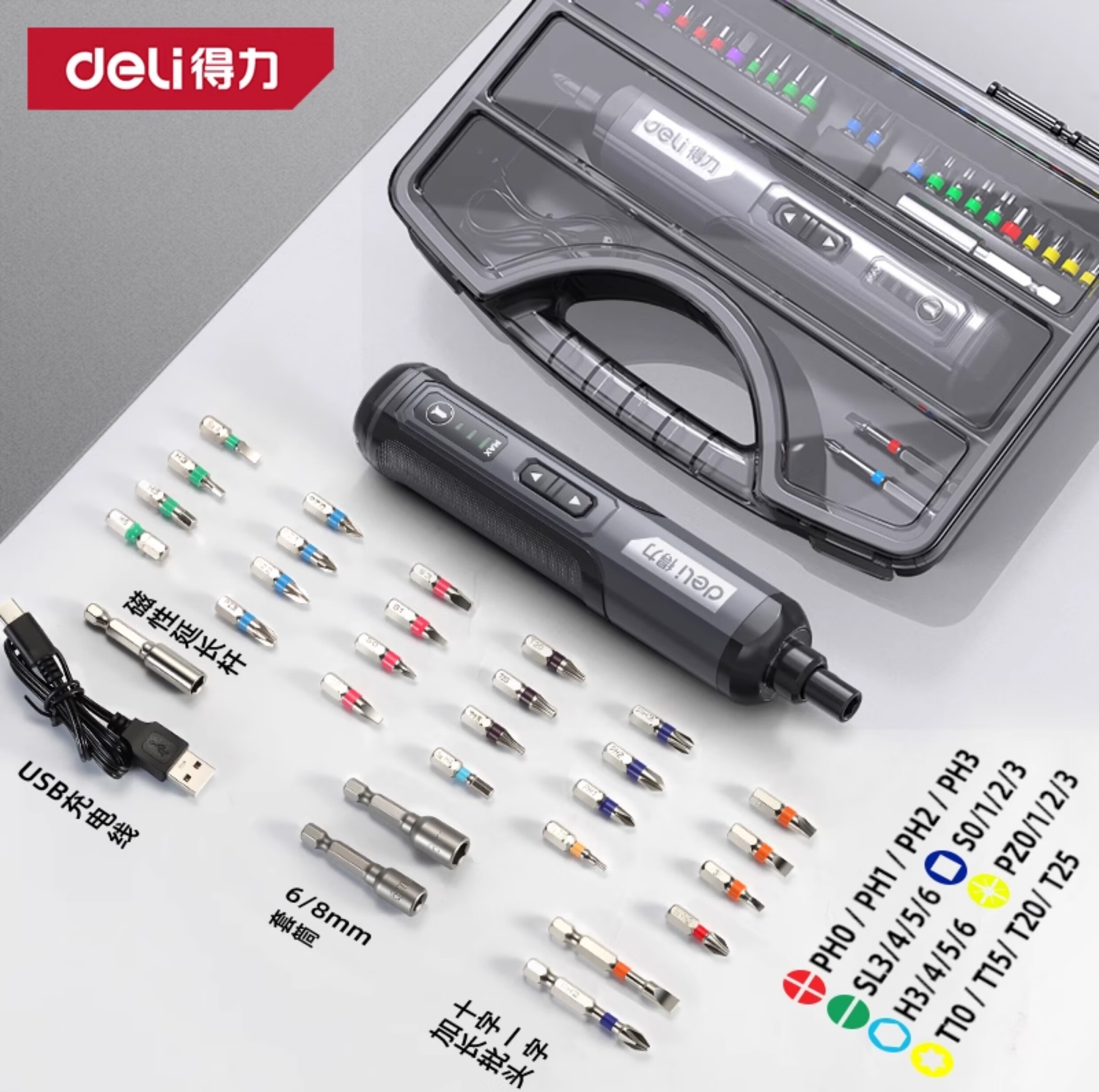 Deli electric screwdriver, household electric drill, mini rechargeable electric screwdriver, multifunctional lithium battery screwdriver set, blazing red, 3-speed adjustment/storage box, 19 pieces of bits + drill bits + flexible shaft + magnetizer
