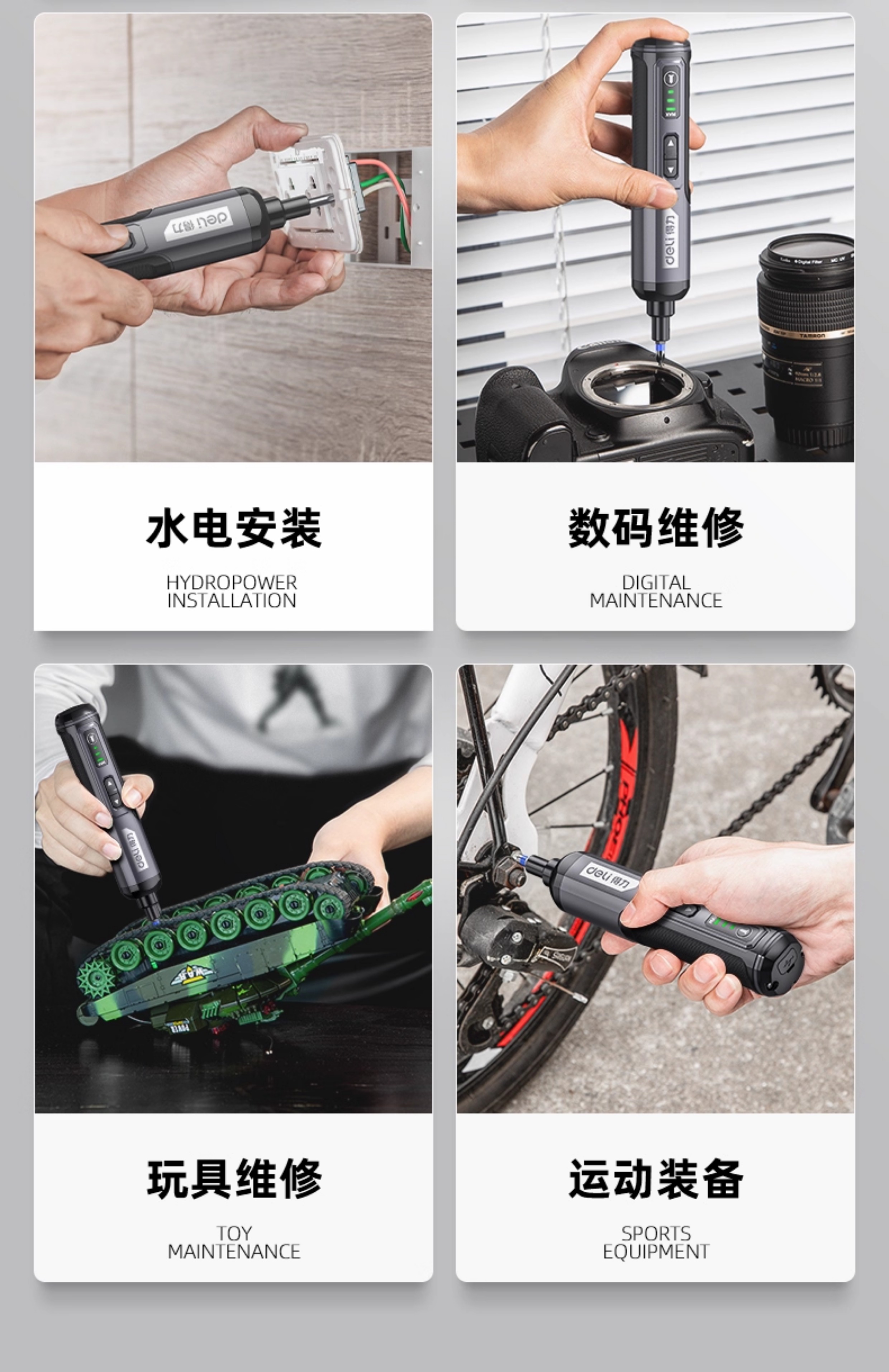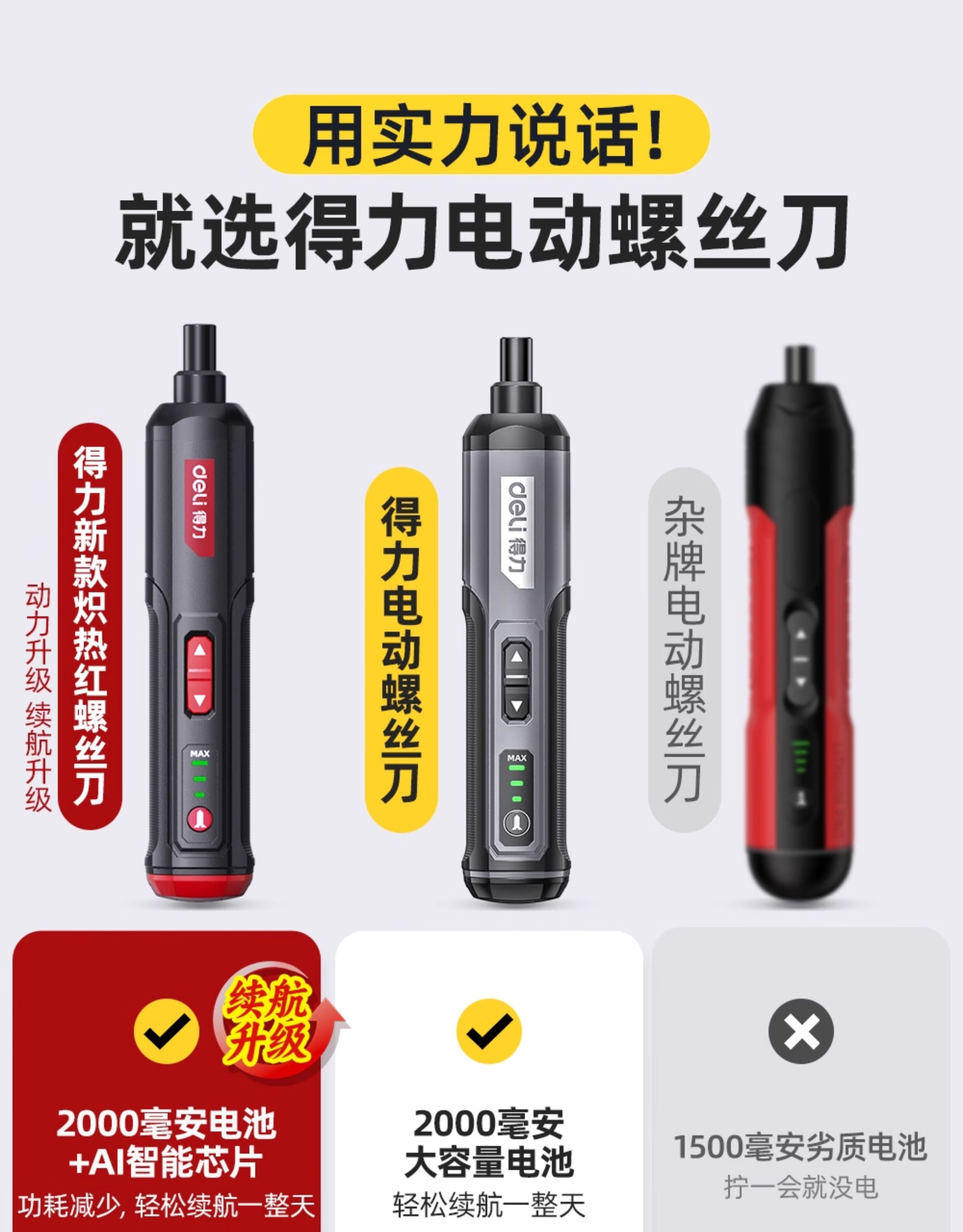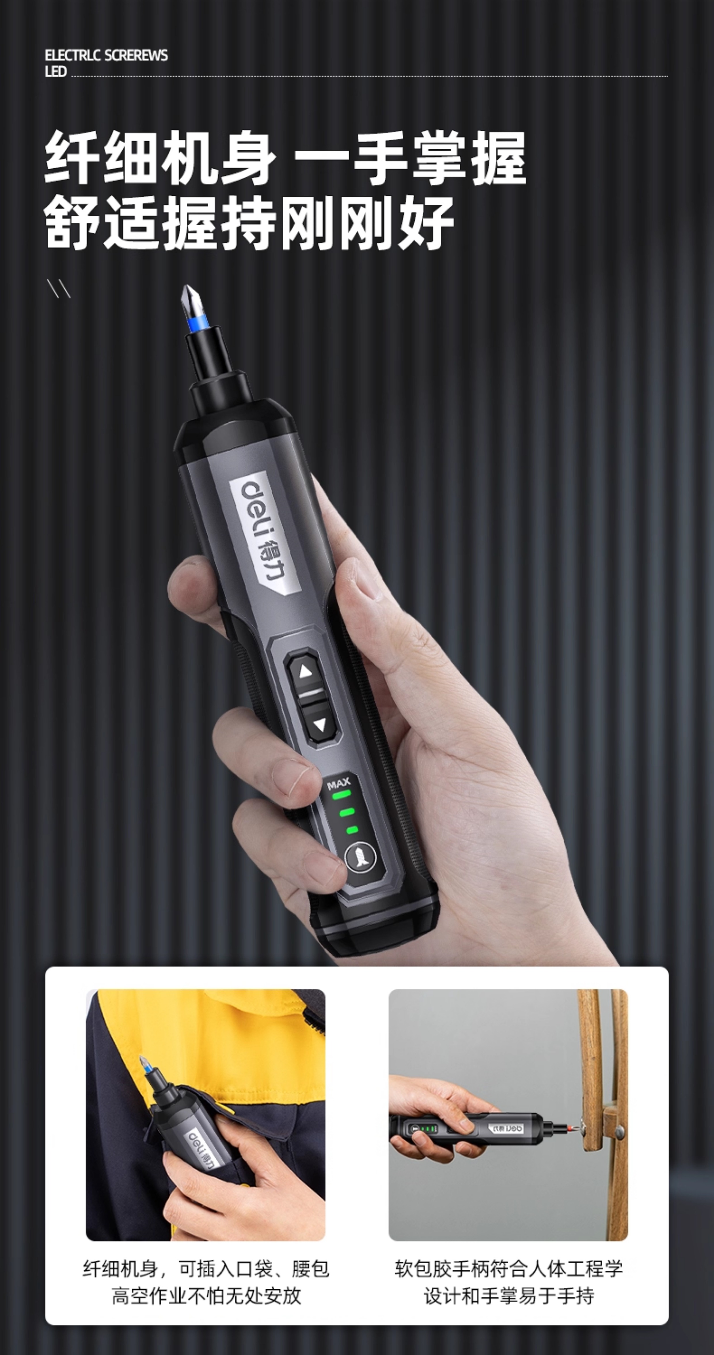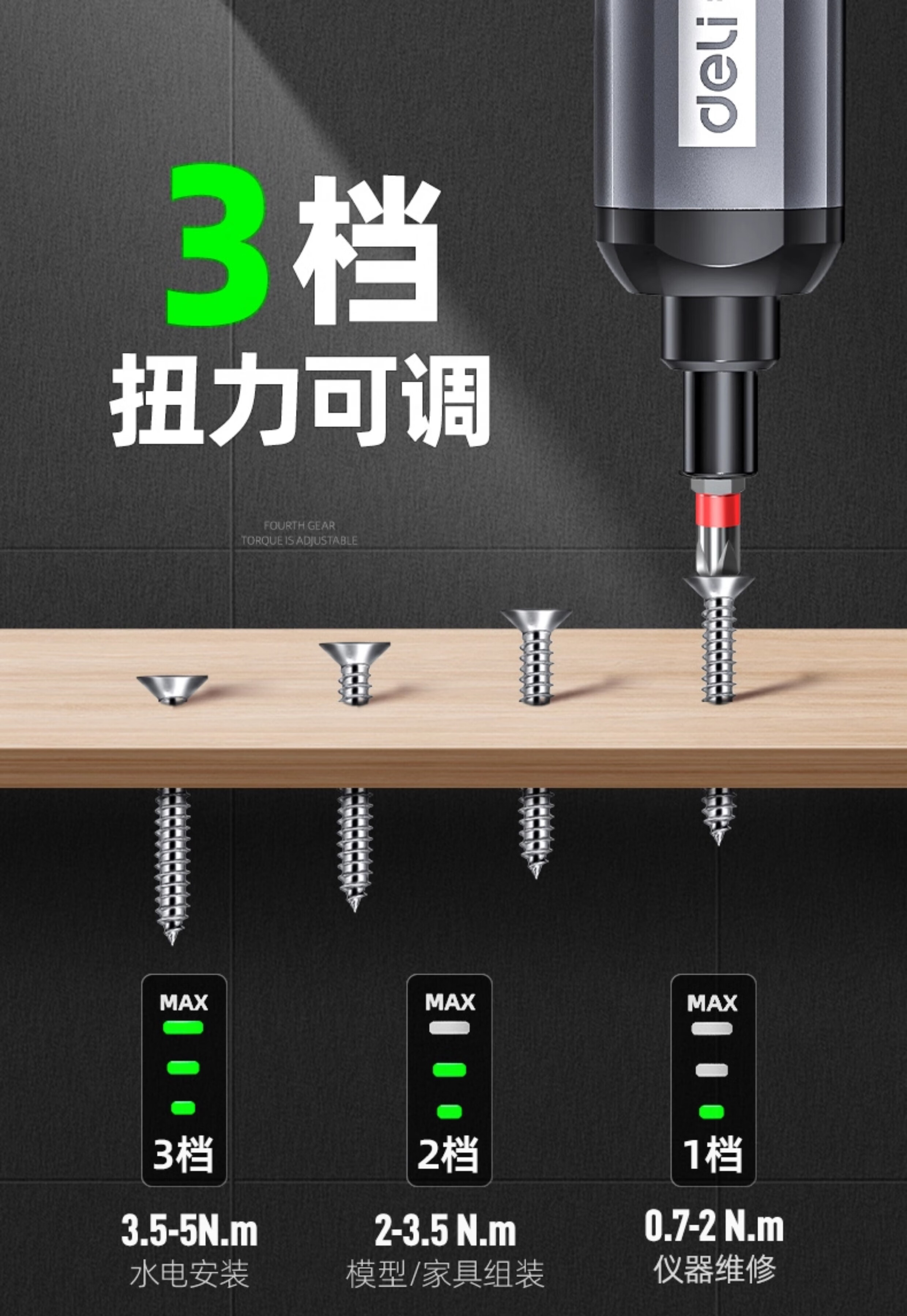Deli electric screwdriver, household electric drill, mini rechargeable electric screwdriver, multifunctional lithium battery screwdriver set, blazing red, 3-speed adjustment/storage box, 19 pieces of bits + drill bits + flexible shaft + magnetizer