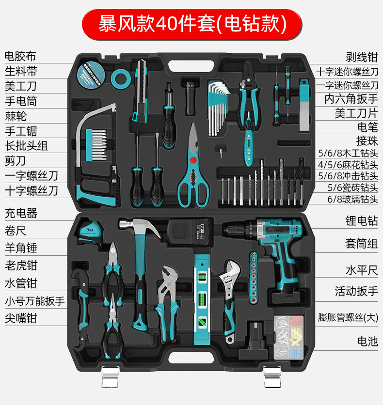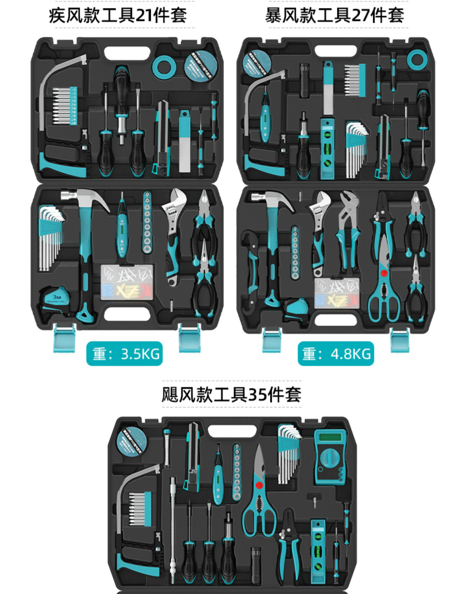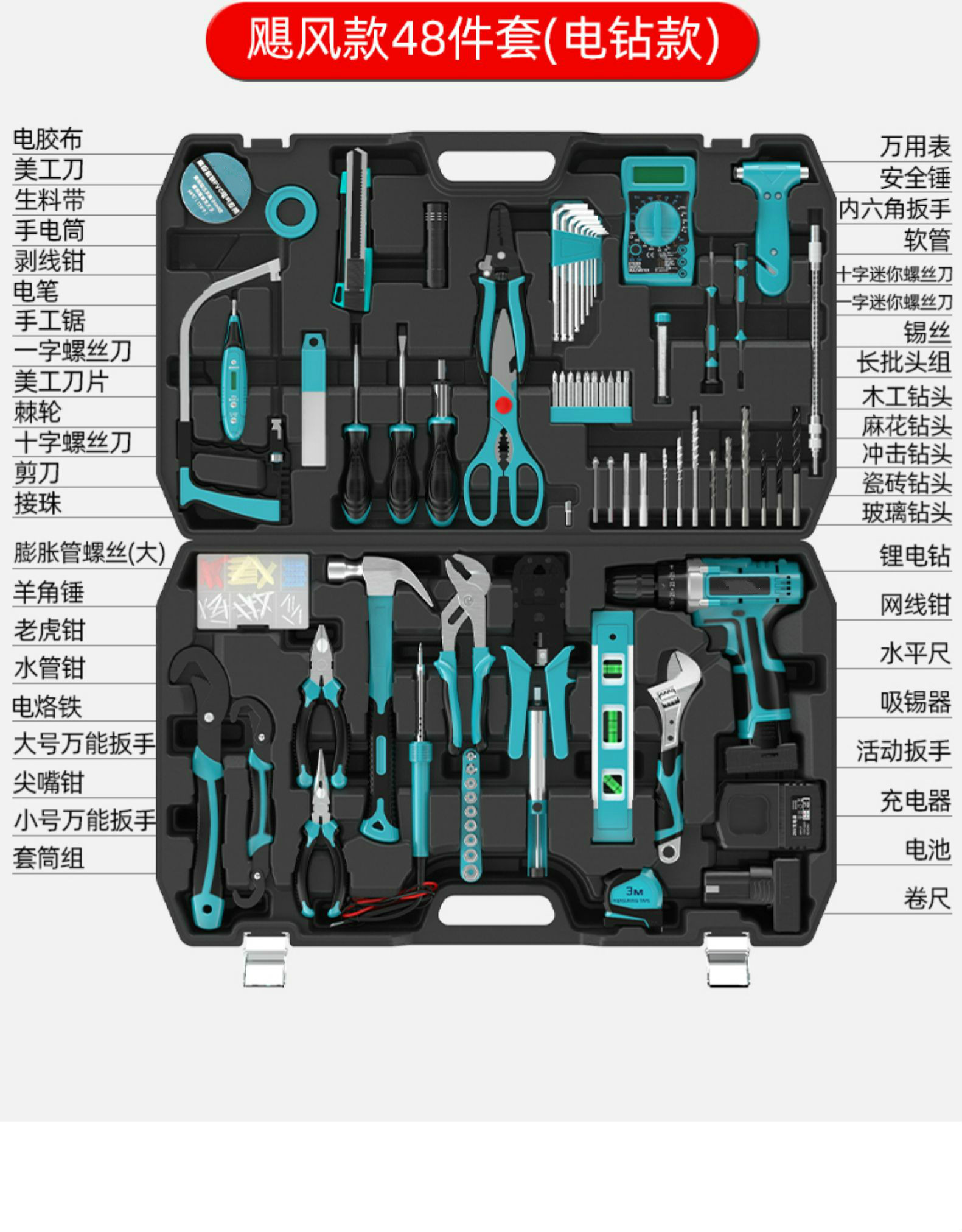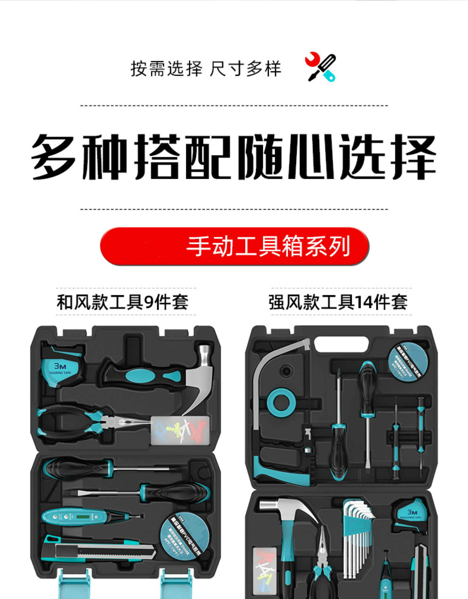 Junmo household vehicle tool combination set hardware electrician repair tool box complete set 9-piece hand tool set