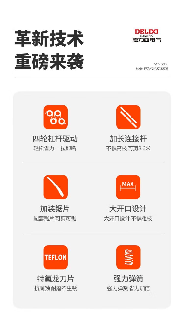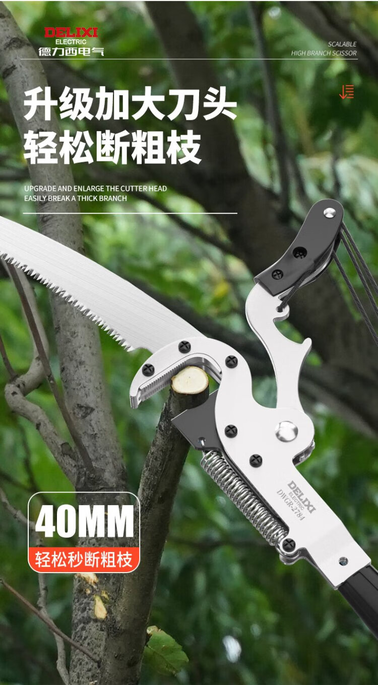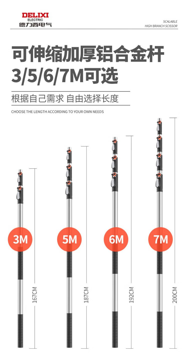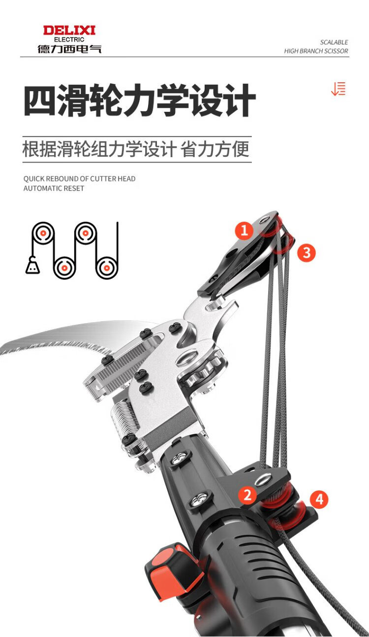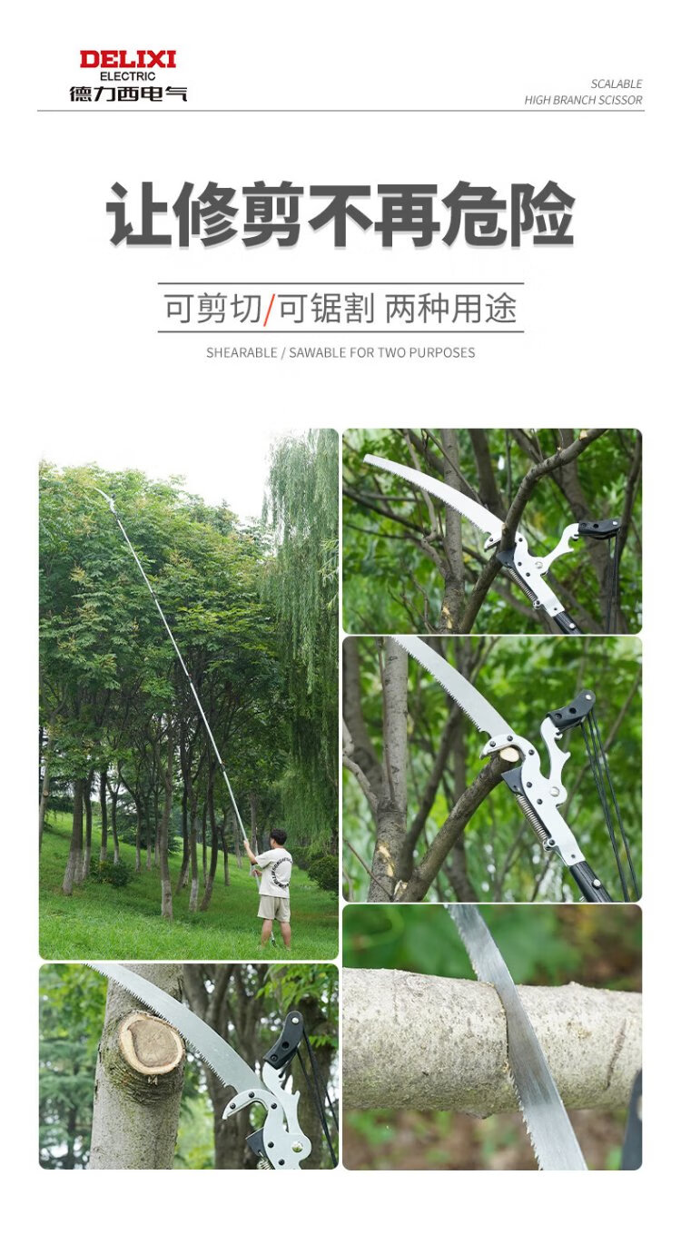 Delixi high-altitude pruning shears telescopic pruning shears long pole tree sawing manual agricultural tools high-branch shears (guillotine head) + pruning package 1.6-5 meters