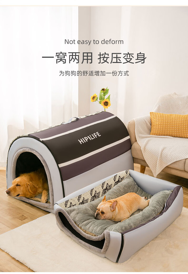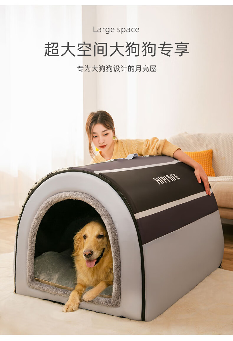 Hippie dog kennel, warm closed cat kennel, small, medium and large dog kennel, removable and washable dog house in winter, Teddy can be used for all seasons, Nordic style gray, extra large size XXL (recommended weight within 80 pounds)