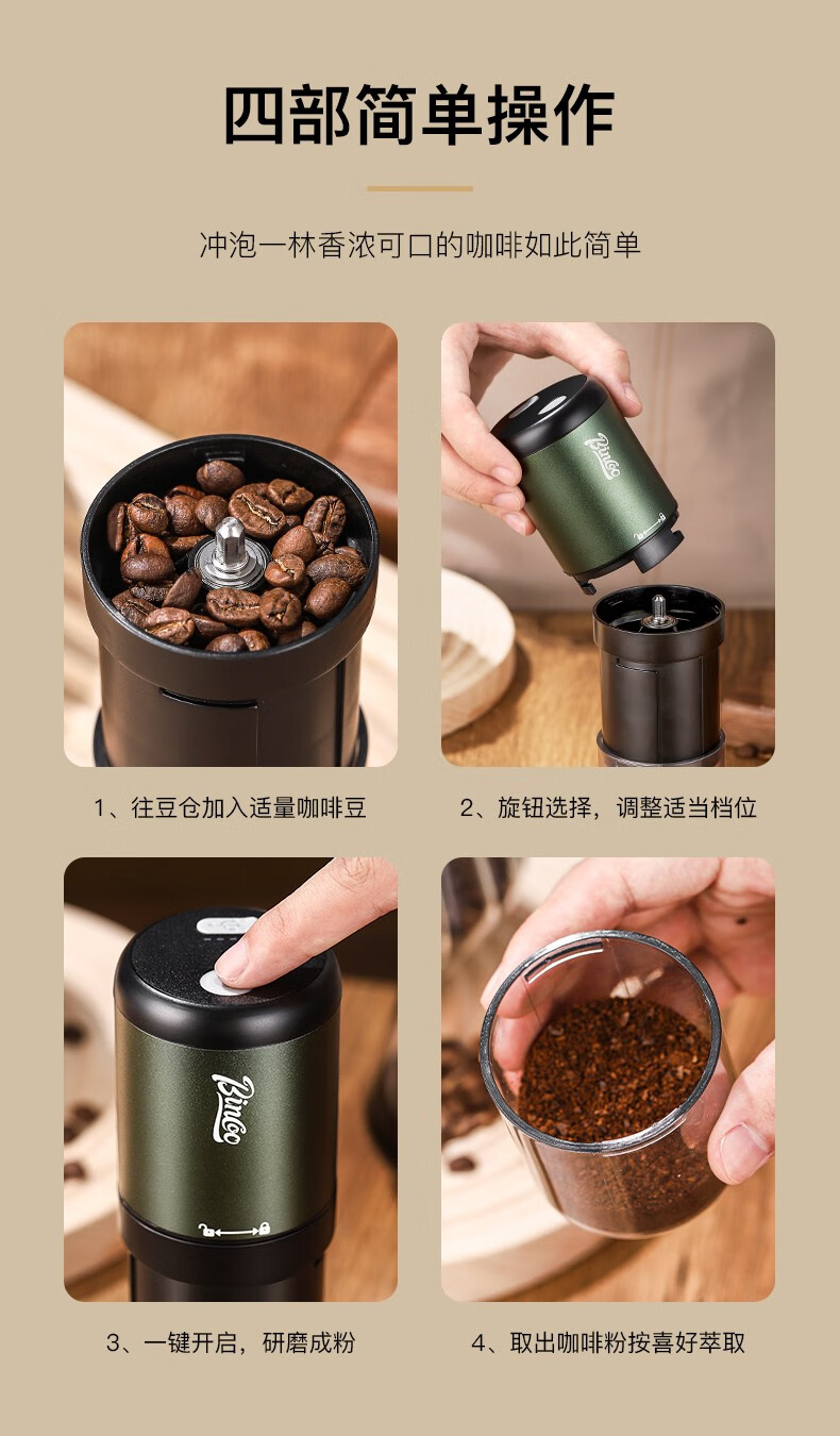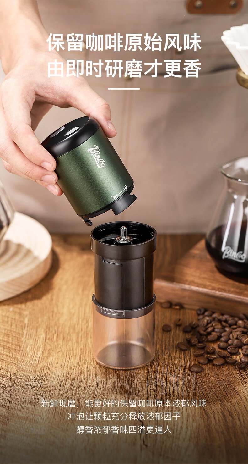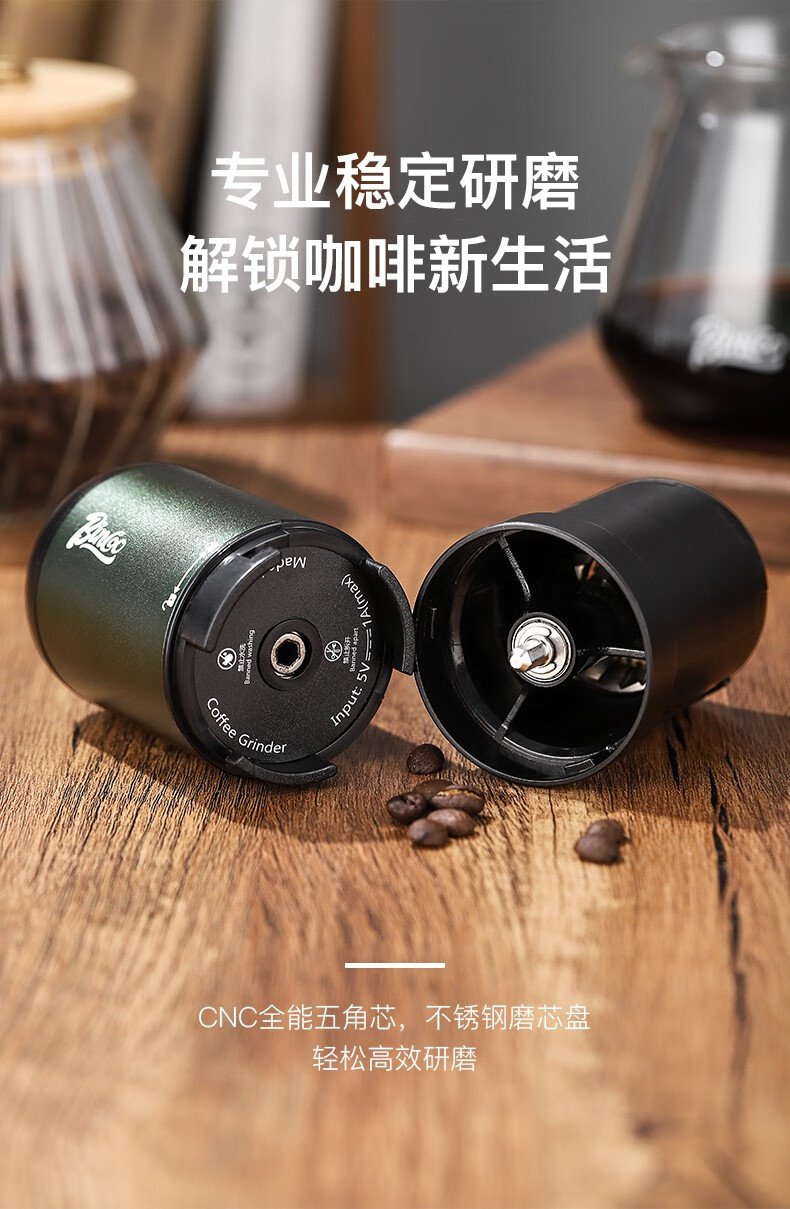 Bincoo Steel Core Electric Bean Grinder Coffee Bean Grinder Portable Automatic Grinder Hand Grinder Coffee Bean Grinder Green CNC420 Steel Core-50 Adjustment