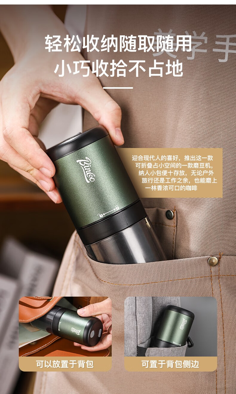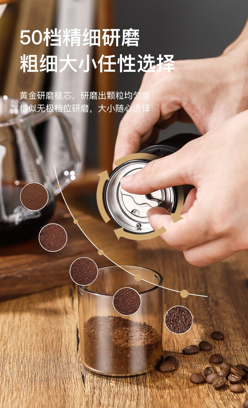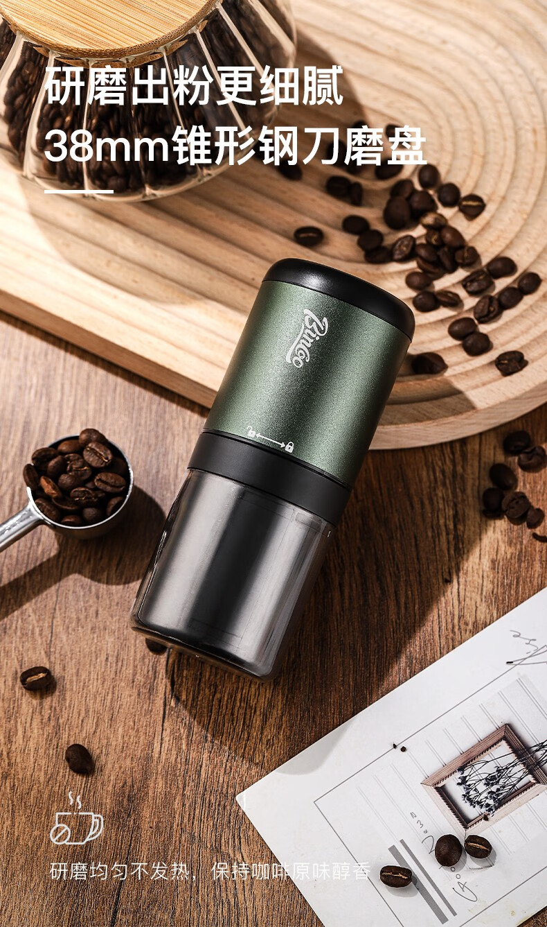Bincoo Steel Core Electric Bean Grinder Coffee Bean Grinder Portable Automatic Grinder Hand Grinder Coffee Bean Grinder Green CNC420 Steel Core-50 Adjustment