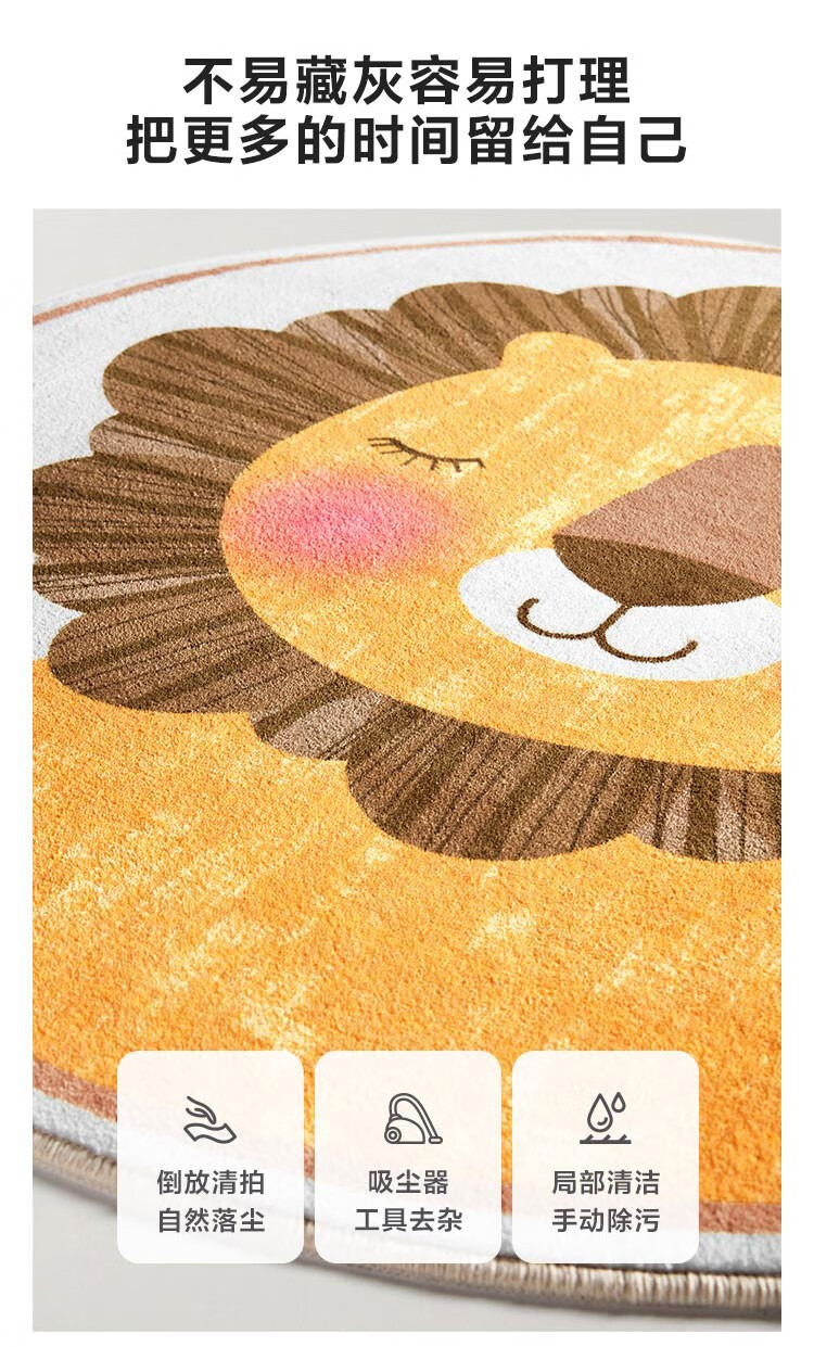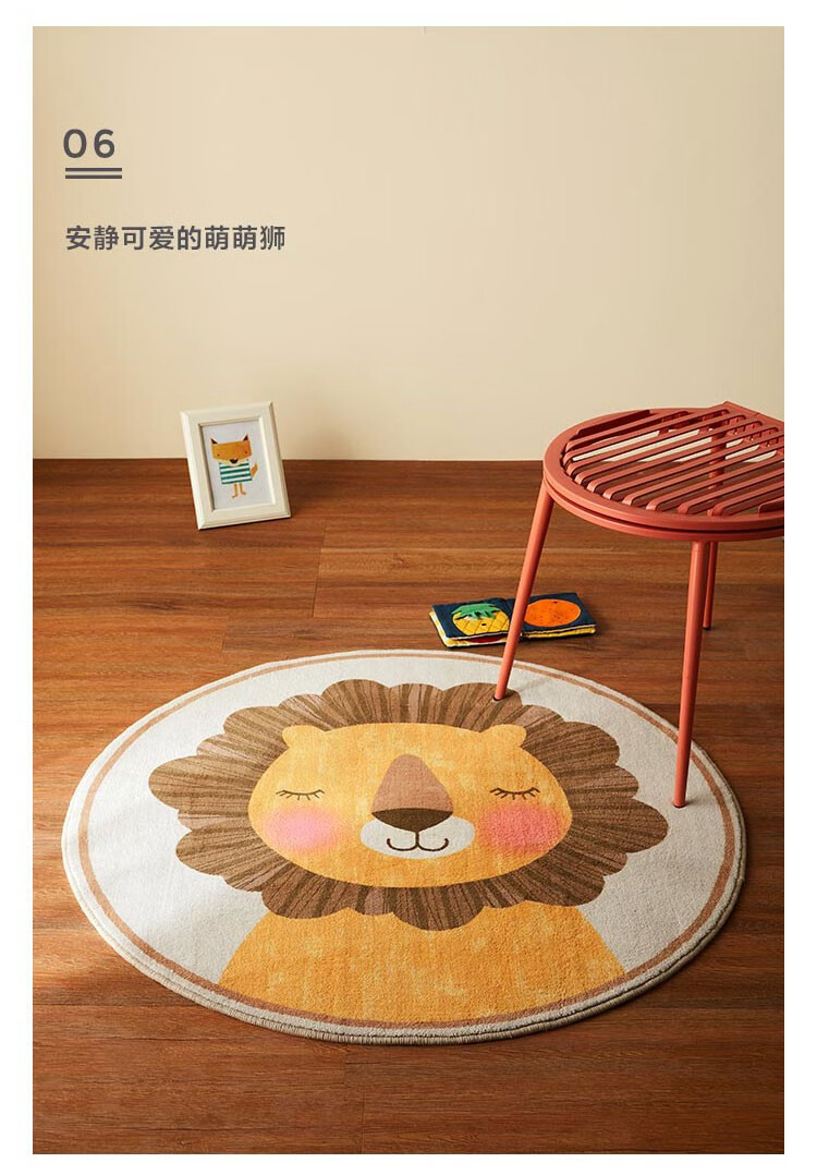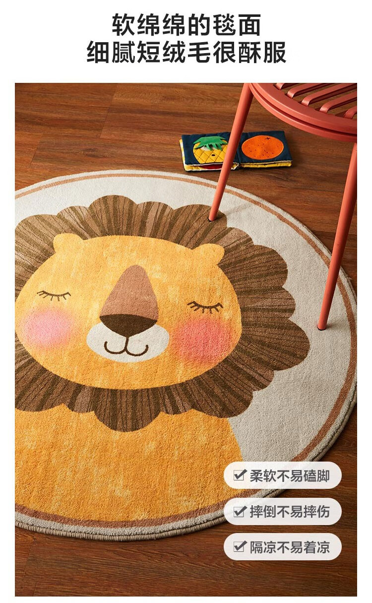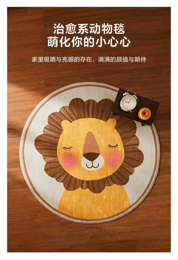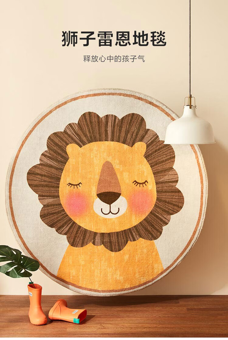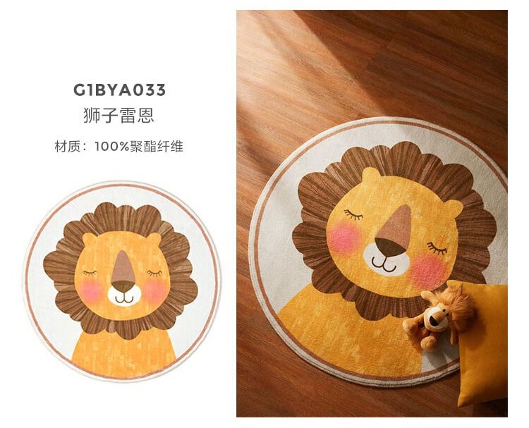 Lin's Life Lin's Home Wood Industry Children's Carpet Round Bedroom Girl Boy Home Animal Cartoon Cute Small Blanket Lion Rayne G1BYA033 Carpet 800mm*800mm