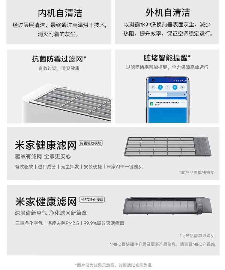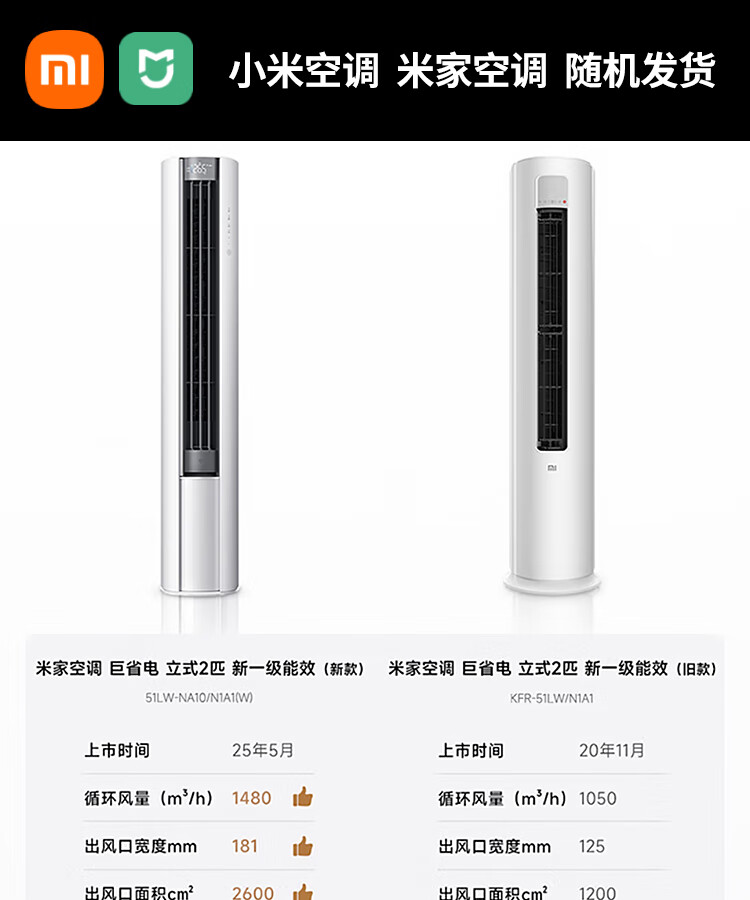 Xiaomi local warehouse quick delivery Mijia Internet air conditioner value air conditioner combination package new energy efficiency intelligent frequency conversion self-cleaning cabinet air conditioner + wall-mounted air conditioner One room and one living room 2 cabinets with first-level energy efficiency + 1 hanging machine