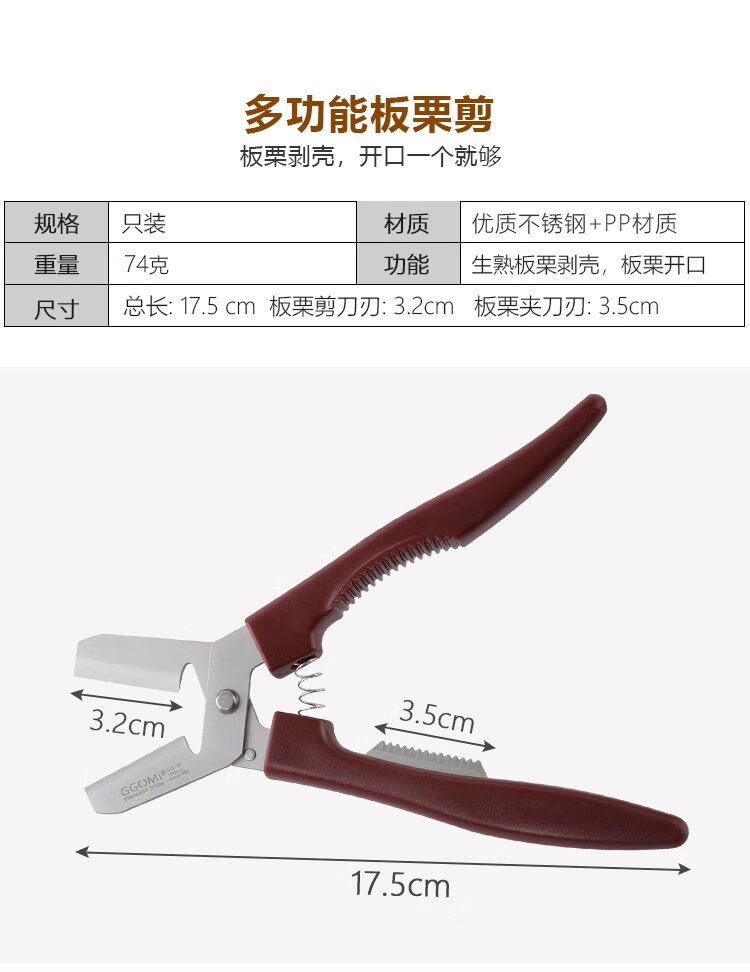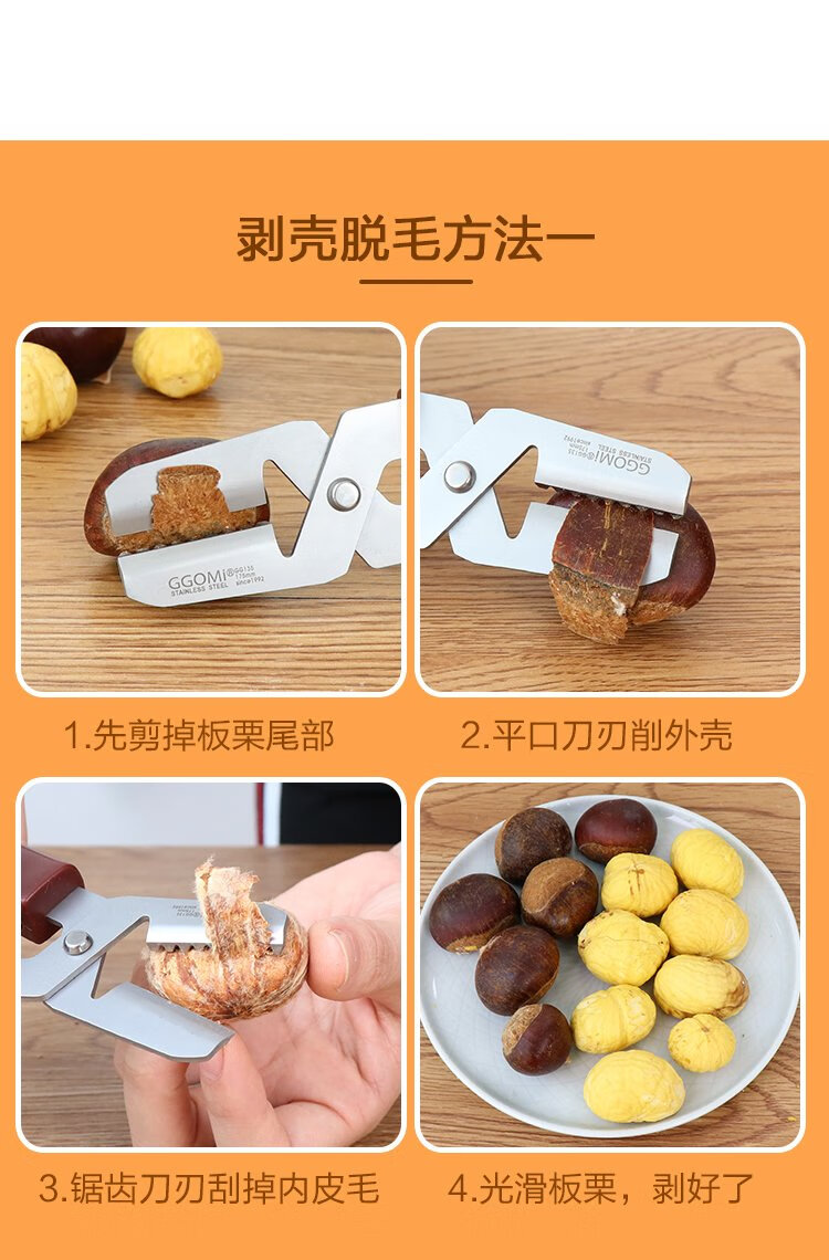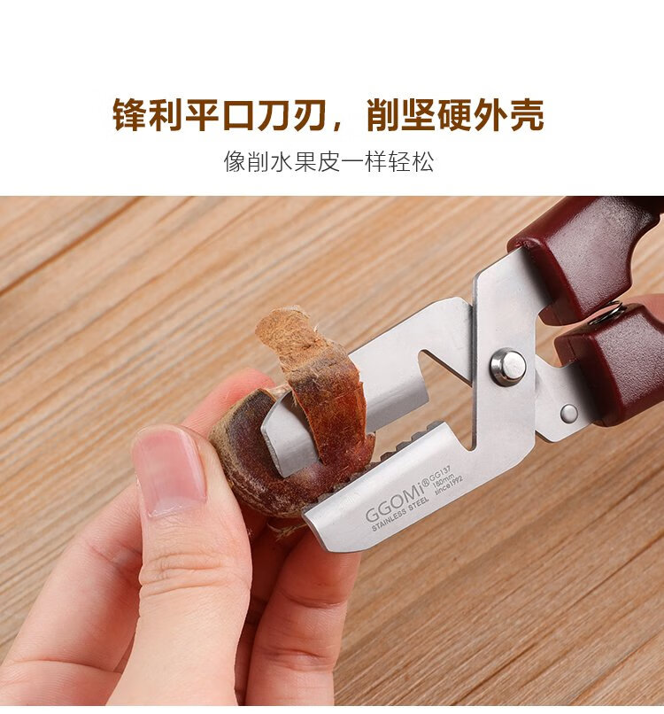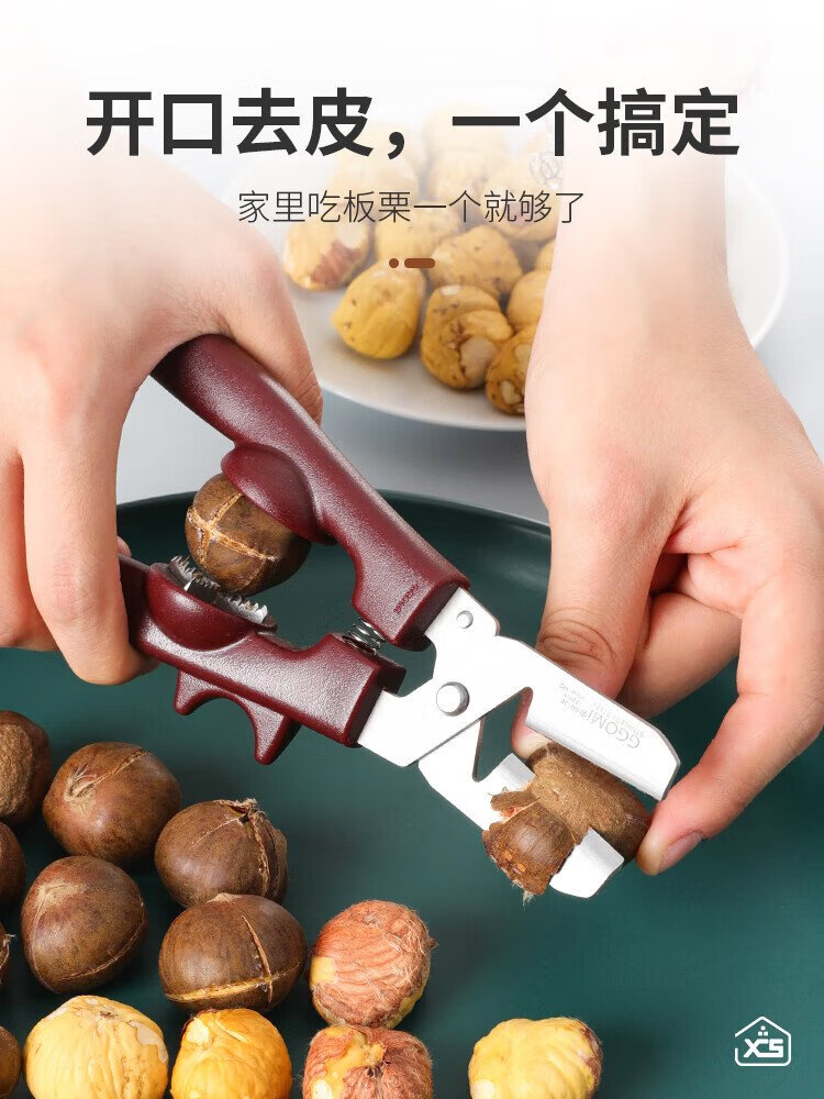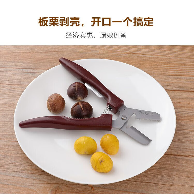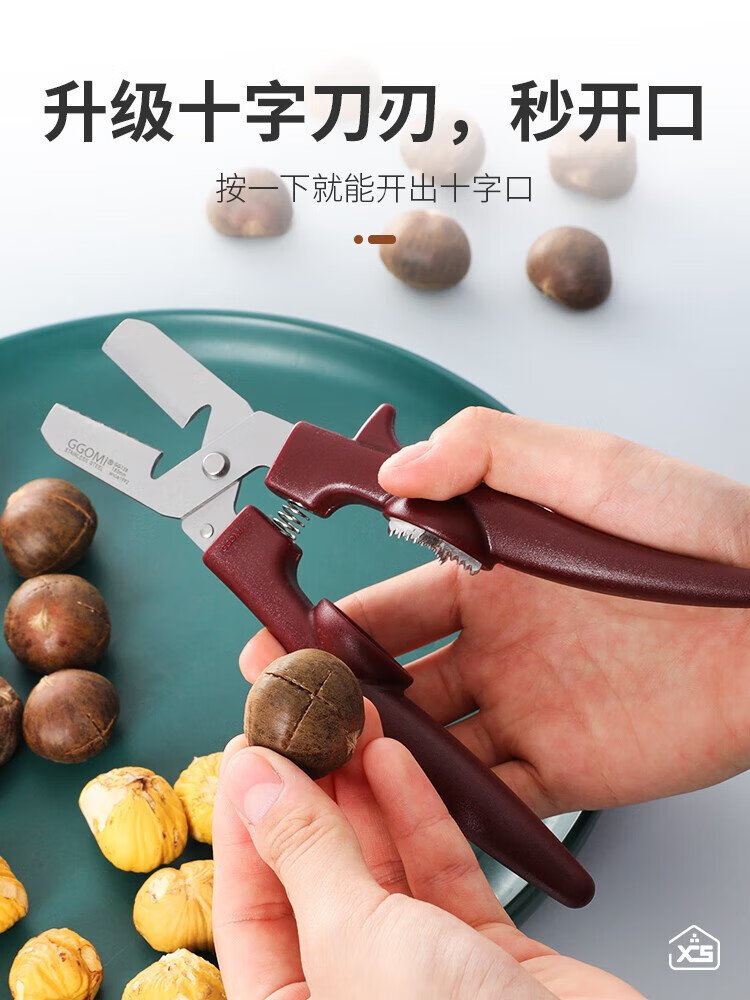 Necooks New Chestnut Opener Peeling Chestnut Automatic Rebound Chestnut Clamp Chestnut Opener Scissor Peeling Tool Three-in-one Upgraded Shelling + Shaving + Cross Cutting