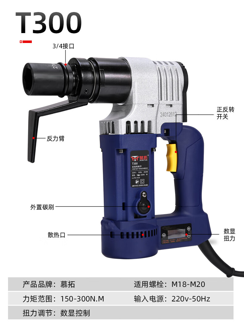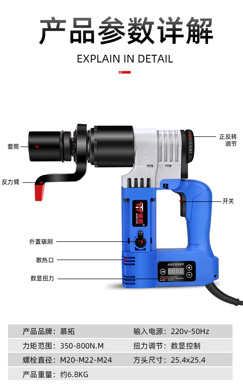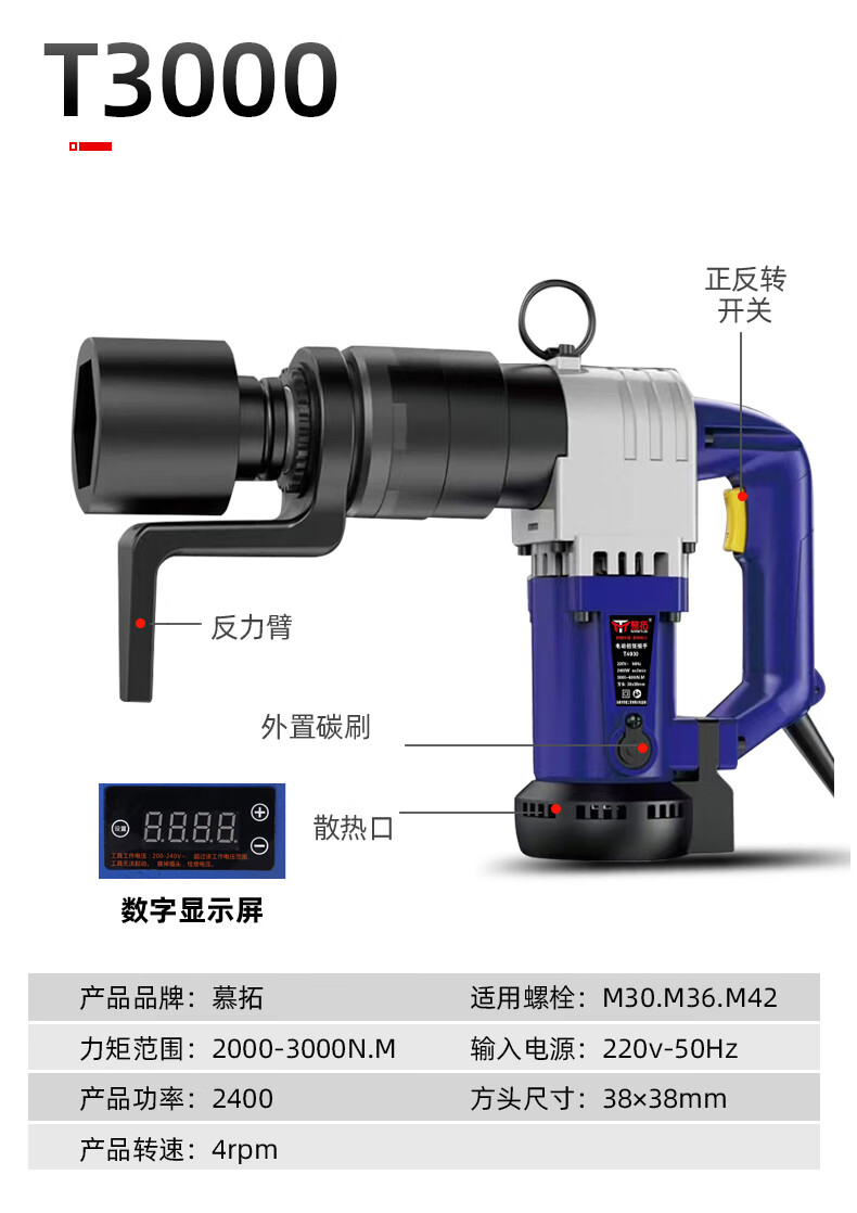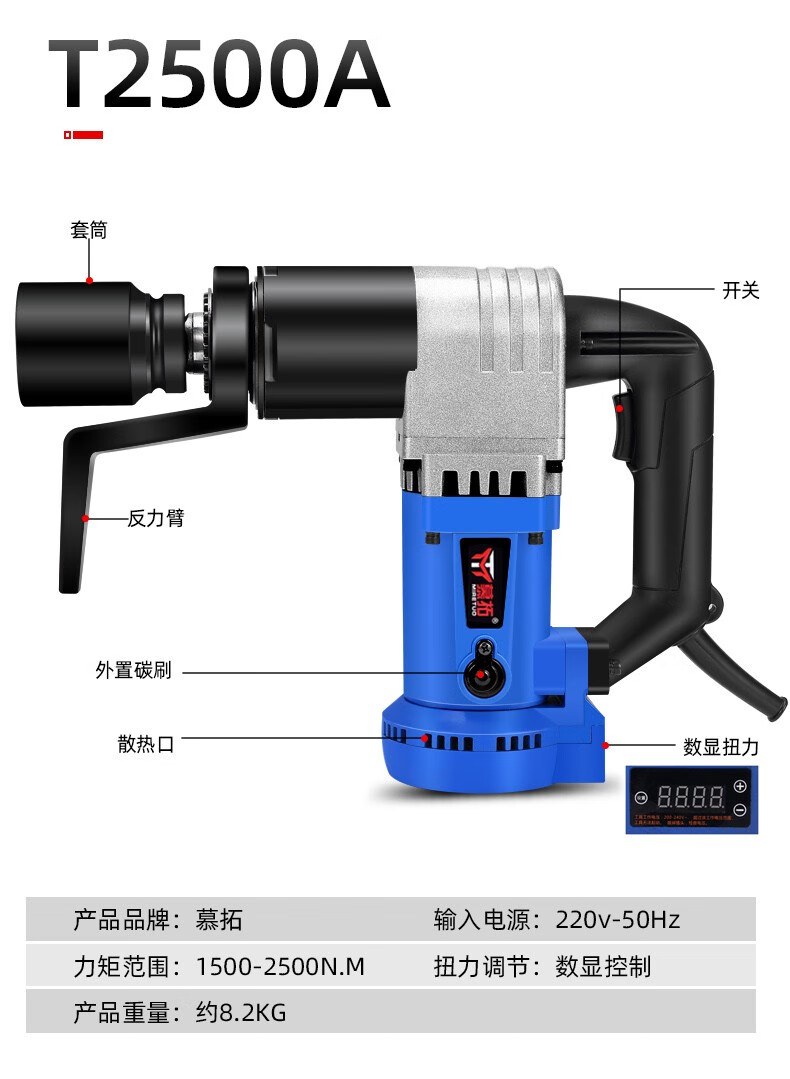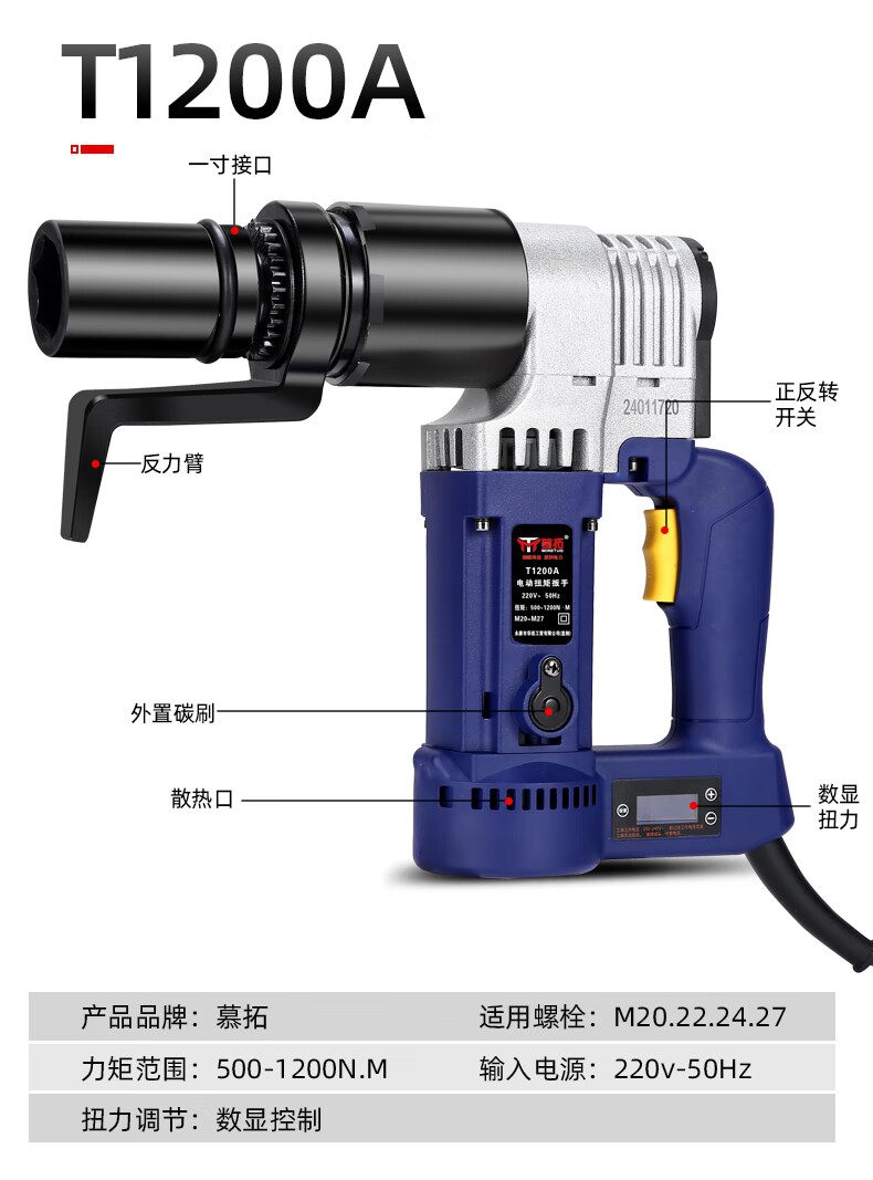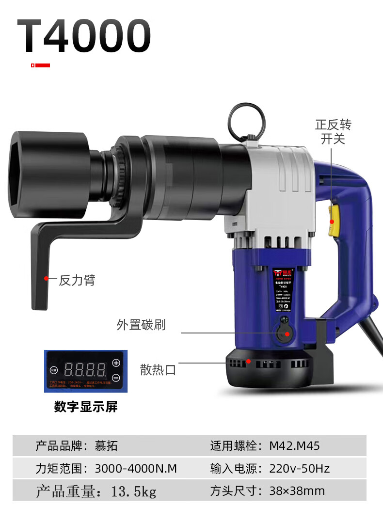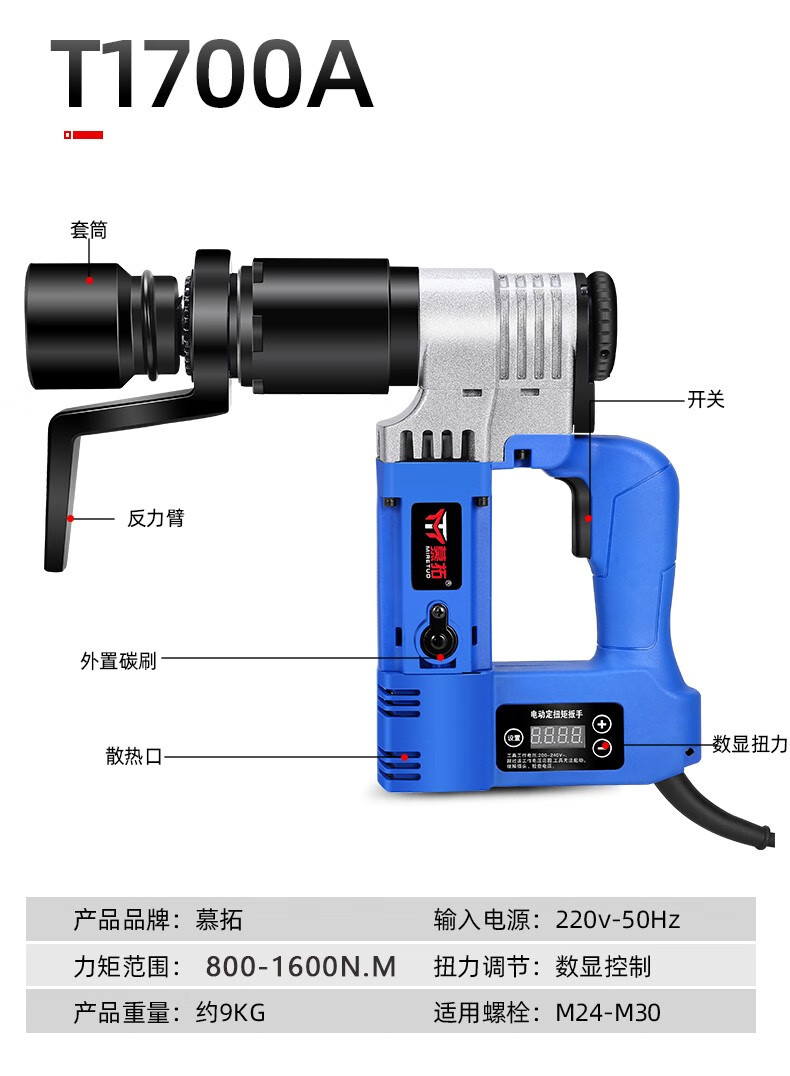 Mutuo German electric torque wrench digital display fixed torque 4000 Nm torque adjustable steel structure high-strength bridge bolt T1700A 800-1600N.M with digital display fixed torque