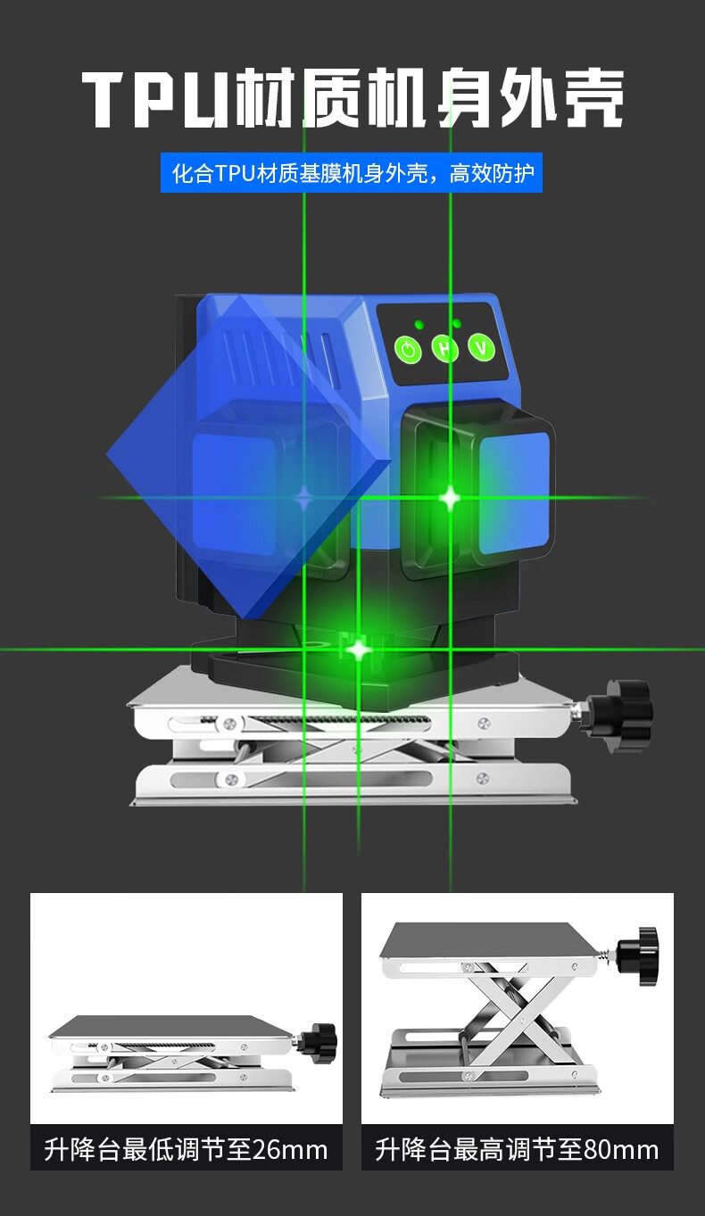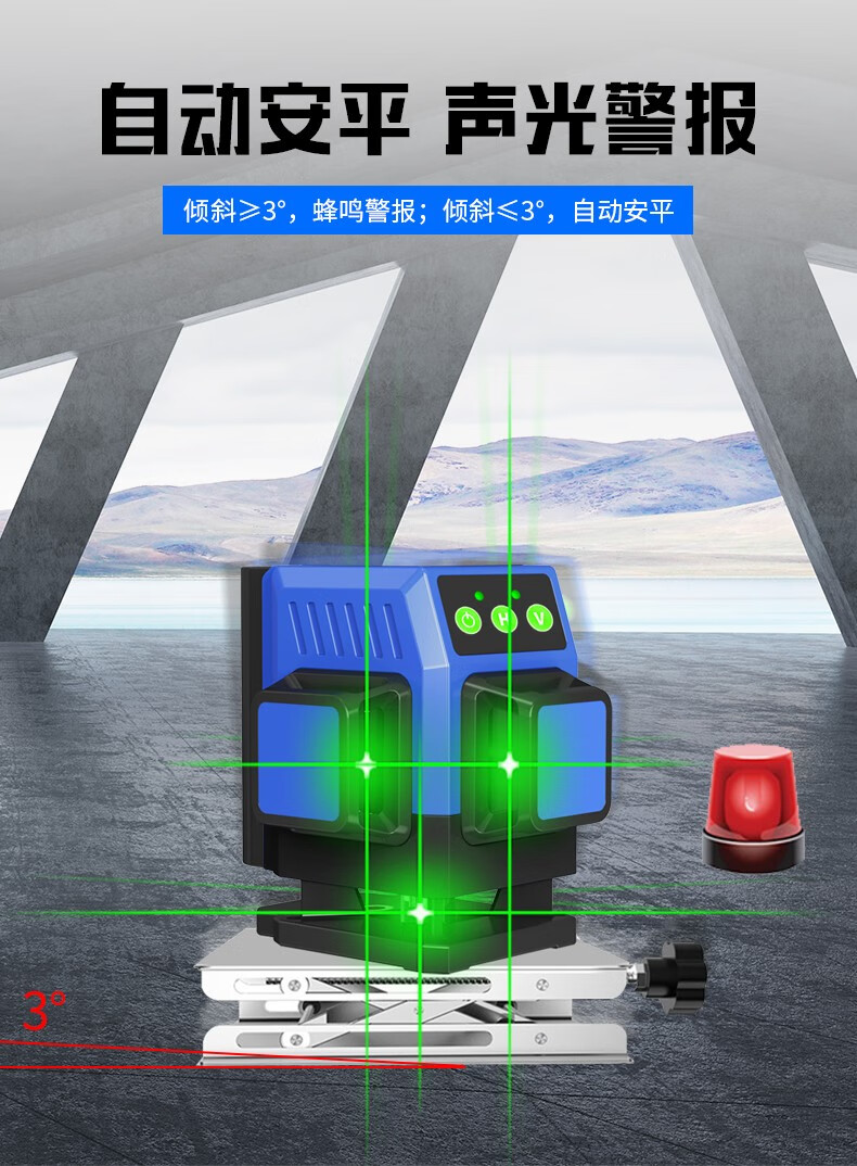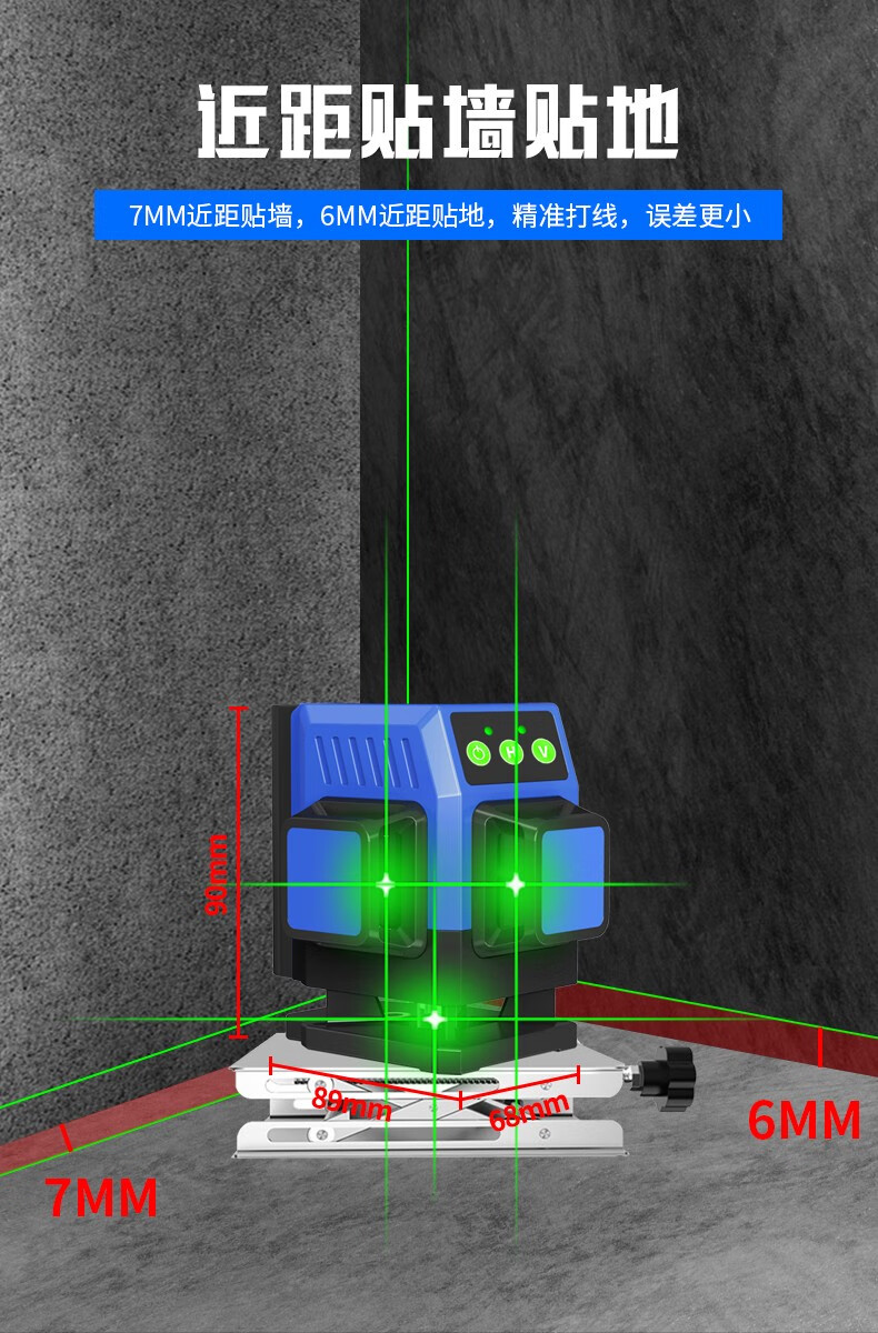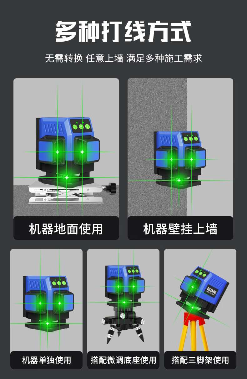 Changshengde wall-mounted and floor-mounted integrated infrared level green light high-precision mini laser leveling meter dual-purpose for paving super bright green light 8-wire simple configuration + dual batteries