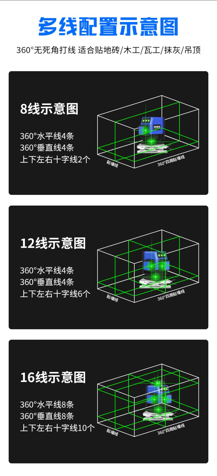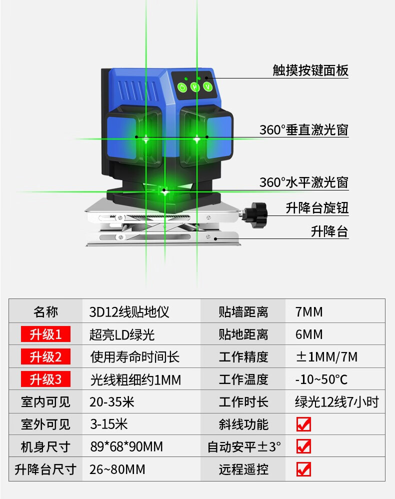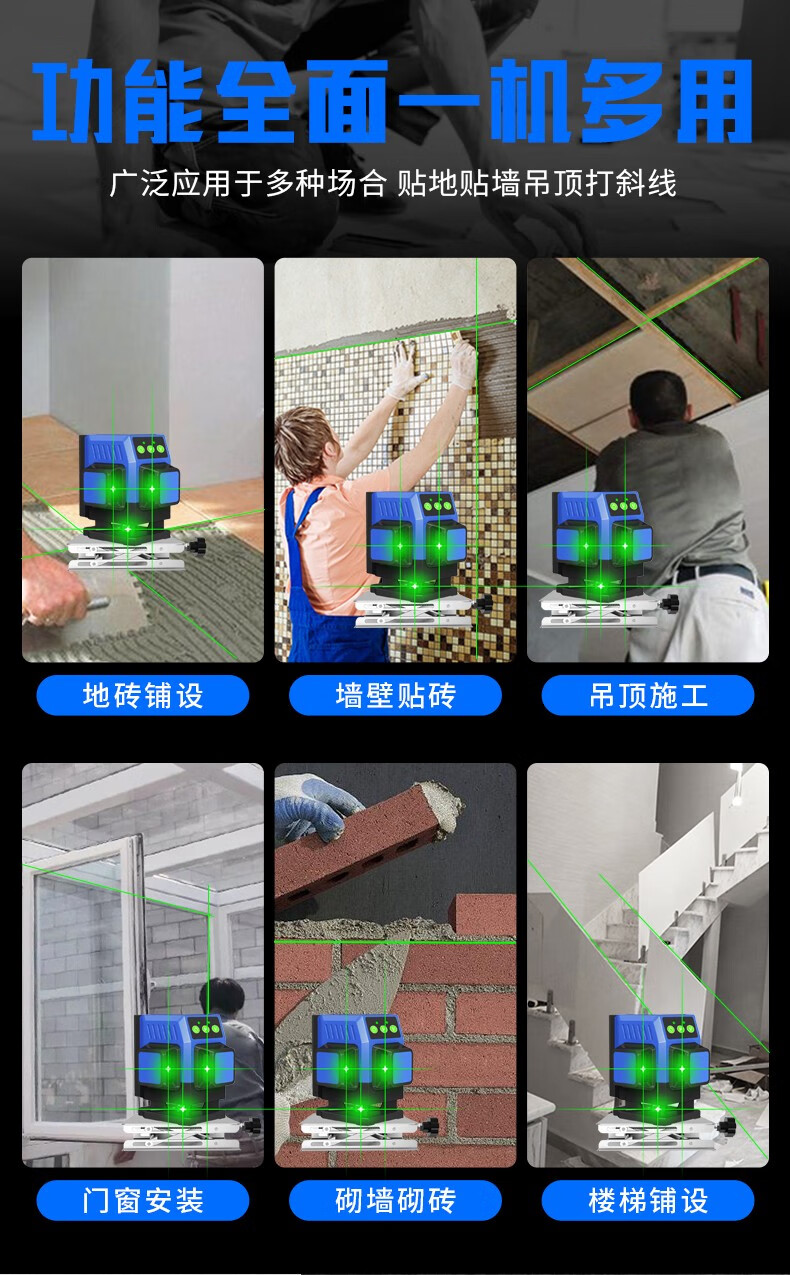 Changshengde wall-mounted and floor-mounted integrated infrared level green light high-precision mini laser leveling meter dual-purpose for paving super bright green light 8-wire simple configuration + dual batteries