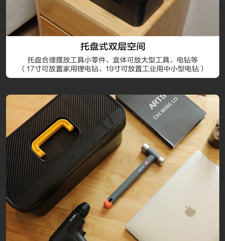 Deli Tool Box Empty Box Large Multi-Function Repair Portable Electrician Home Hardware Storage Box Student Art Box 12.5-inch Tool Box DL432612